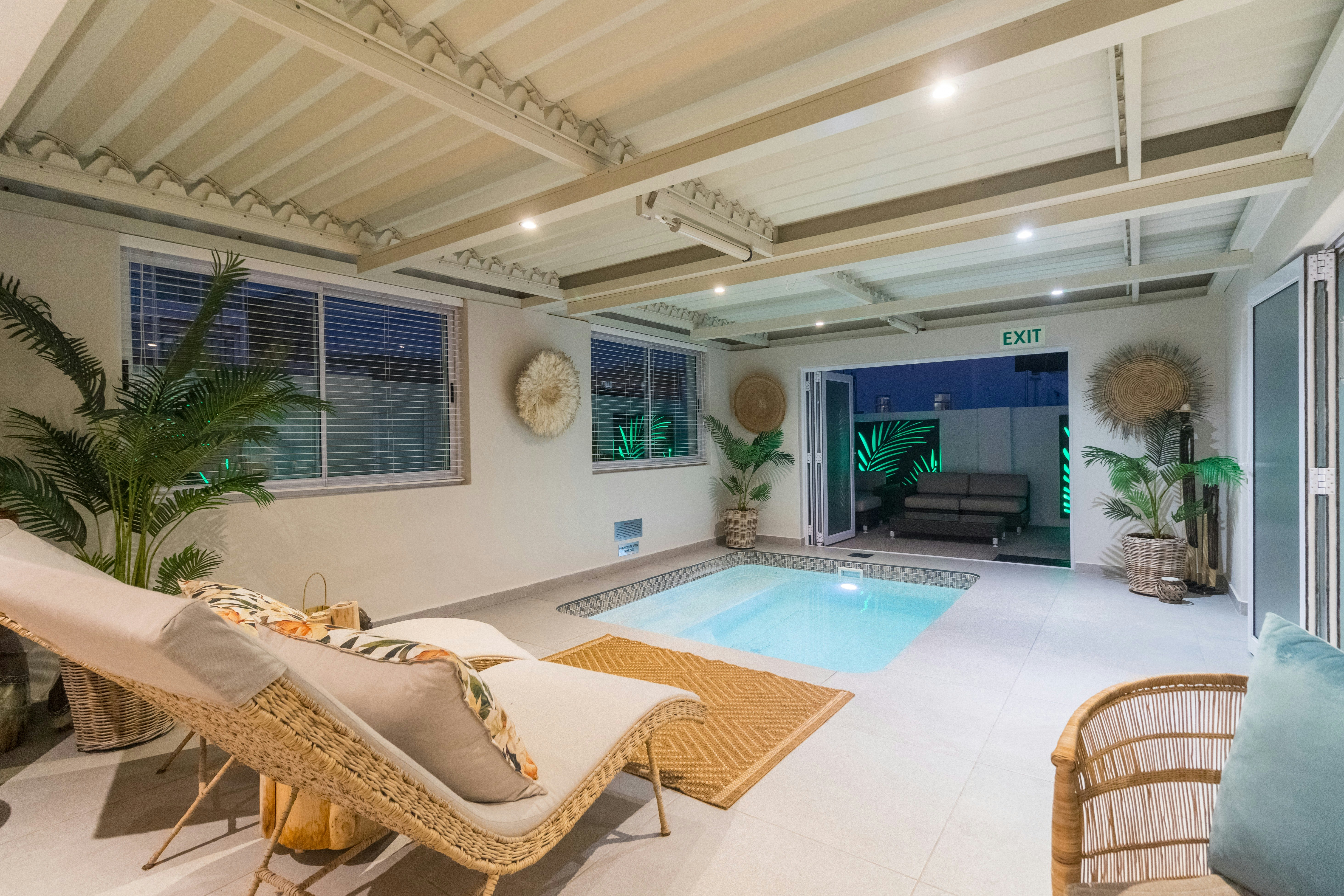 Gaste het eksklusiewe gebruik van alle geriewe. Daar is 'n elegante ontspanningsarea met 'n Jacuzzi, verhitte swembad, binnebraai, kaggel en TV. Die gimnasium is goed toegerus vir gaste wat wil oefen. Daar is 'n aparte waskamer wat toegerus is met 'n wasmasjien, tuimeldroër en strykplank.