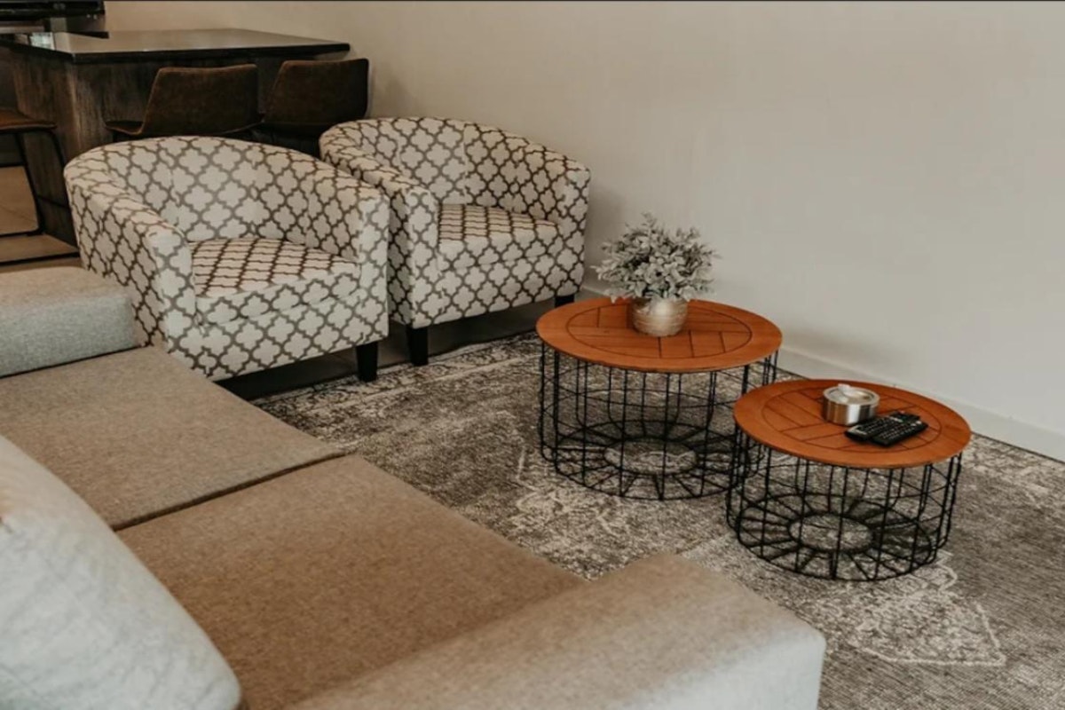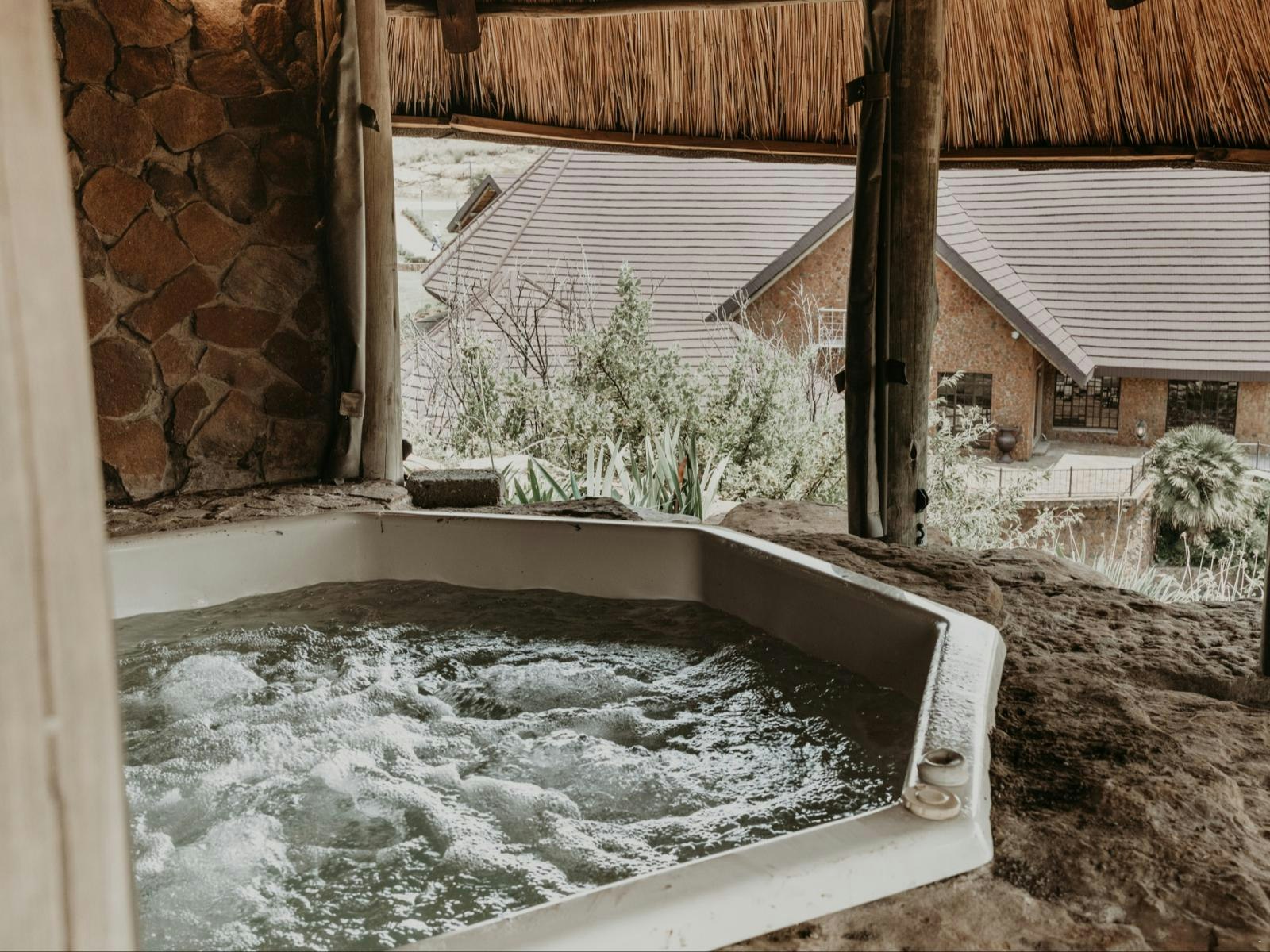 The estate offers communal spaces designed for relaxation and enjoyment, including a bar, outdoor seating, a fire pit, and a jacuzzi. Guests can also indulge in game-viewing for added entertainment. Mambakloof Country Estate accommodates special events, with conference and wedding facilities available for arrangement directly with the host.