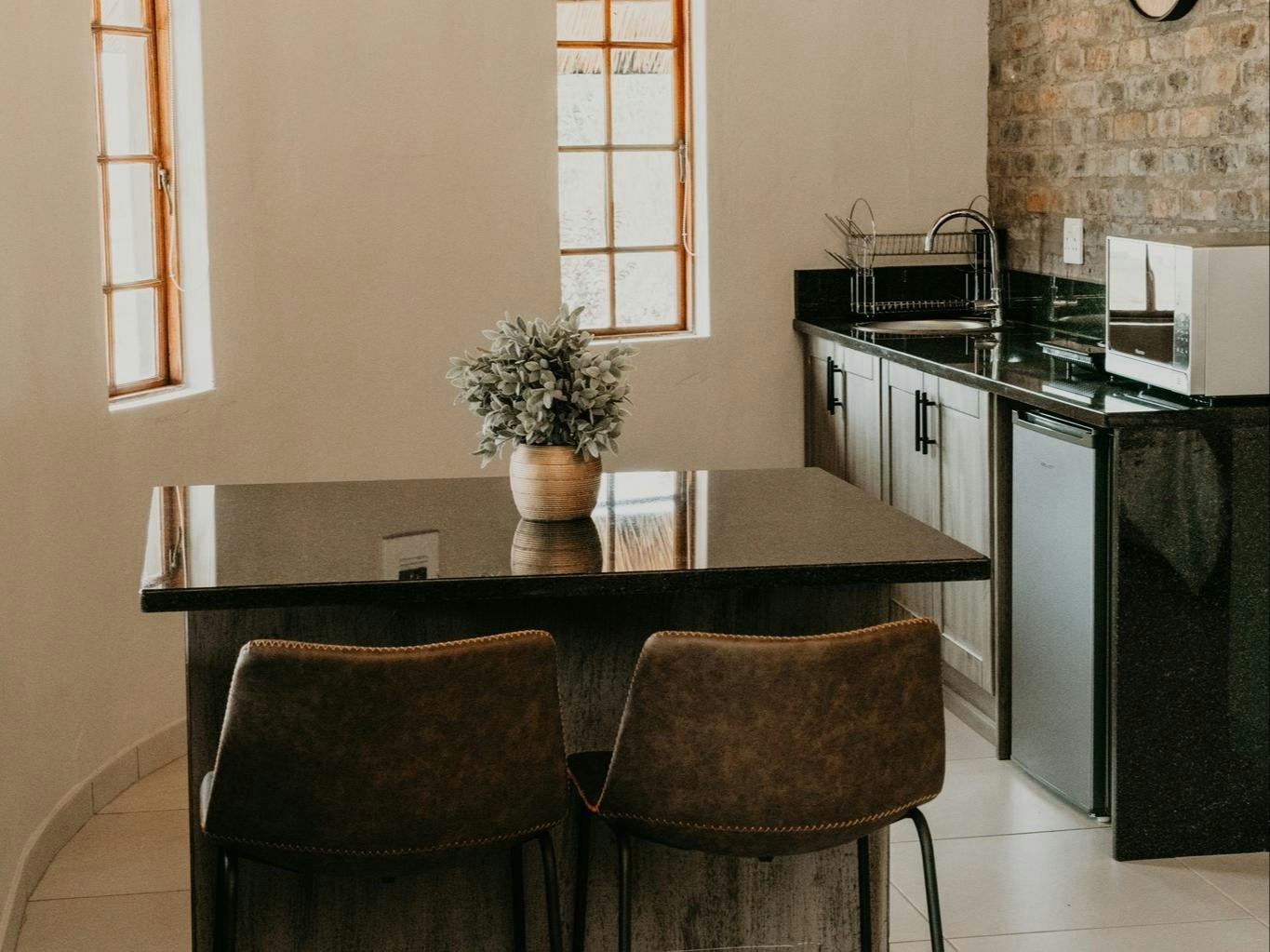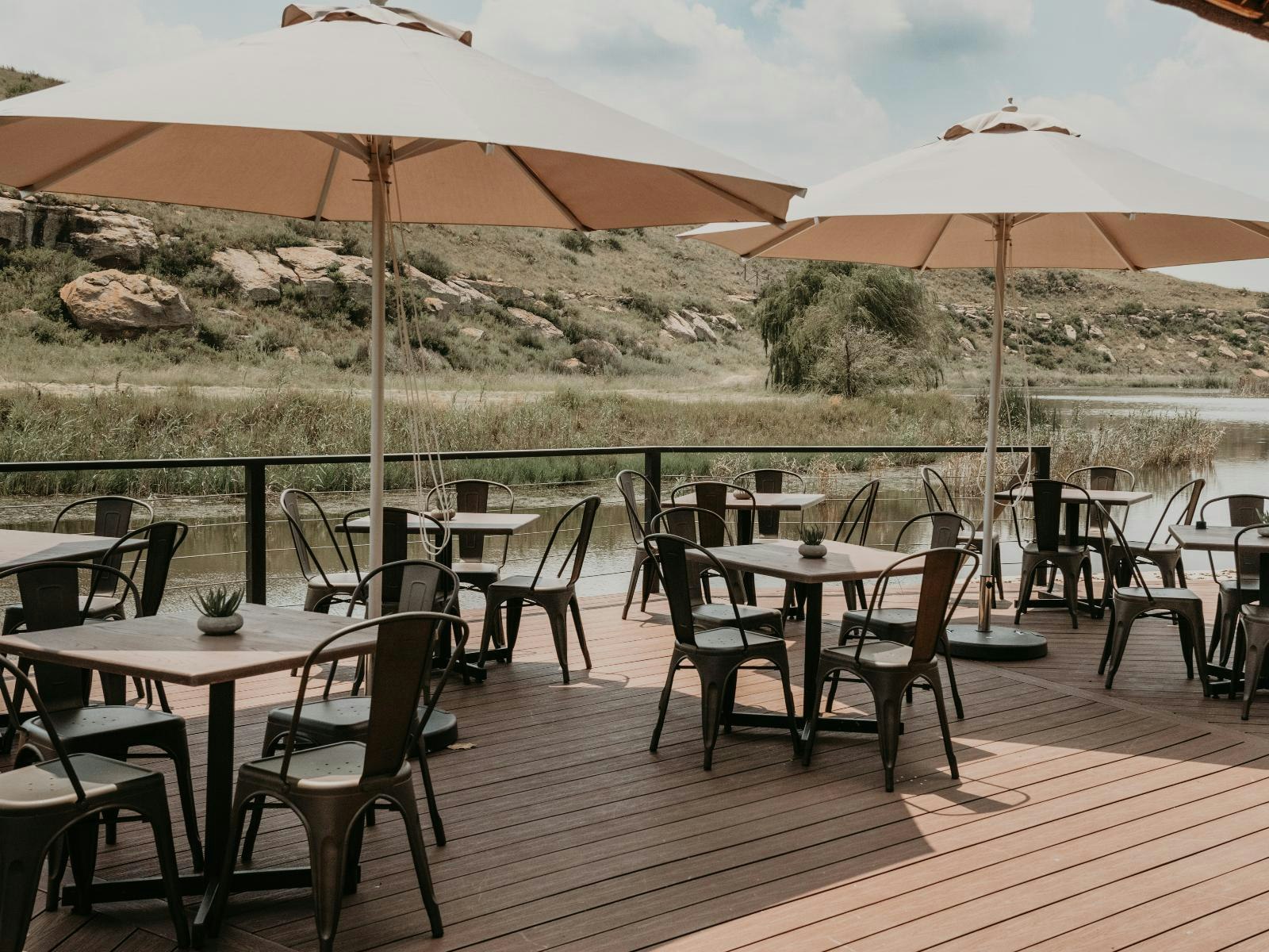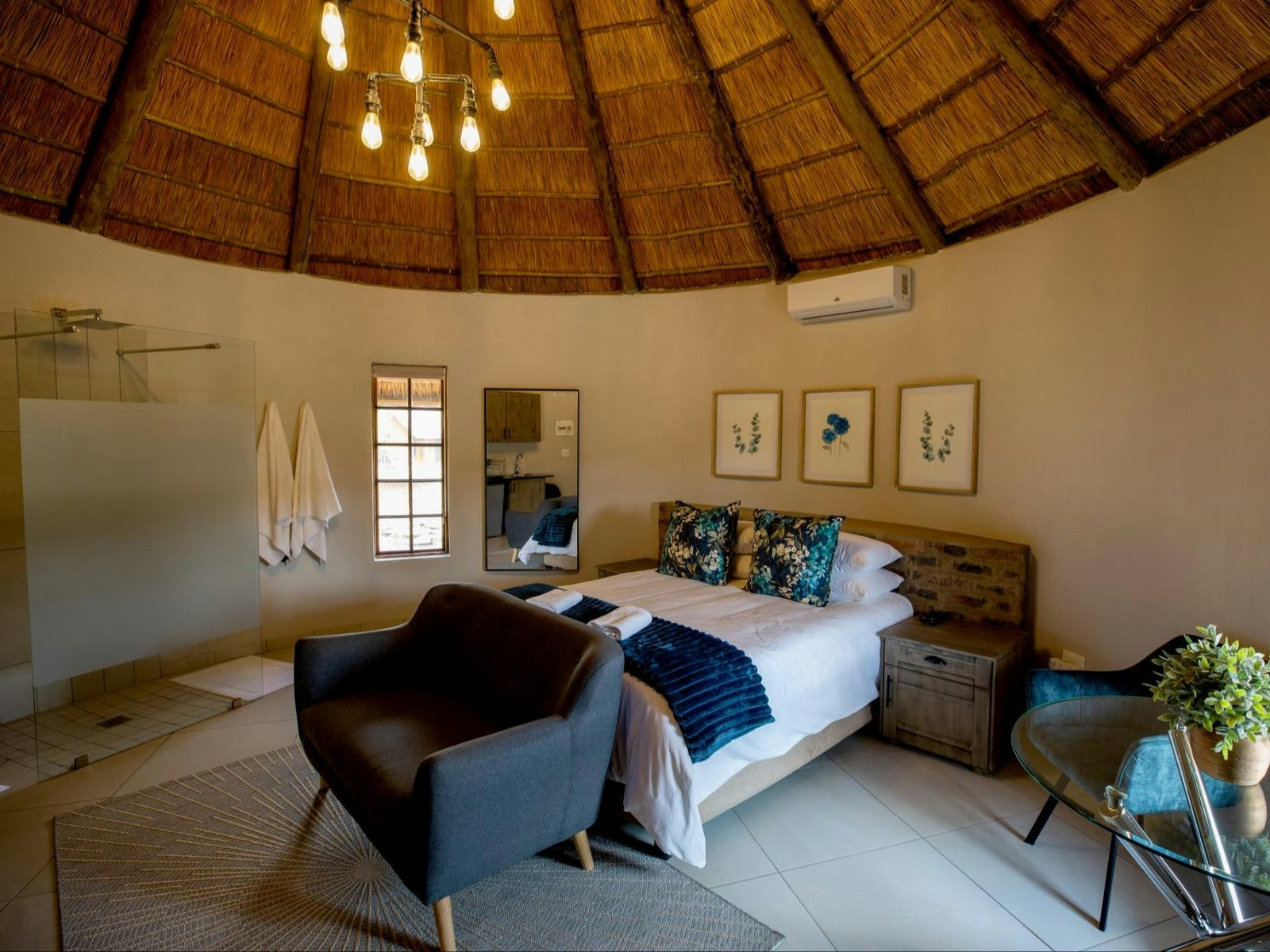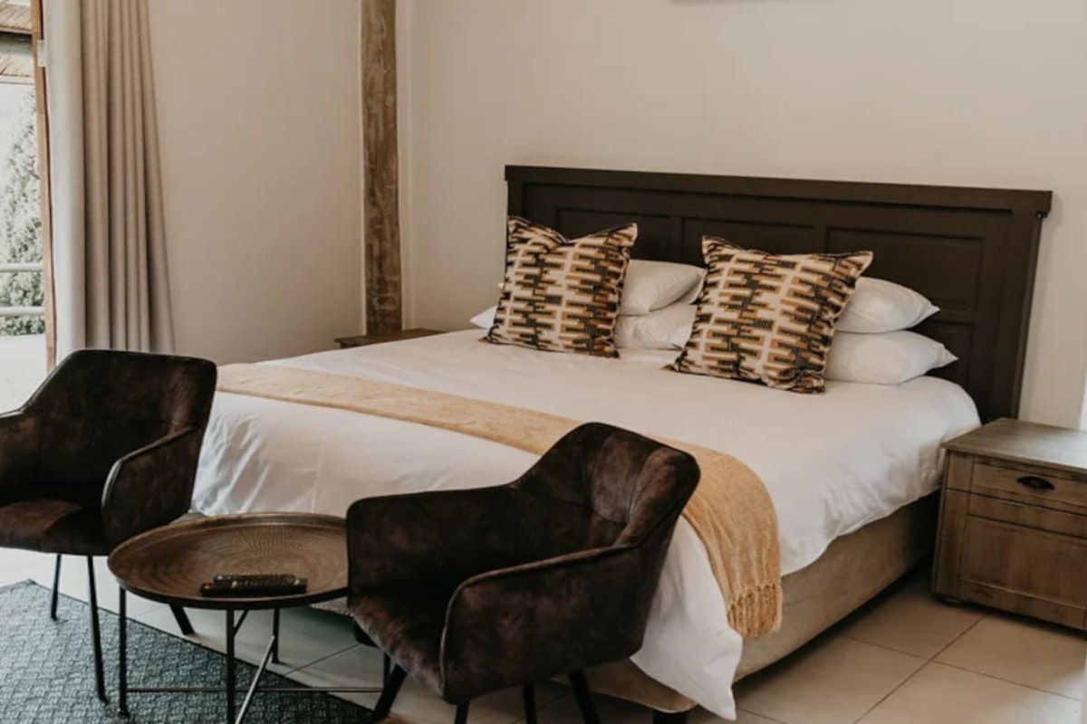 The estate boasts 9 self-catering chalets, each accommodating between 2 to 4 guests. These chalets feature a sleeping area, a living space, and a well-equipped kitchenette. Furnished with either a king- or queen-sized bed, each chalet offers the convenience of en-suite bathrooms. The kitchenettes include a bar fridge, induction plate, microwave, and coffee- and tea-making facilities. Guests can enjoy modern amenities such as Wi-Fi, a TV with DStv channels, air conditioning, braai facilities, and beautiful views of the lake.