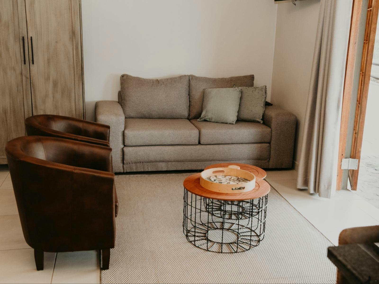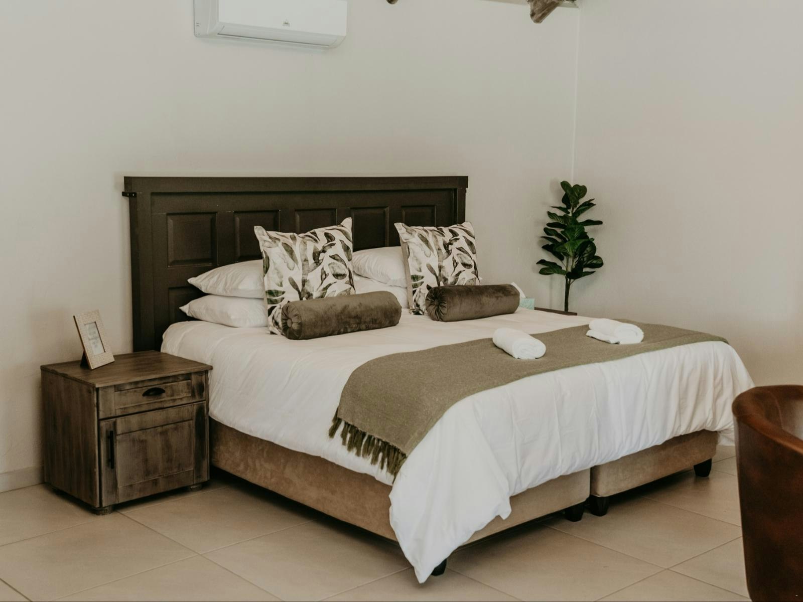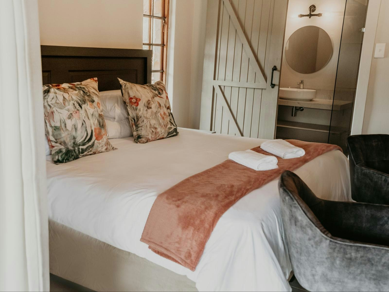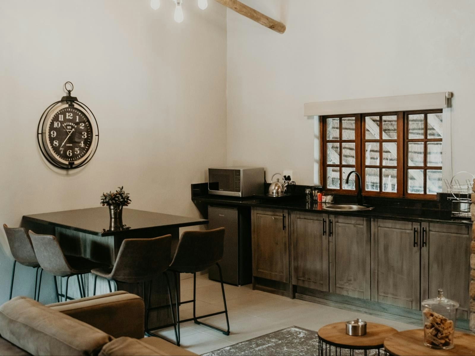 The estate boasts 9 self-catering chalets, each accommodating between 2 to 4 guests. These chalets feature a sleeping area, a living space, and a well-equipped kitchenette. Furnished with either a king- or queen-sized bed, each chalet offers the convenience of en-suite bathrooms. The kitchenettes include a bar fridge, induction plate, microwave, and coffee- and tea-making facilities. Guests can enjoy modern amenities such as Wi-Fi, a TV with DStv channels, air conditioning, braai facilities, and beautiful views of the lake.