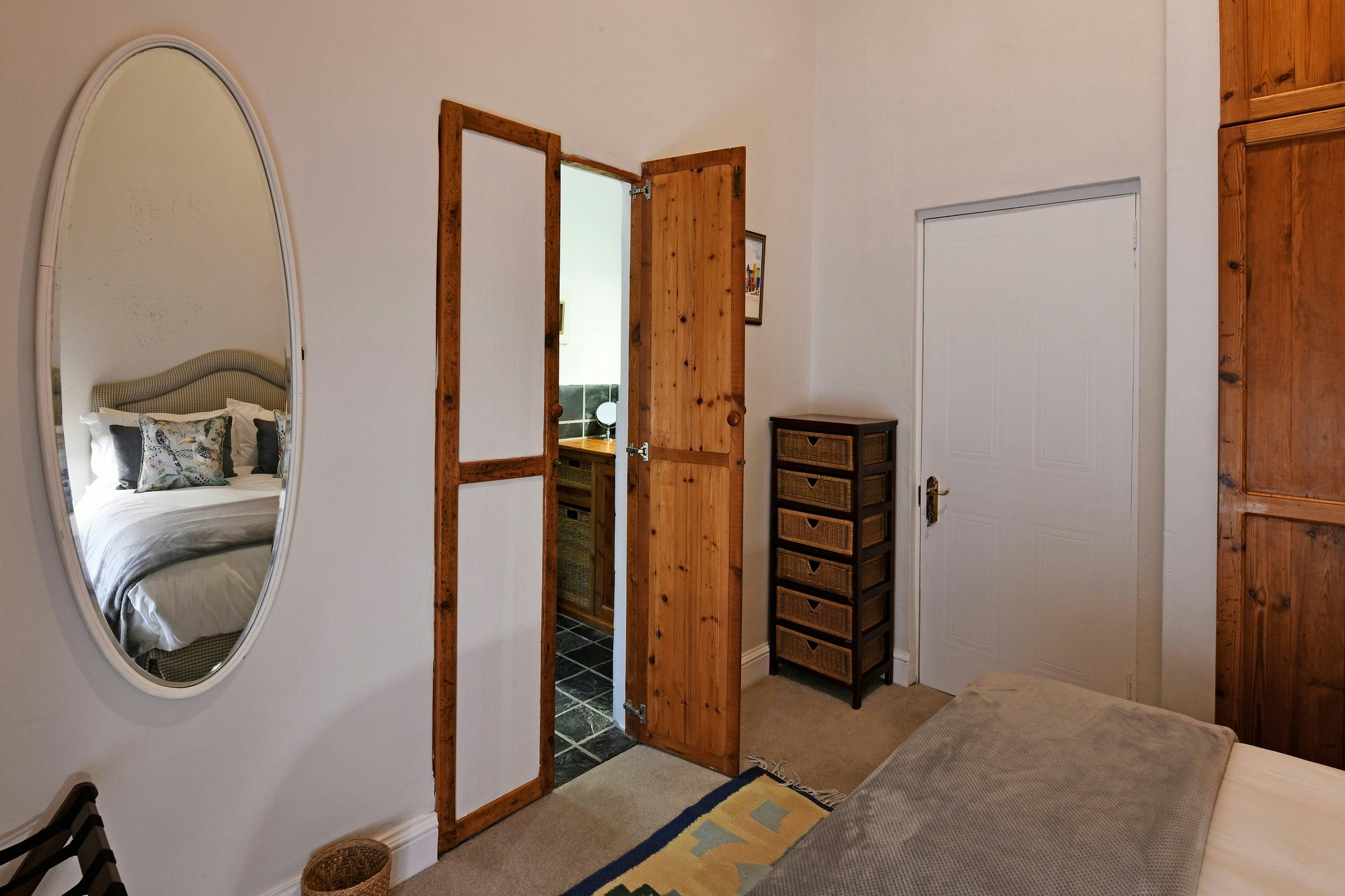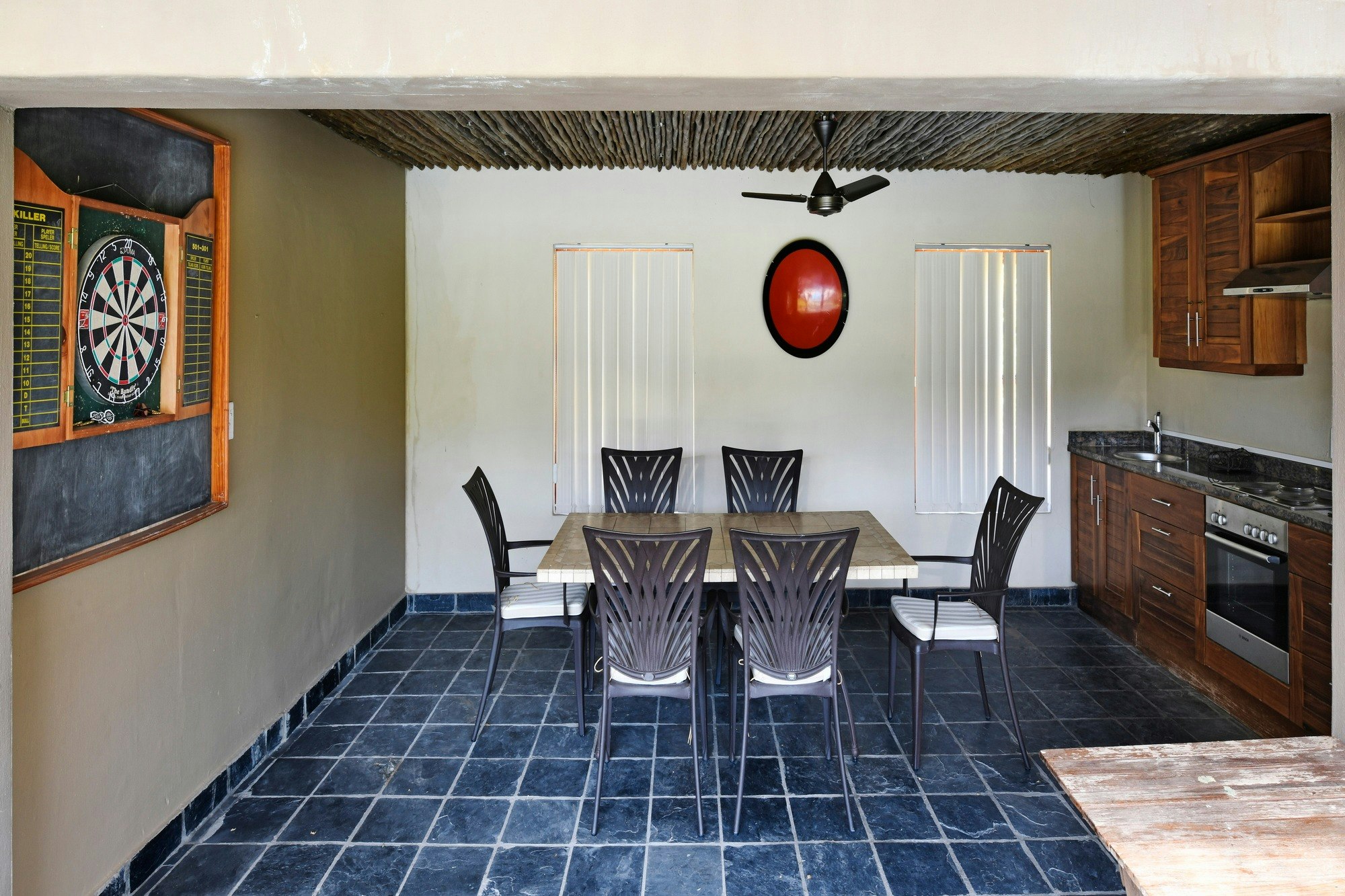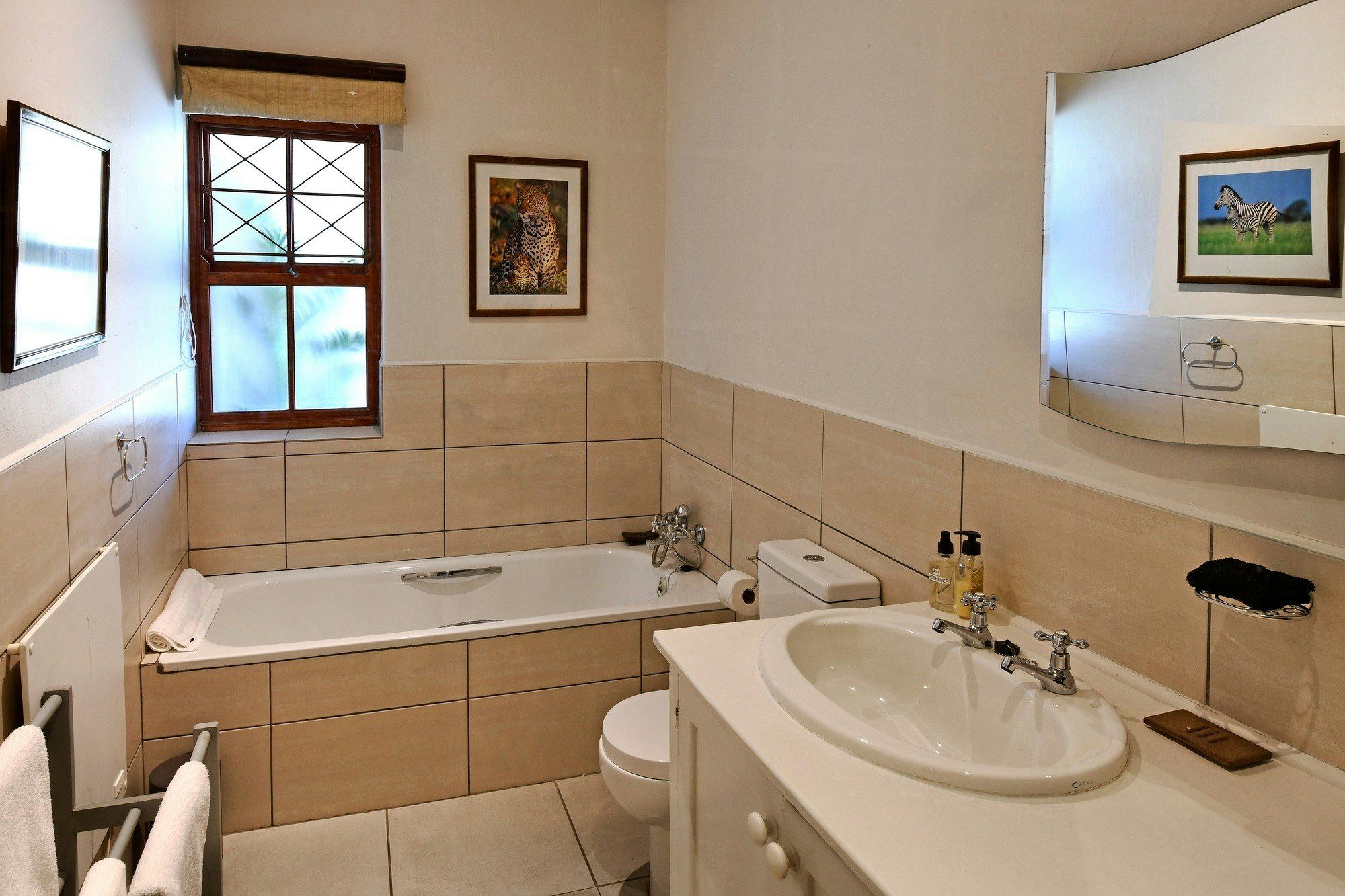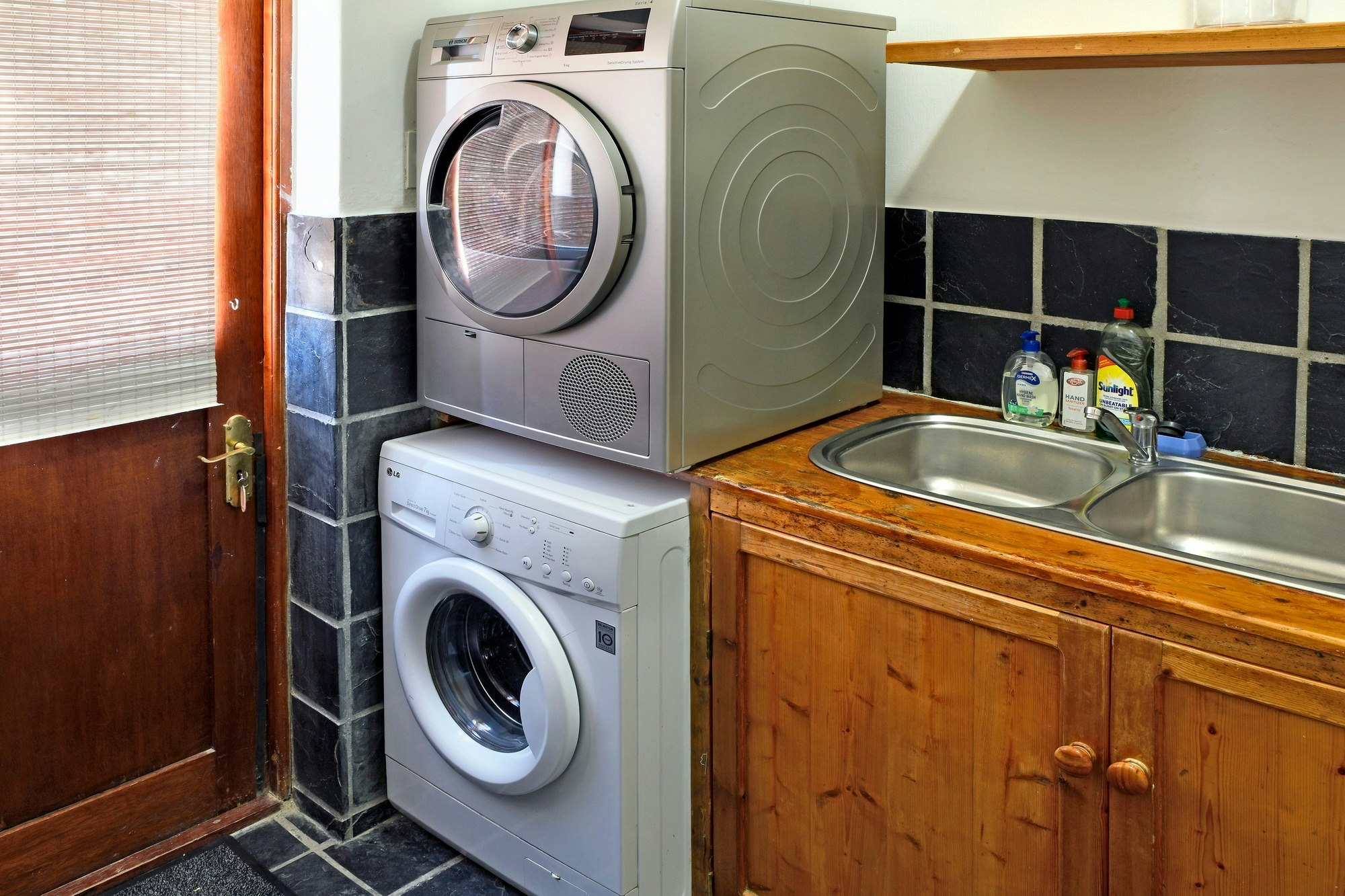 The home features a fully equipped kitchen and scullery that includes an electric stove, gas stove, oven, air fryer, microwave, kettle, toaster, cutlery, crockery, fridge-freezer, bar fridge, dishwasher, washing machine, and tumble dryer. The lounge and dining area offer comfortable seating for guests to dine and relax and also boasts a fireplace. For entertainment, a smart TV with Netflix and access to free Wi-Fi are available.