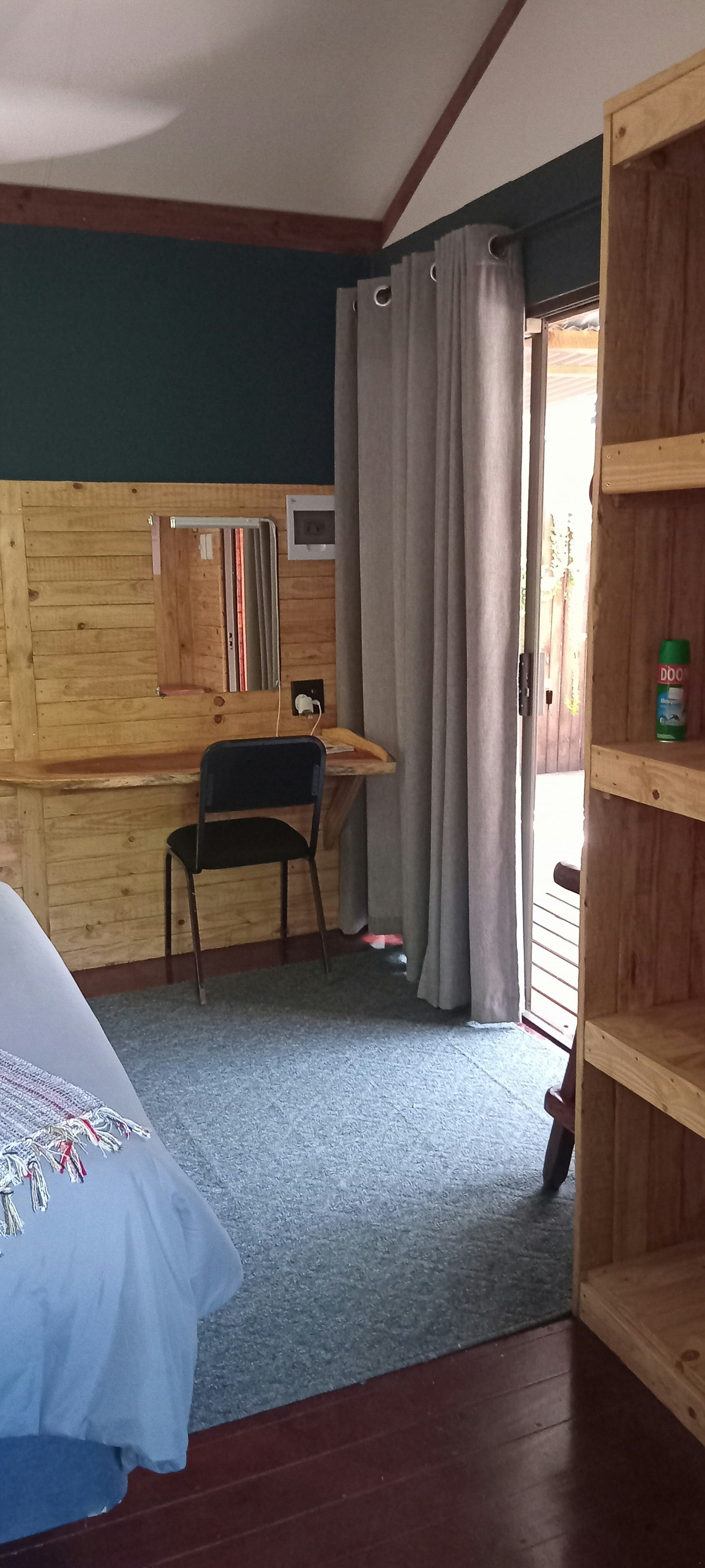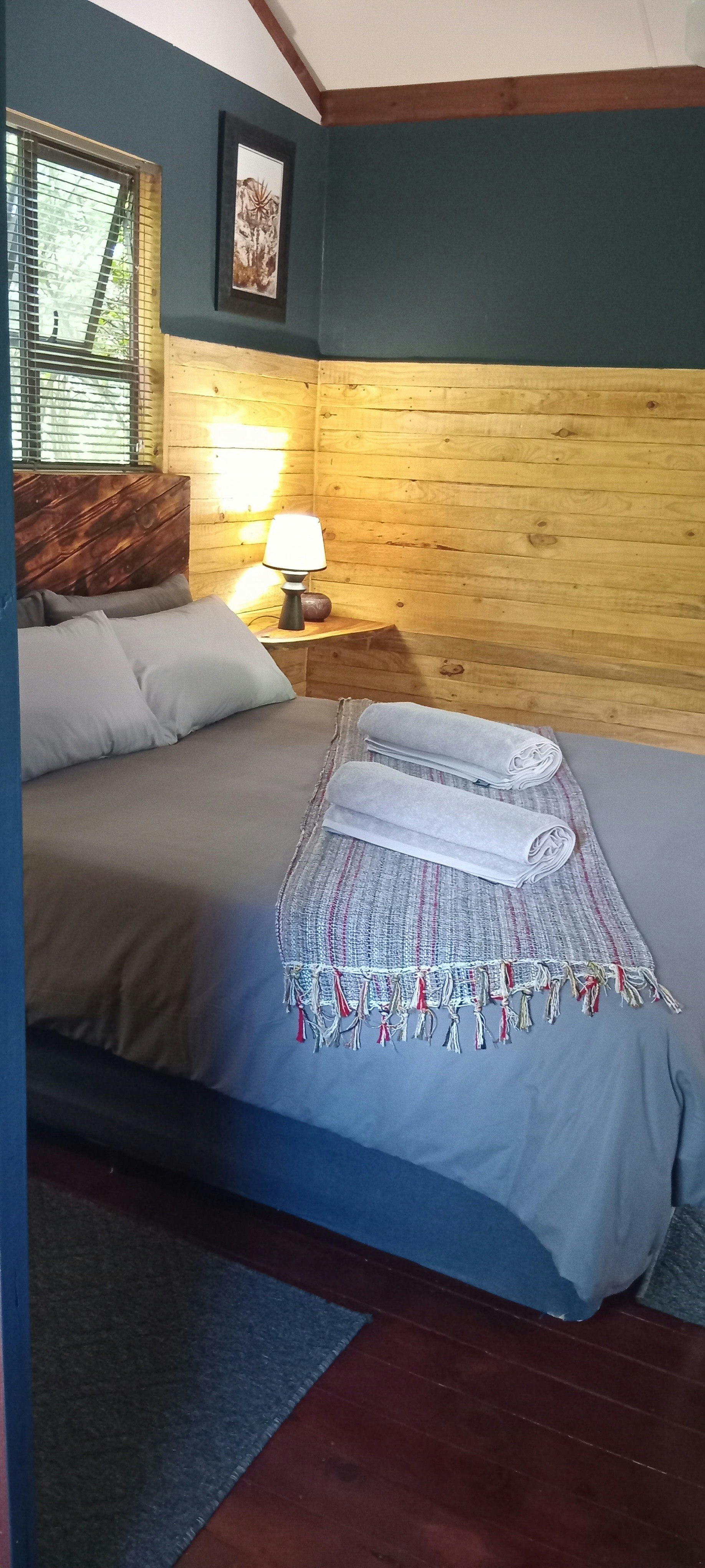 This cozy cabin comfortably accommodates 2 guests and includes a bedroom and a bathroom. The bedroom features a comfortable queen-size bed and has an en-suite bathroom fitted with a shower, toilet, and washbasin.