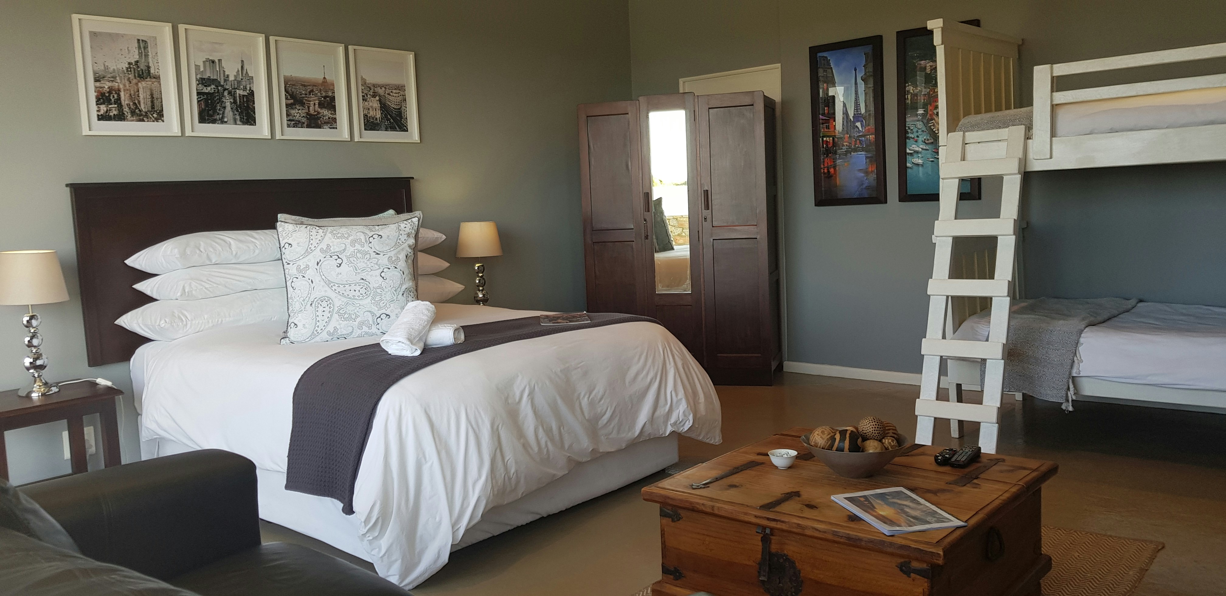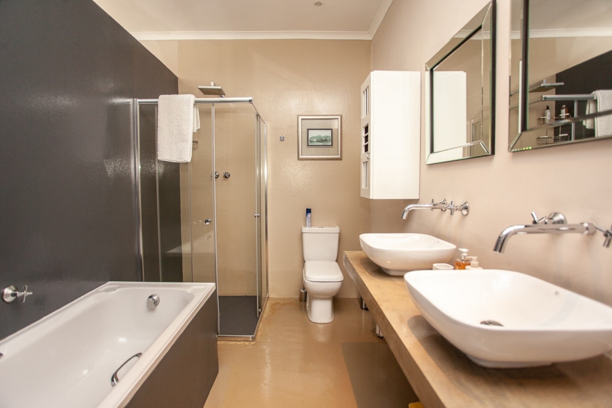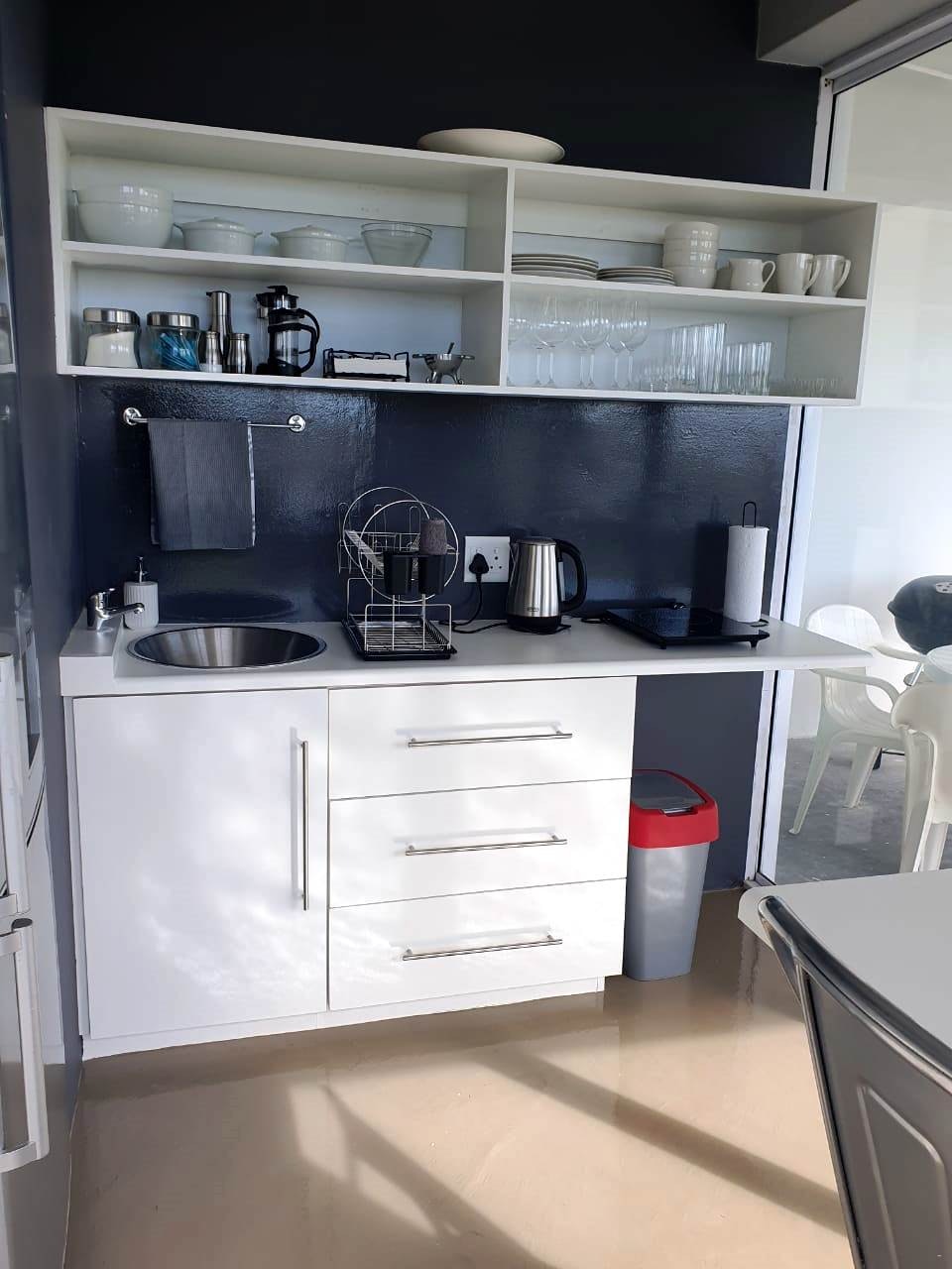 Ocean Whispers is a modern home that accommodates 6 guests. It comprises 2 bedrooms and 2 bathrooms. Each bedroom is furnished with a queen-size and single bed. The bathrooms are fully fitted with a bath and shower. The kitchen is well-equipped for self-catering and features a microwave, toaster, kettle, coffee plunger, fridge, dishwasher, washing machine, tumble dryer, stove, oven, cutlery and crockery. The kitchen, dining and living area with the sofa bed are open-plan.