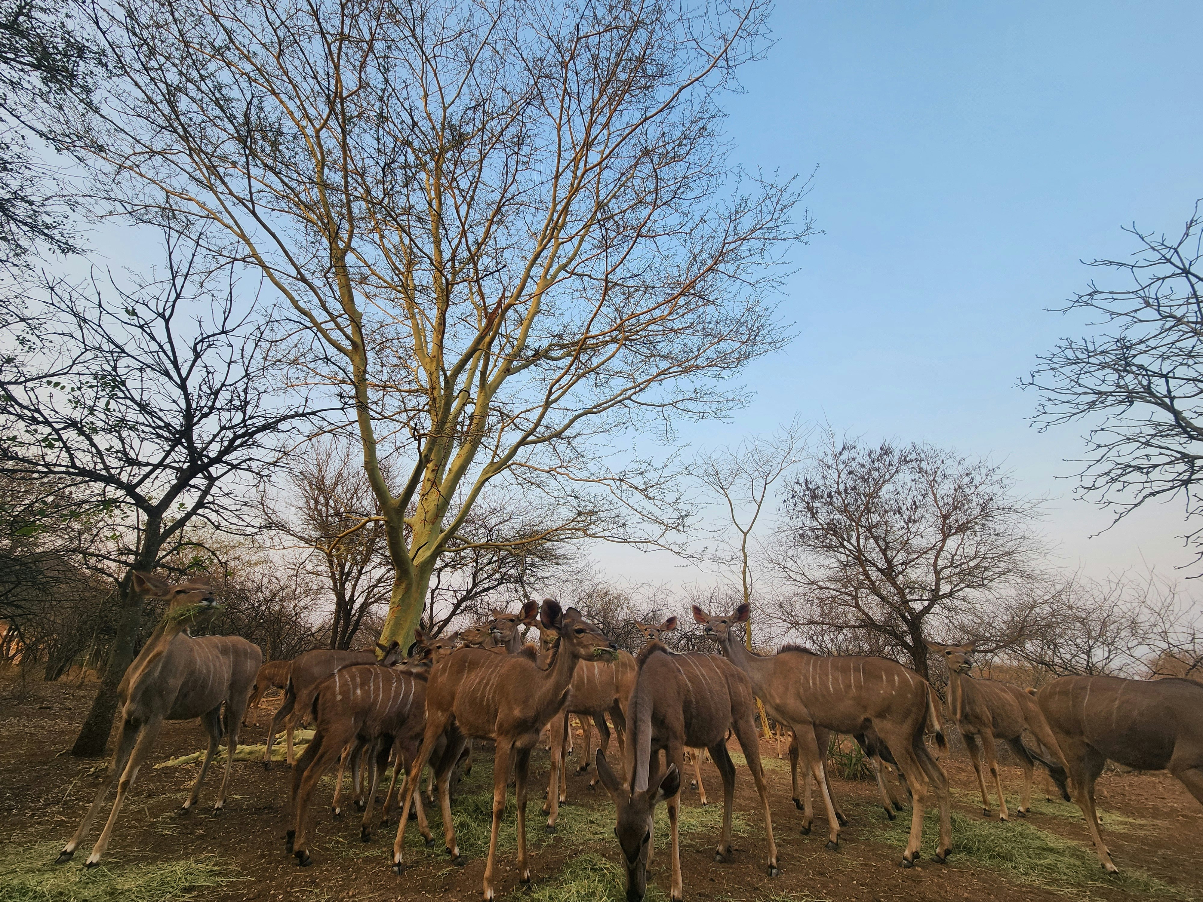Wildlife such as kudu, zebra, giraffe, and a variety of bird species roam freely in the area. At night, guests can often hear the calls of elephant, hippo, lion and hyena from the nearby Crocodile River.