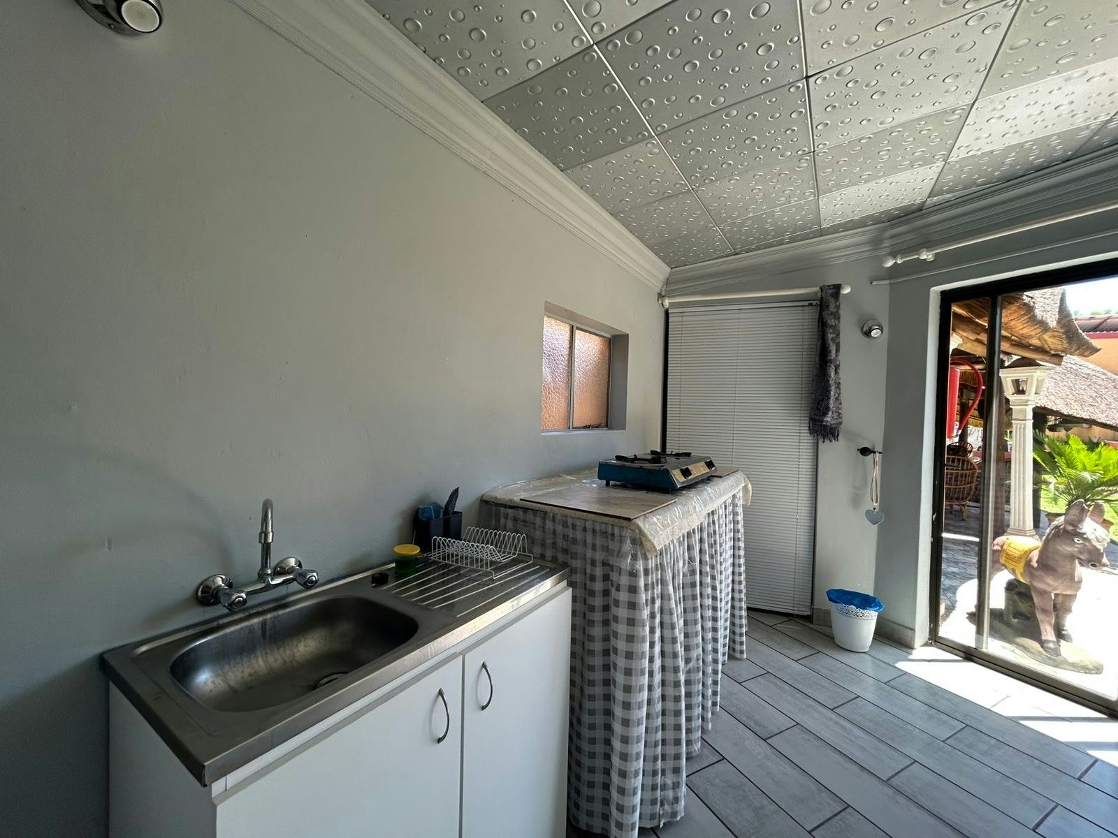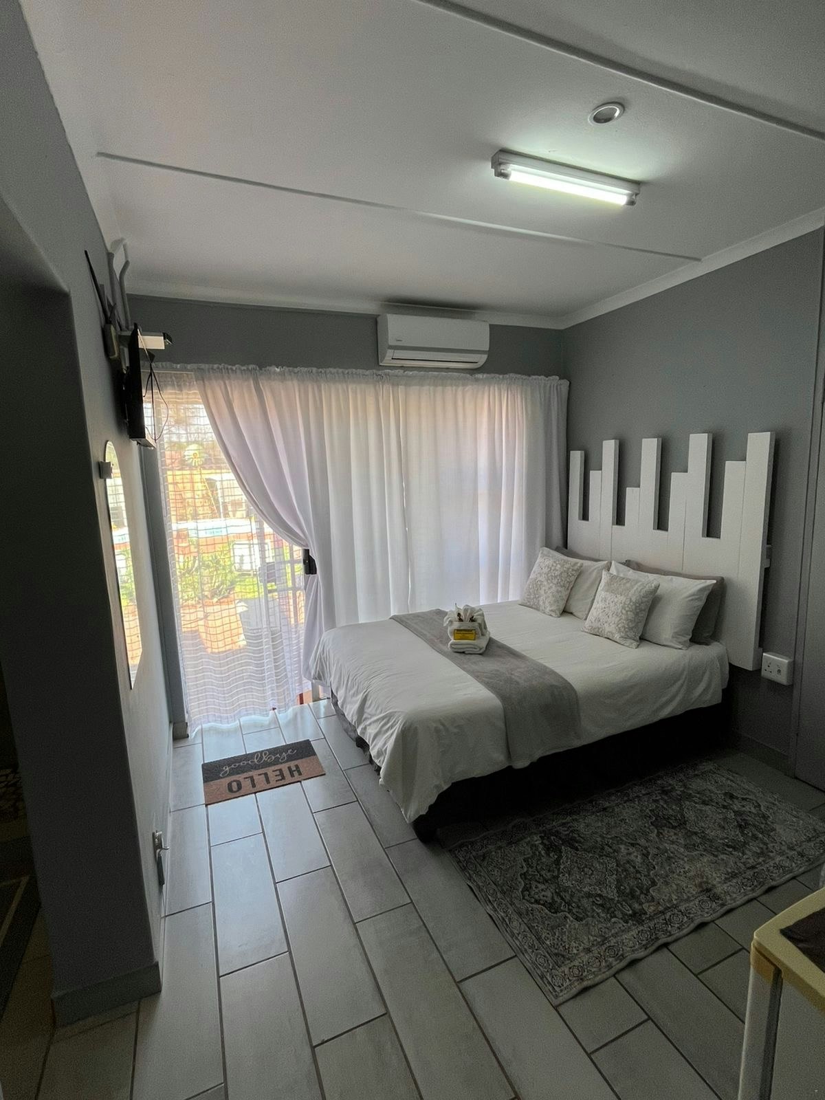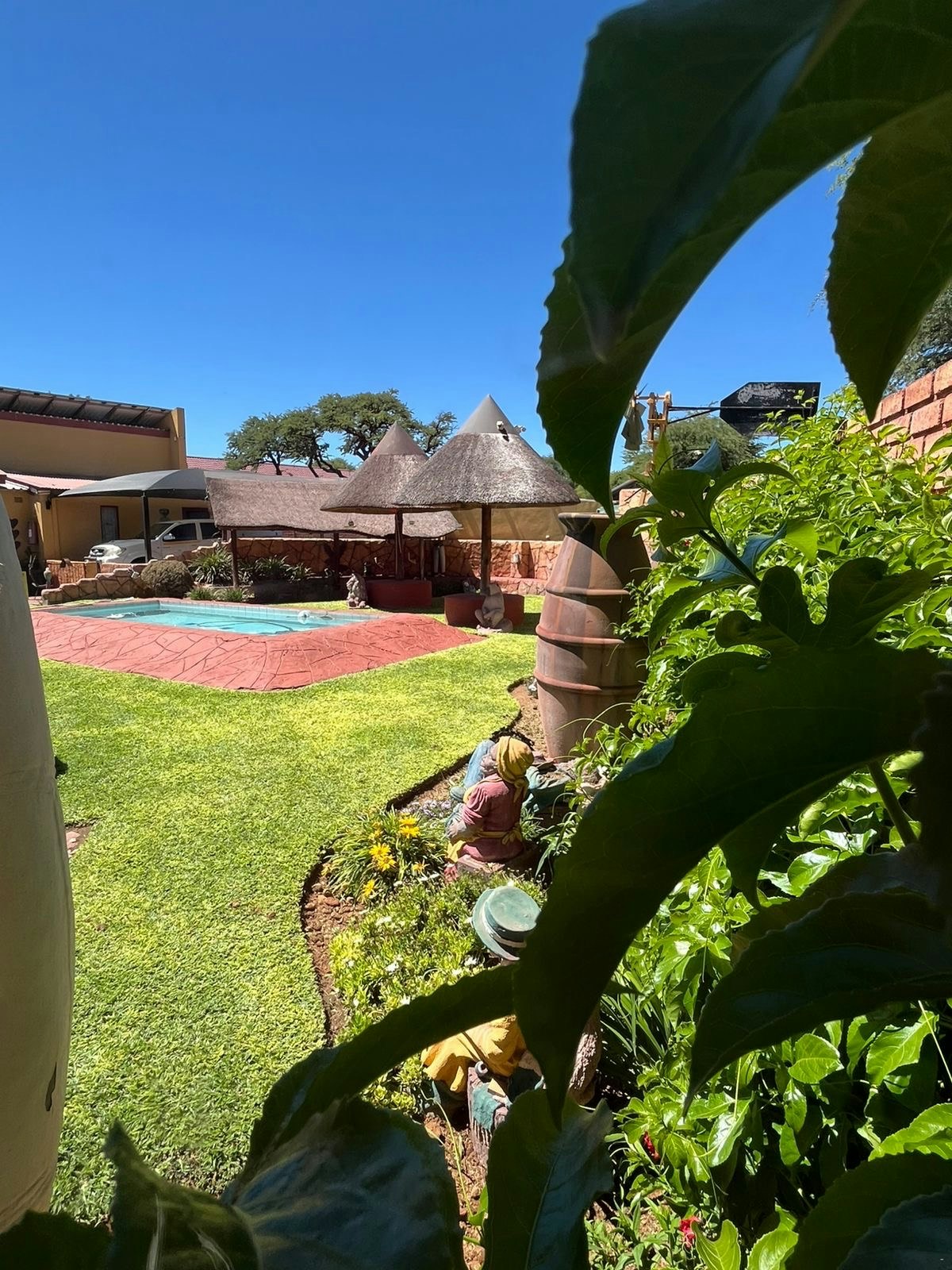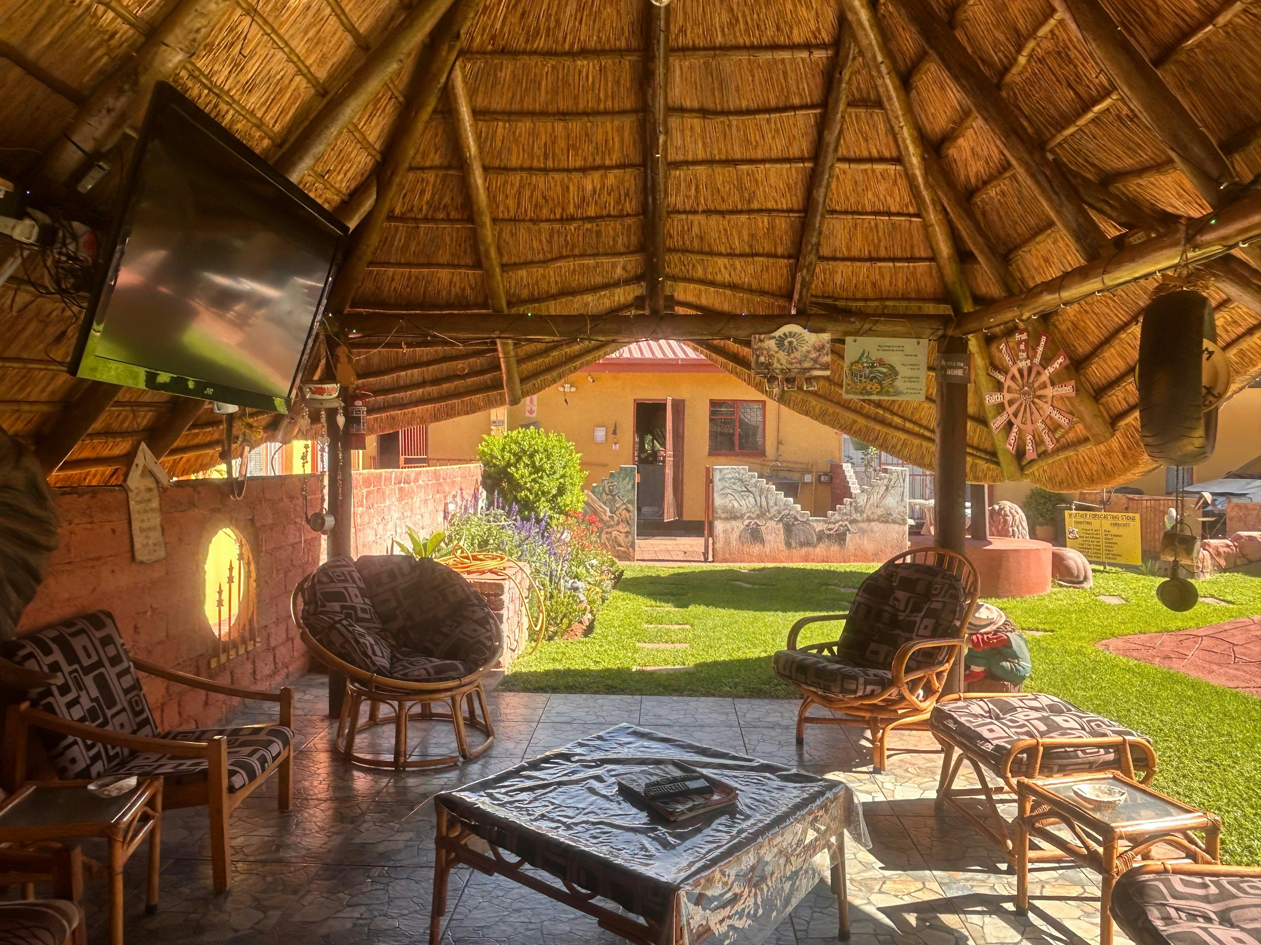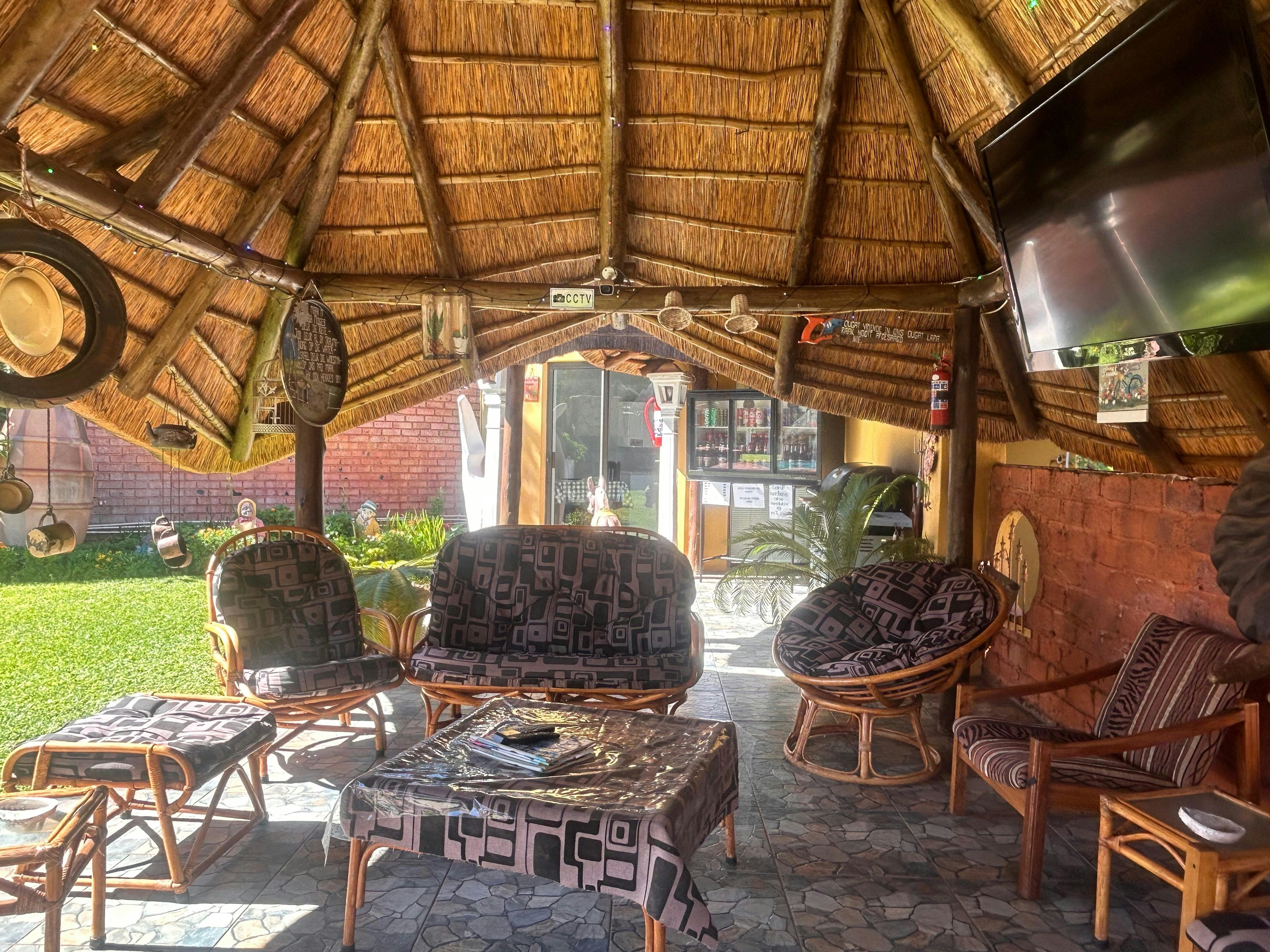 We were very warmly received and taken to the neat room. Very nice garden and facilities. The room we were allocated had only two inconveniences: The stairs to the door are a bit high for older guests with mobility challenges. The room is a bit small for a double bed, not enough space. She showed us a nice spacious room with two single beds. However, we kept the double bed room. We drove a motorcycle and the parking lot's loose gravel stones are not very motorcycle friendly. Something to look at. Furthermore, we had a great stay in Kathu!