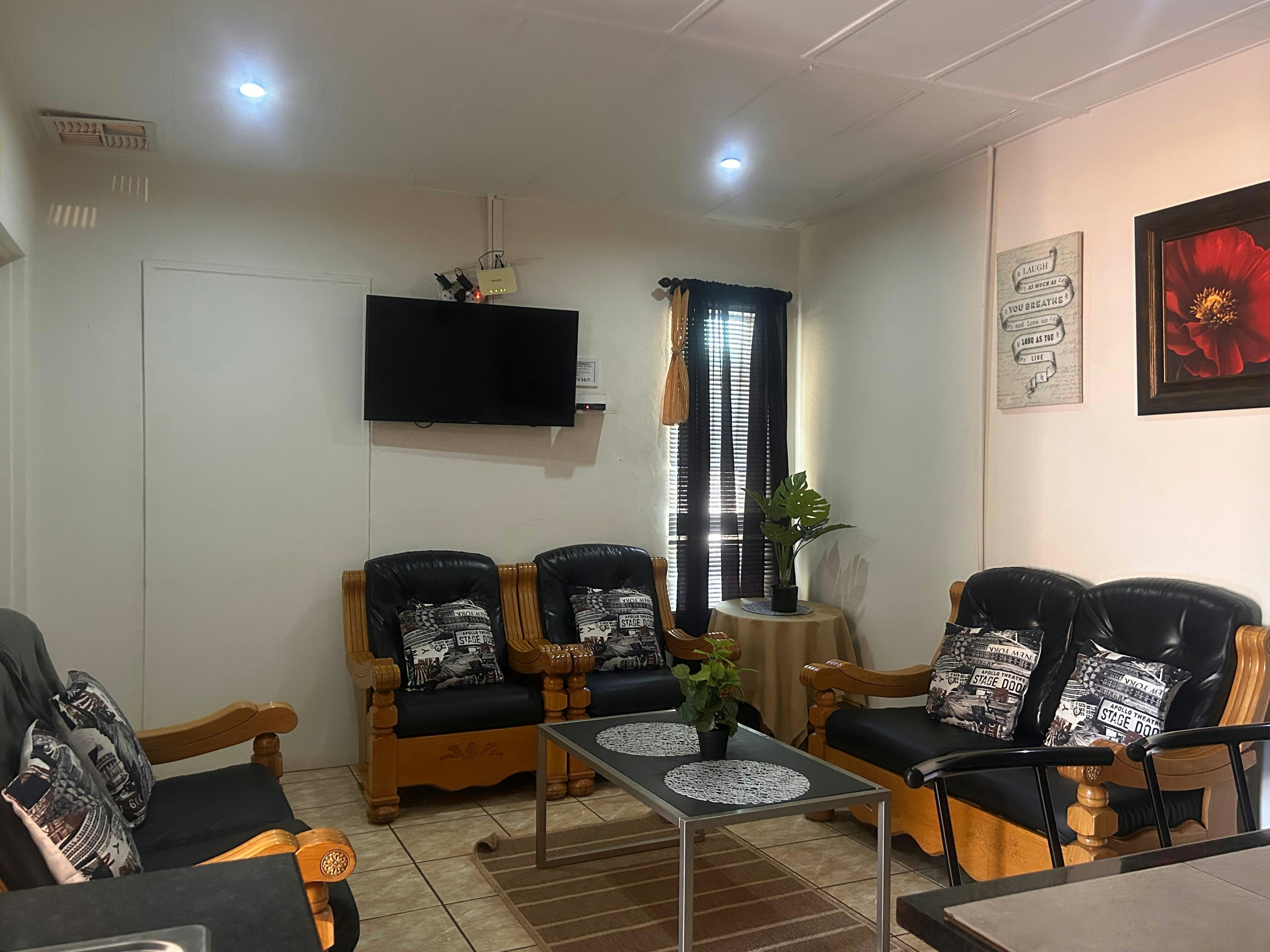 Ons was baie hartlik ontvang en na die netjiese kamer geneem. Baie mooi tuin en geriewe. Die kamer aan ons toegeken het net twee ongemaklikhede: Die trap na deur is bietjie hoog vir ouer gaste met mobiliteitsuitdagings. Die kamer is bietjie klein vir 'n dubbelbed, nie genoeg spasie nie. Sy het ons 'n lekker ruim kamer gewys met twee enkelbeddens. Ons het egter die dubbelbedkamer behou. Ons het 'n motorfiets gery en die parkeerterrein se losgruis klippe is nie baie motorfiets vriendelik nie. Iets om na te kyk. Verder het ons lekker gebly in Kathu!