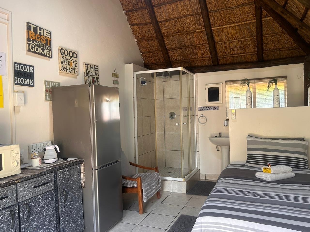 Convenient stay. Neat, convenient halfway stop between North-West and Limpopo as well as the Northern Cape/Western Cape, and Namibia.