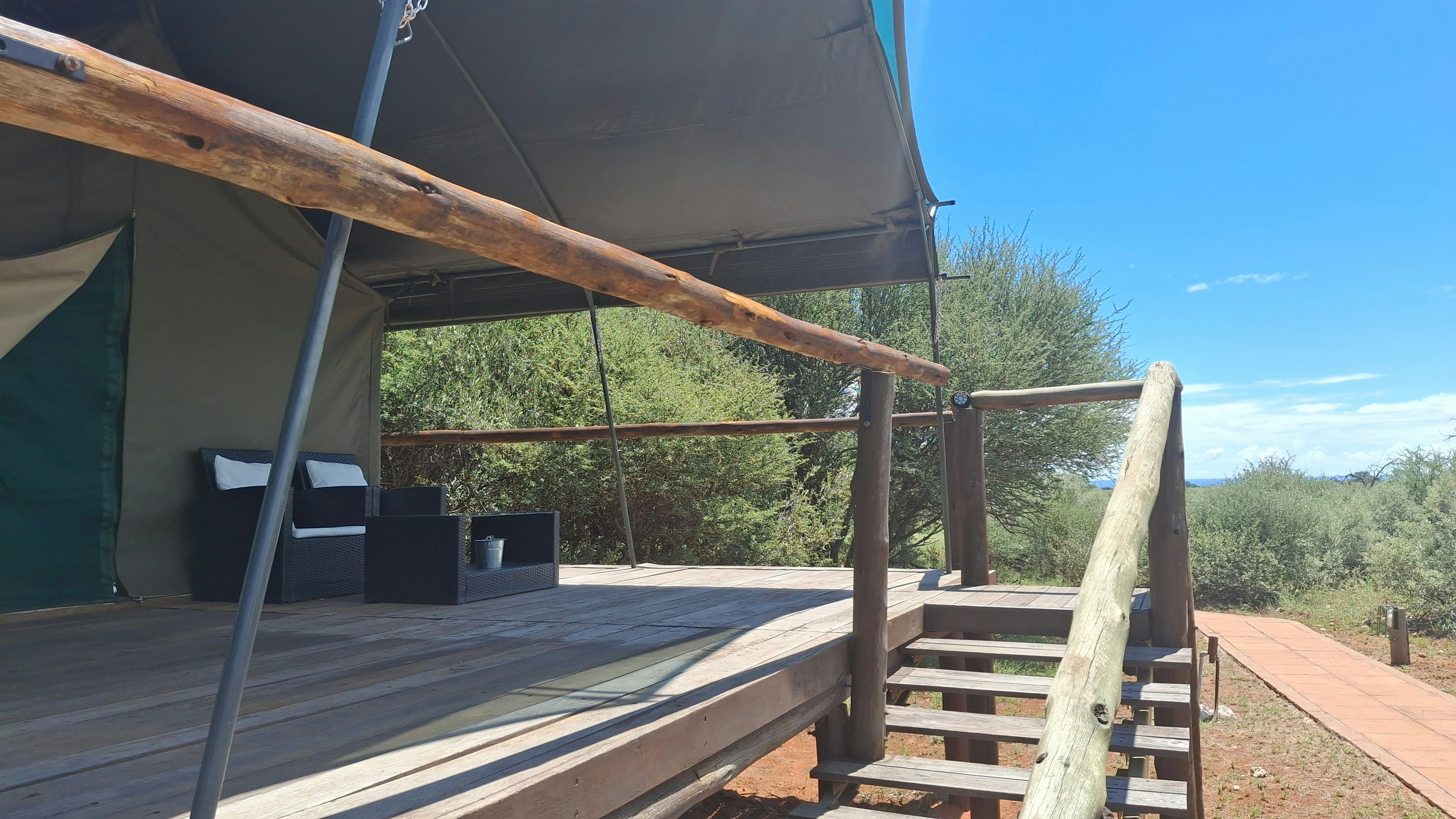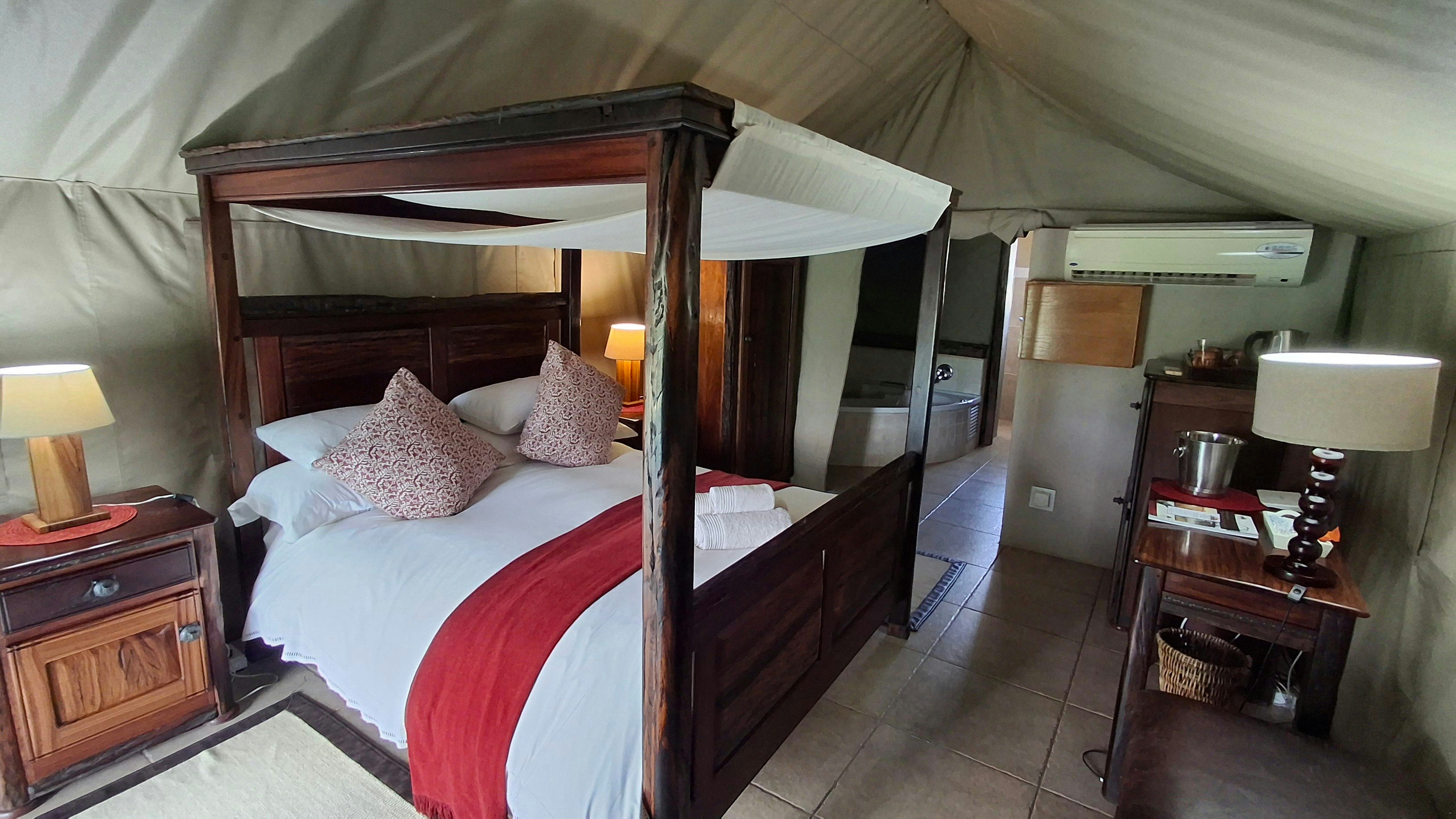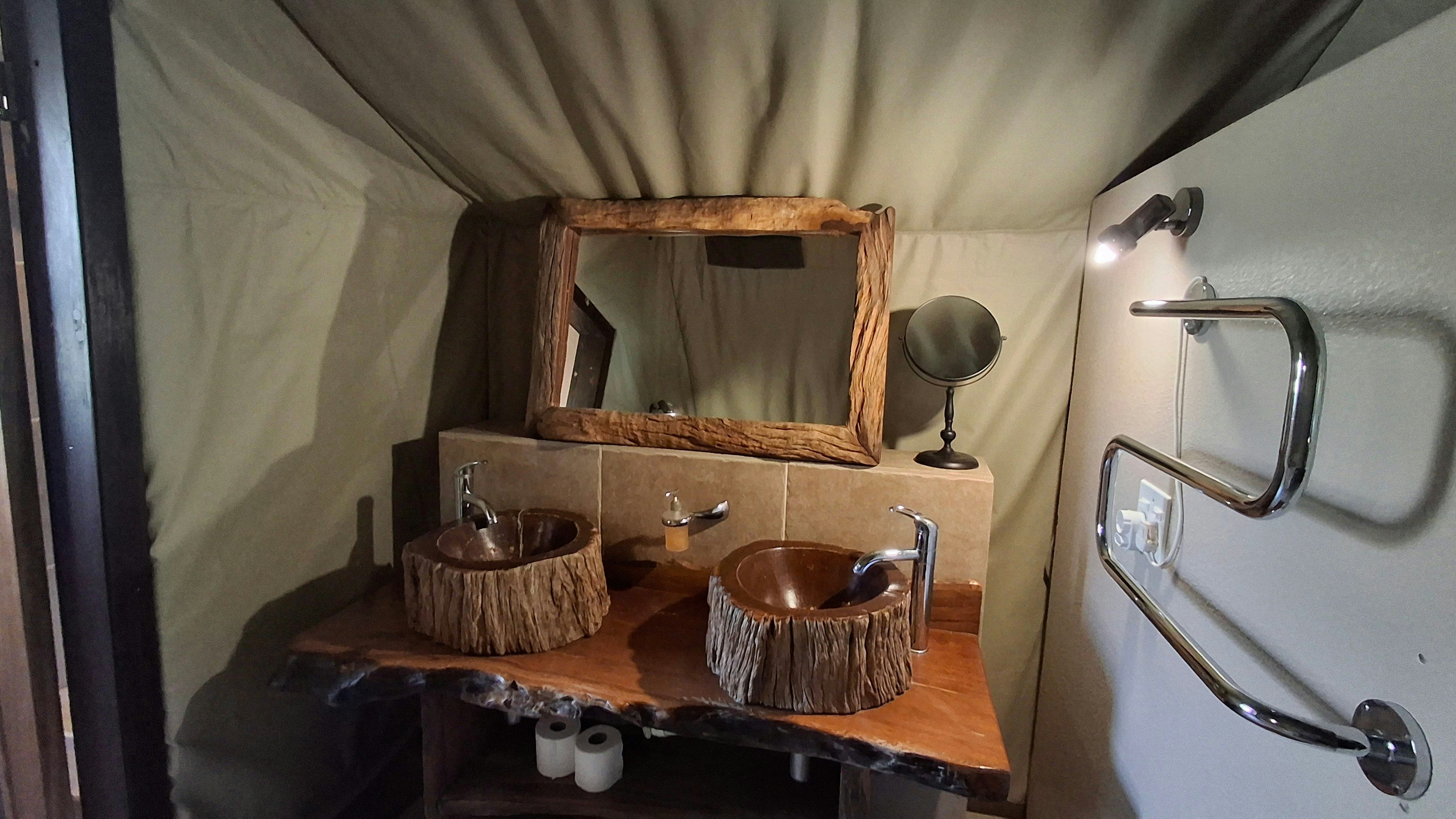 Verblyf sluit 5 luukse safaritente in, elk met 'n privaat uitkykdek en en suite-badkamer met 'n bad, binnenshuise stort en ondervloerse verhitting. Die houthut het 2 en suite-slaapkamers, 'n sitkamer, 'n kombuisie, lugversorging, 'n kaggel en 'n jacuzzi op die stoep. 'n Grasdak-suite met 2 slaapkamers beskik oor 'n solderstyl-slaapkamer, sitkamer, kroeg, twee badkamers, kaggel en lugversorging.