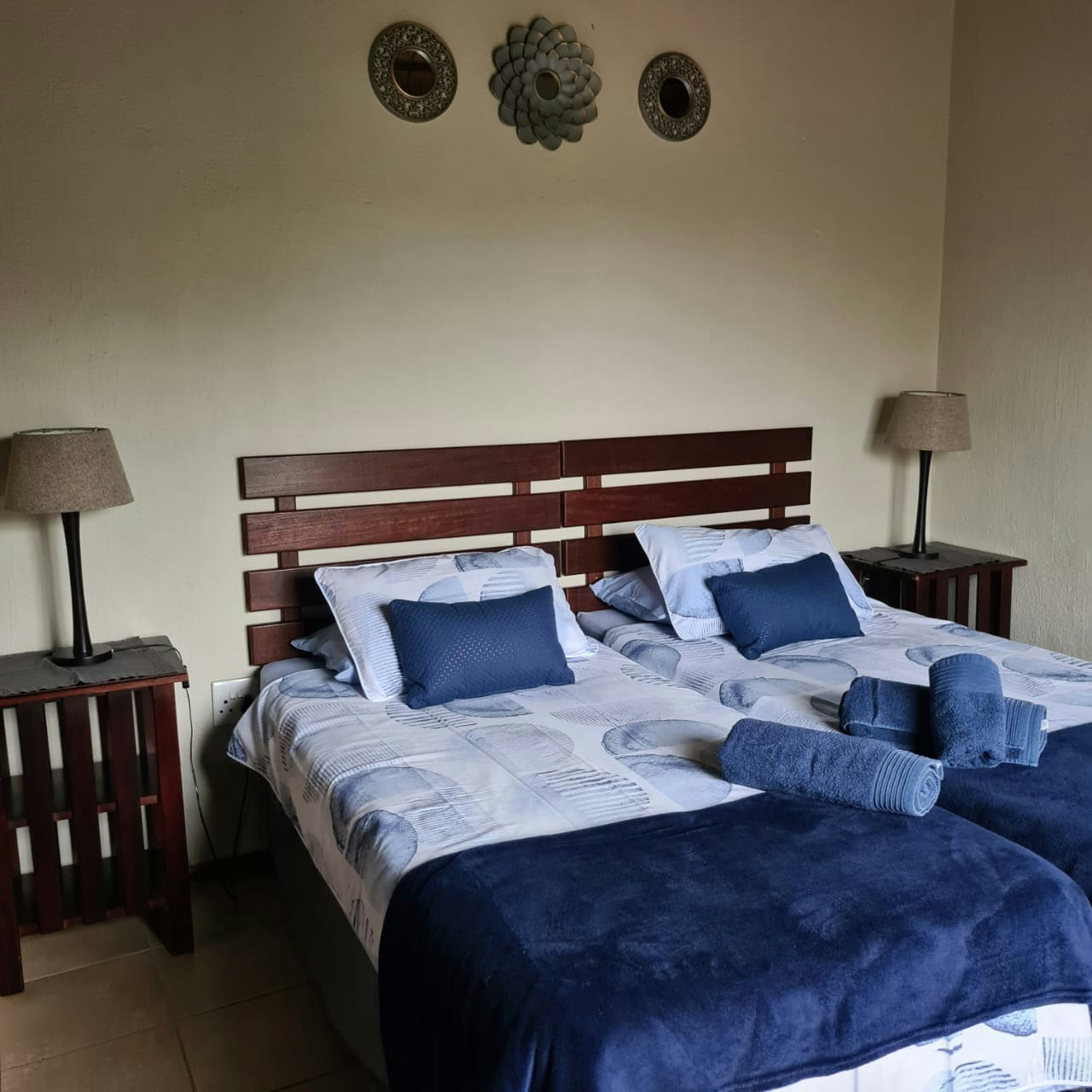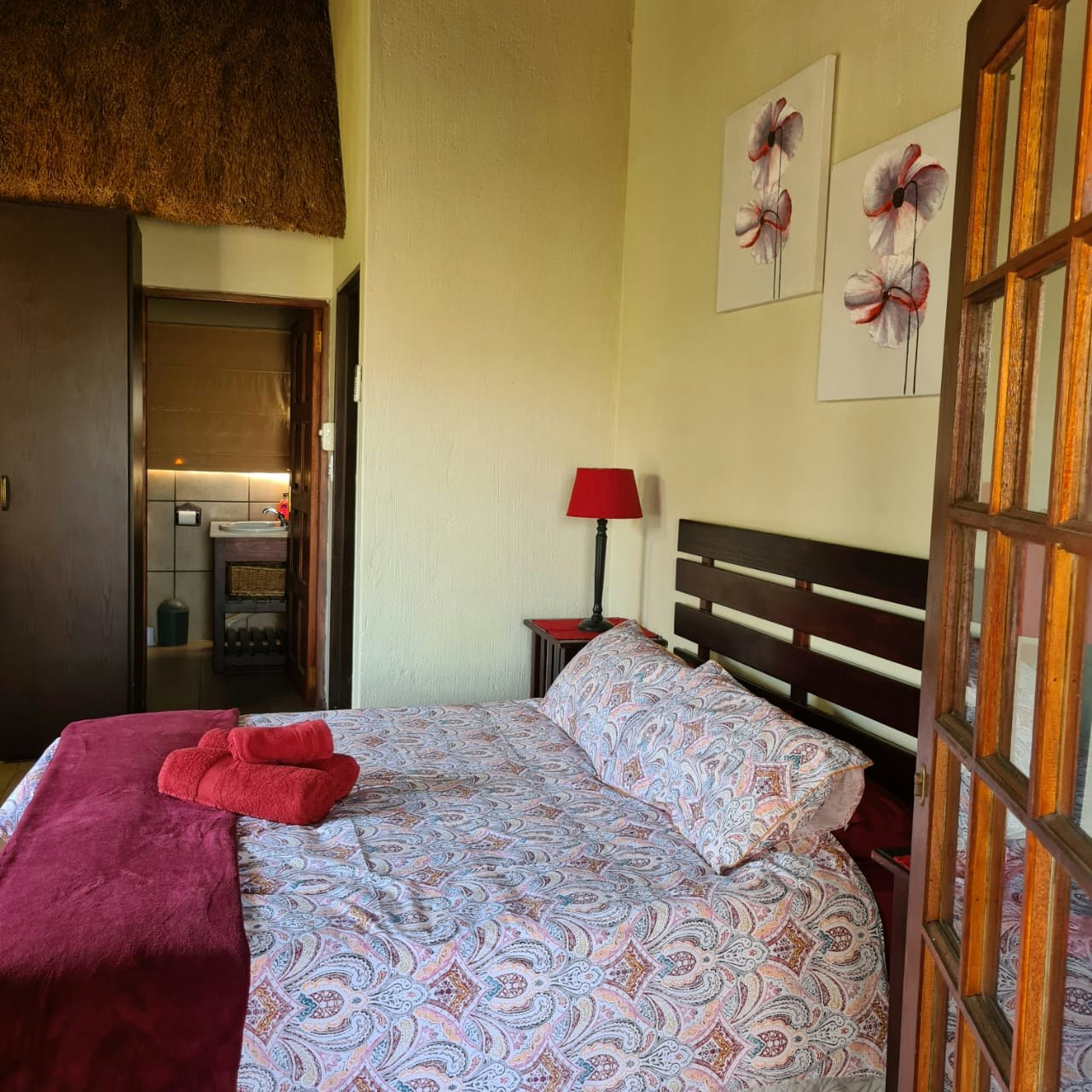 Accommodation is offered in the main house which sleeps 6 guests and the cottage which sleeps 4 guests. Both units have either queen-size beds, double beds or 2 single beds and feature en-suite bathrooms fitted with either a shower or bath, toilet, and washbasins. Pre-paid air-conditioning is also available inside the units.