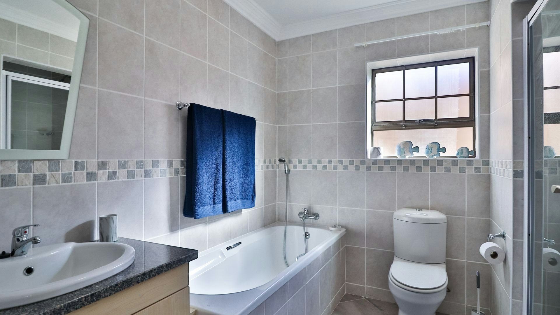 Additional on-site amenities include a laundry room with a washing machine, tumble dryer, and ironing facilities and is located in the double garage. Guests have access to free Wi-Fi, secure garage parking, and loadshedding provisions in the form of an inverter, power bank, and solar panels.