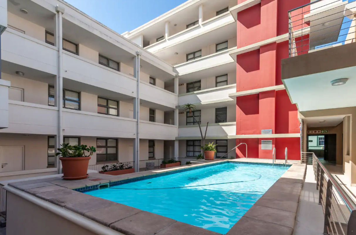 Relax on the balcony with additional outdoor seating, perfect for enjoying meals with loved ones. Guests have access to the complex swimming pool during hot summer days for a refreshing break. Additionally, a surfboard is available for guests to enjoy an adventurous day by the waves, embracing the Muizenberg experience.