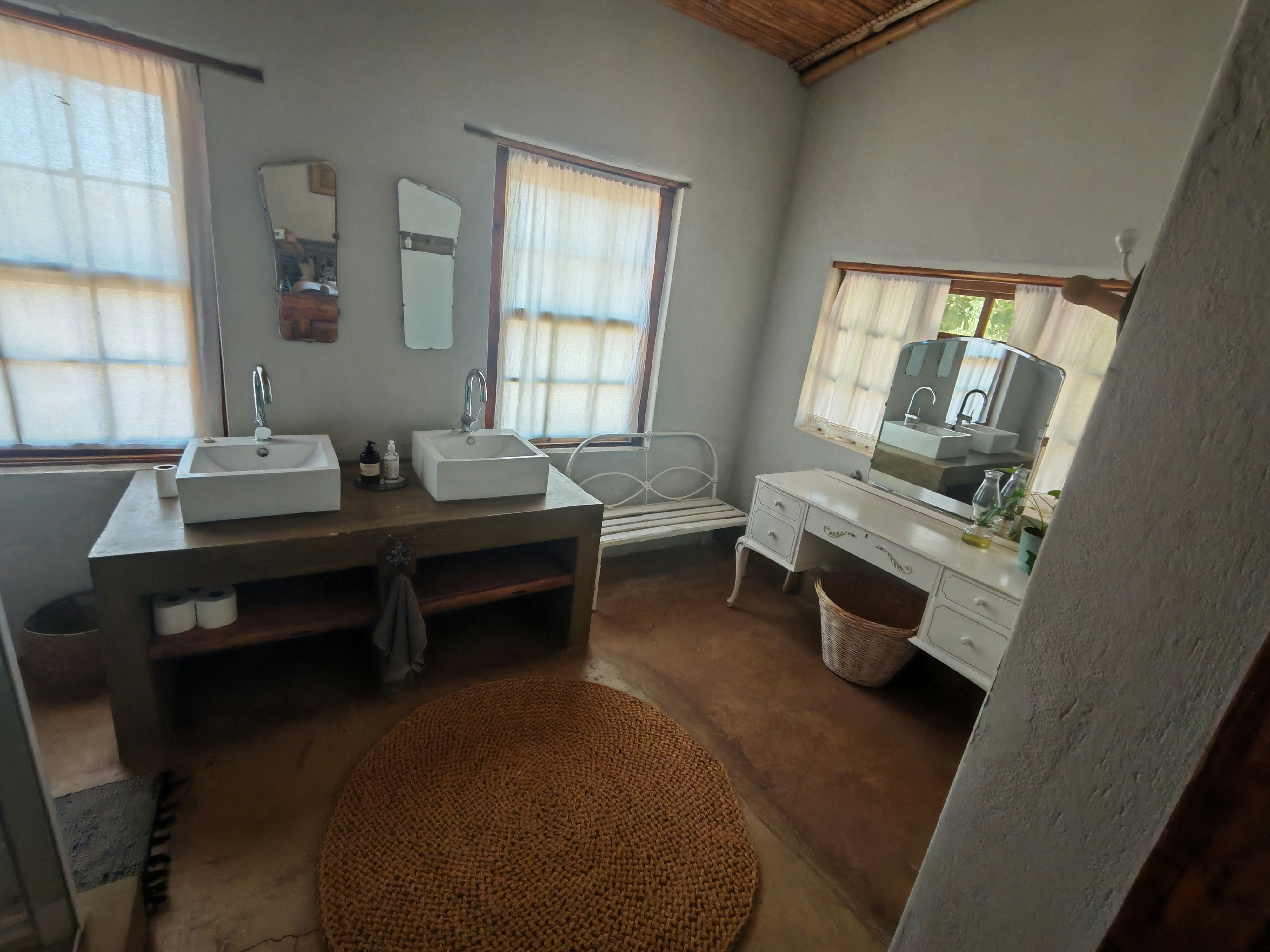 The house comprises 3 bedrooms and 2 bathrooms and can accommodate 6 guests at a time. The main bedroom has a double bed and an en-suite bathroom fitted with a shower, toilet and basin. The second bedroom has a double bed and the third bedroom has 2 single beds. The second bedroom features a bath, toilet and basin. Linen and towels are provided for guests' convenience. Electric blankets are placed on the beds in winter.