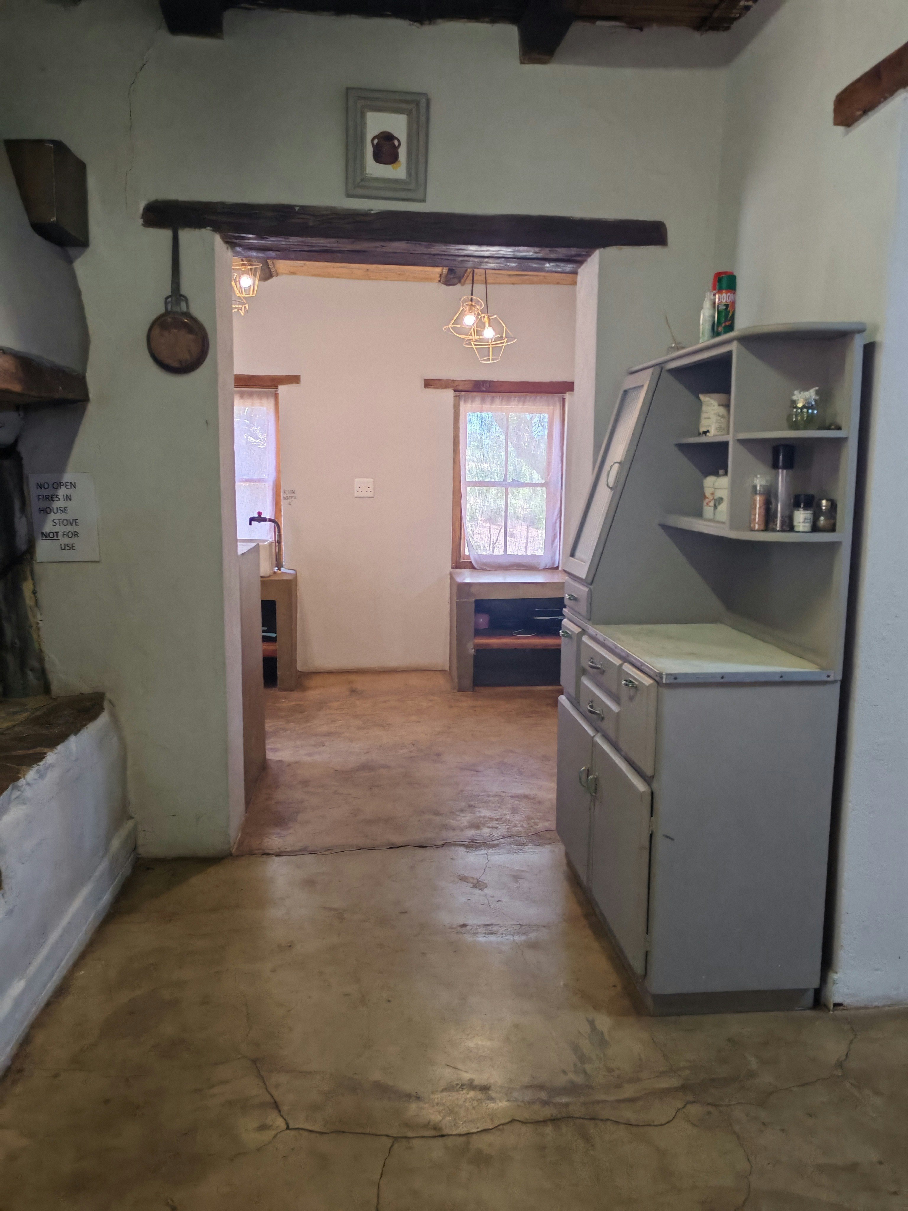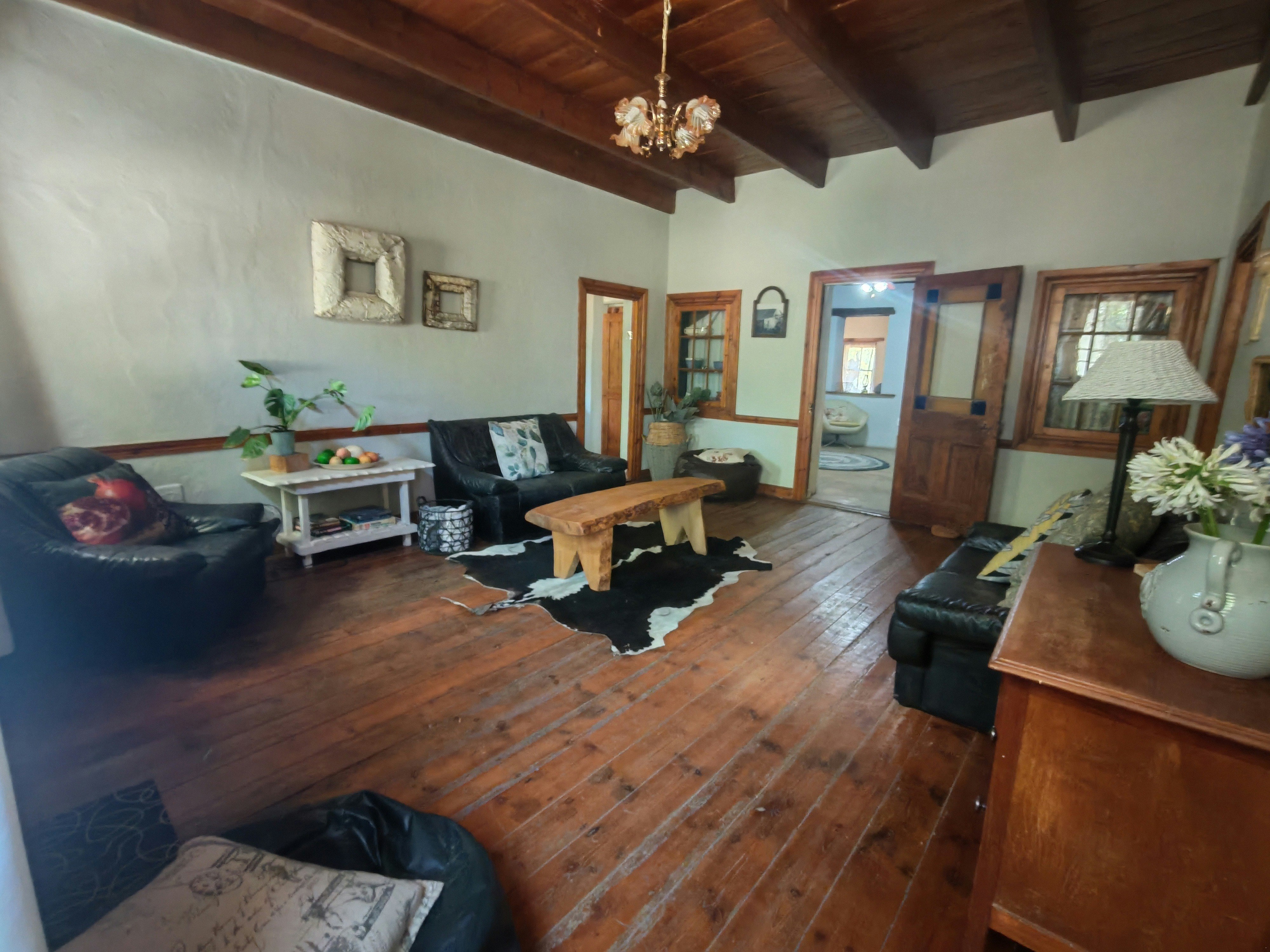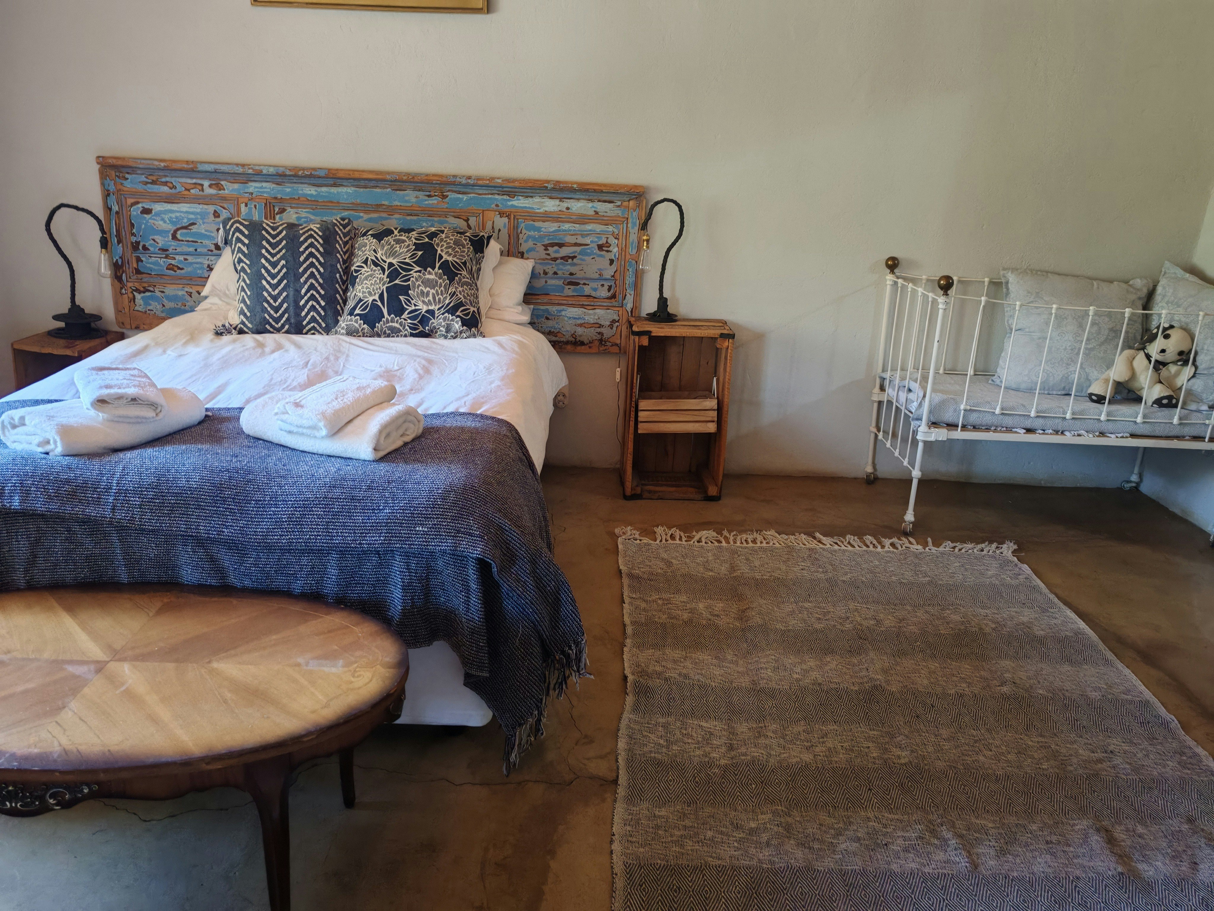The lounge has comfortable couches and walks out onto a spacious patio with outdoor furniture and braai facilities. It boasts beautiful views of the Swartberg and in the evening, guests can admire the starry skies.