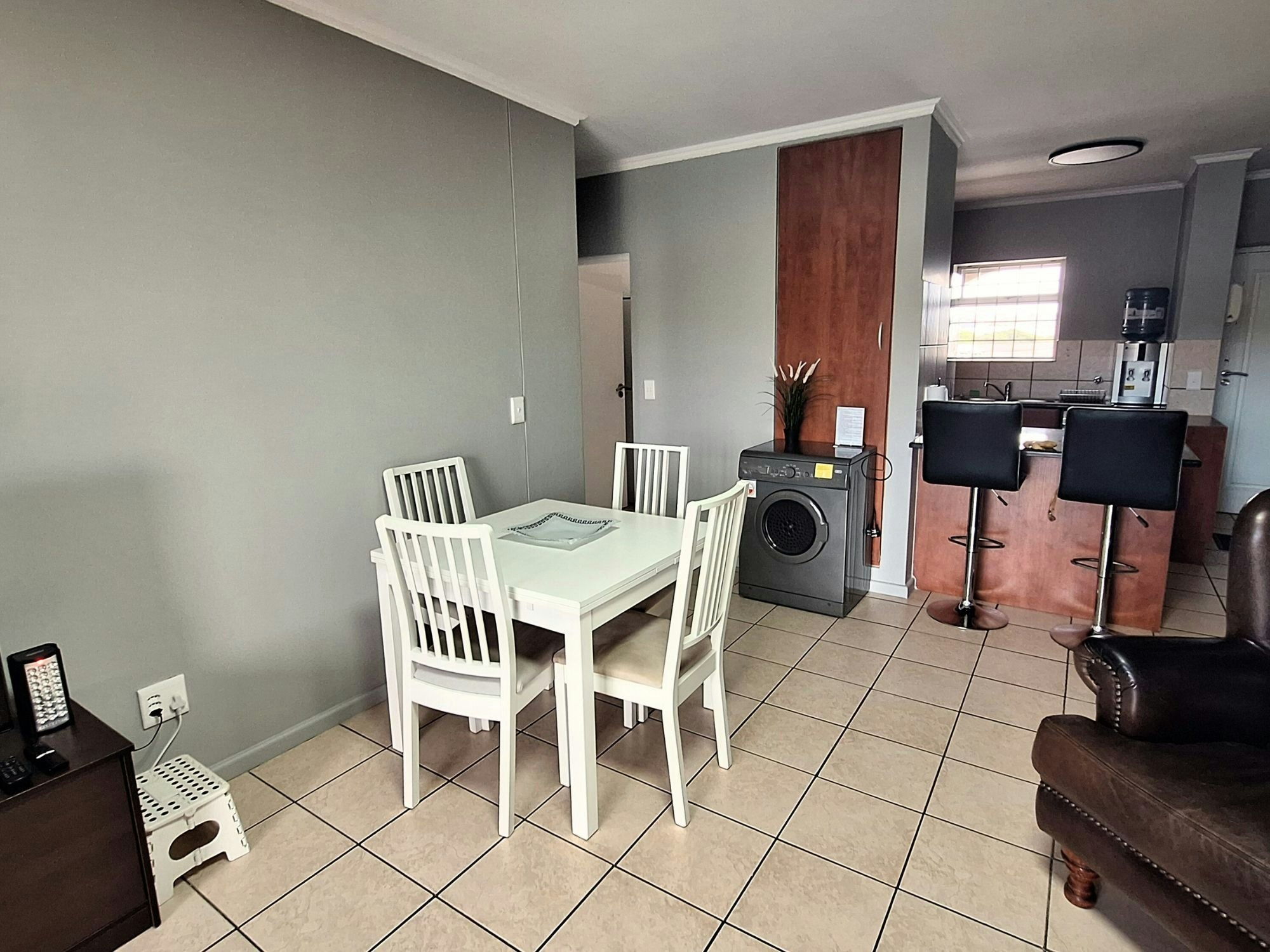 Merve’s Place is a modern, well-maintained two-bedroom apartment located in the secure Portobelo complex, within walking distance of Diaz Beach in Mossel Bay.