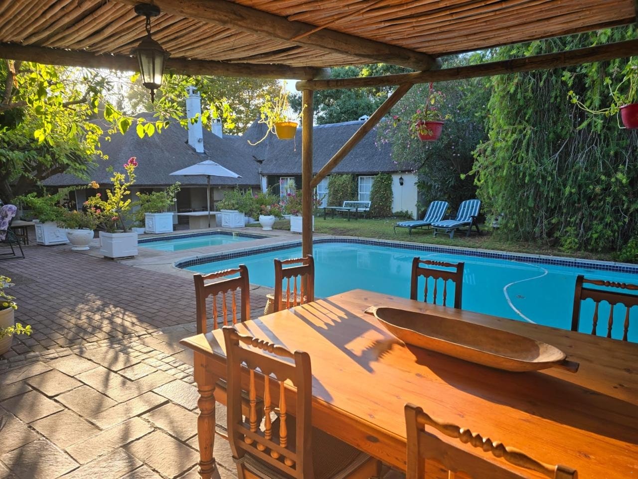 The property’s expansive garden invites relaxation, with multiple outdoor social and leisure spaces, including two sparkling pools, two gazebo-covered areas nestled on a terrace, a peaceful courtyard, and seven unique braai areas scattered across the grounds.