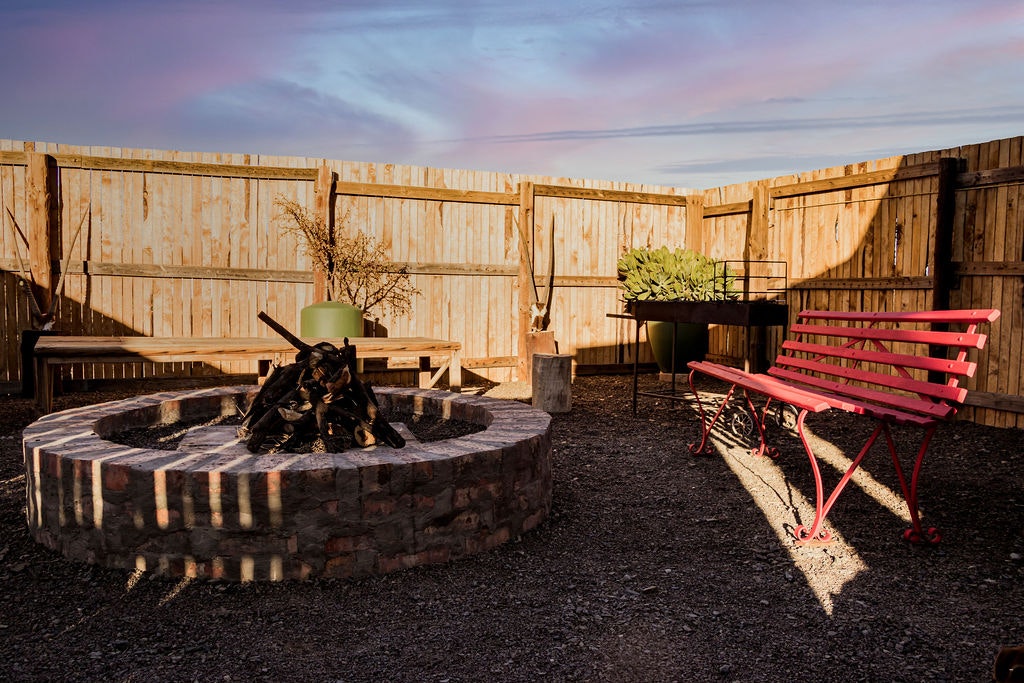 Buite is daar 'n boma-area waar gaste om die vuur met 'n glasie wyn kan kuier of in die swembad kan afkoel. Die plaas het voetslaanpaaie om te verken en 'n "waterval" wat slegs loop wanneer dit reën wat gaste kan besoek.