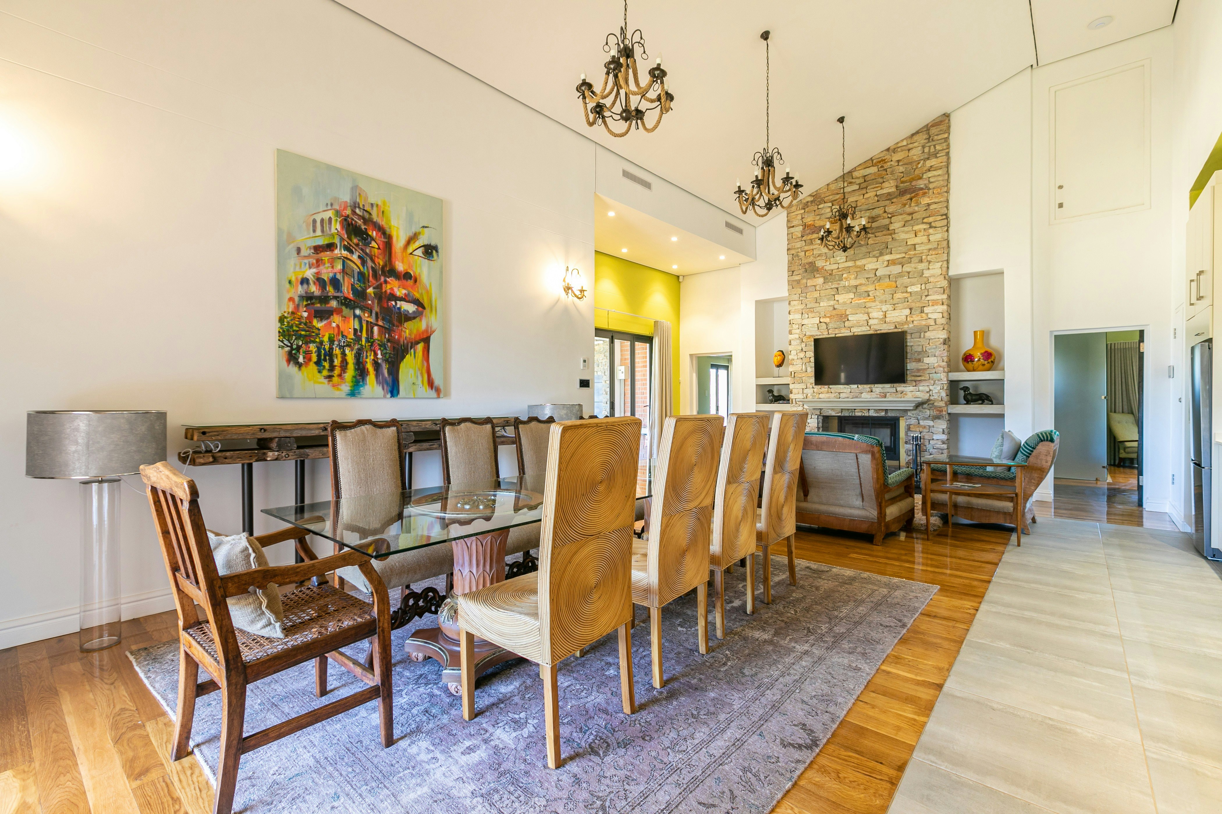 Gaste het toegang tot 'n groot kuier-area en saal met sitareas, slim-TV's, kaggels en lugversorging wat lei na die stoep met meubels. Daar is luidsprekers, 'n projektor en skerm wat ideaal vir funksies of konferensies is.