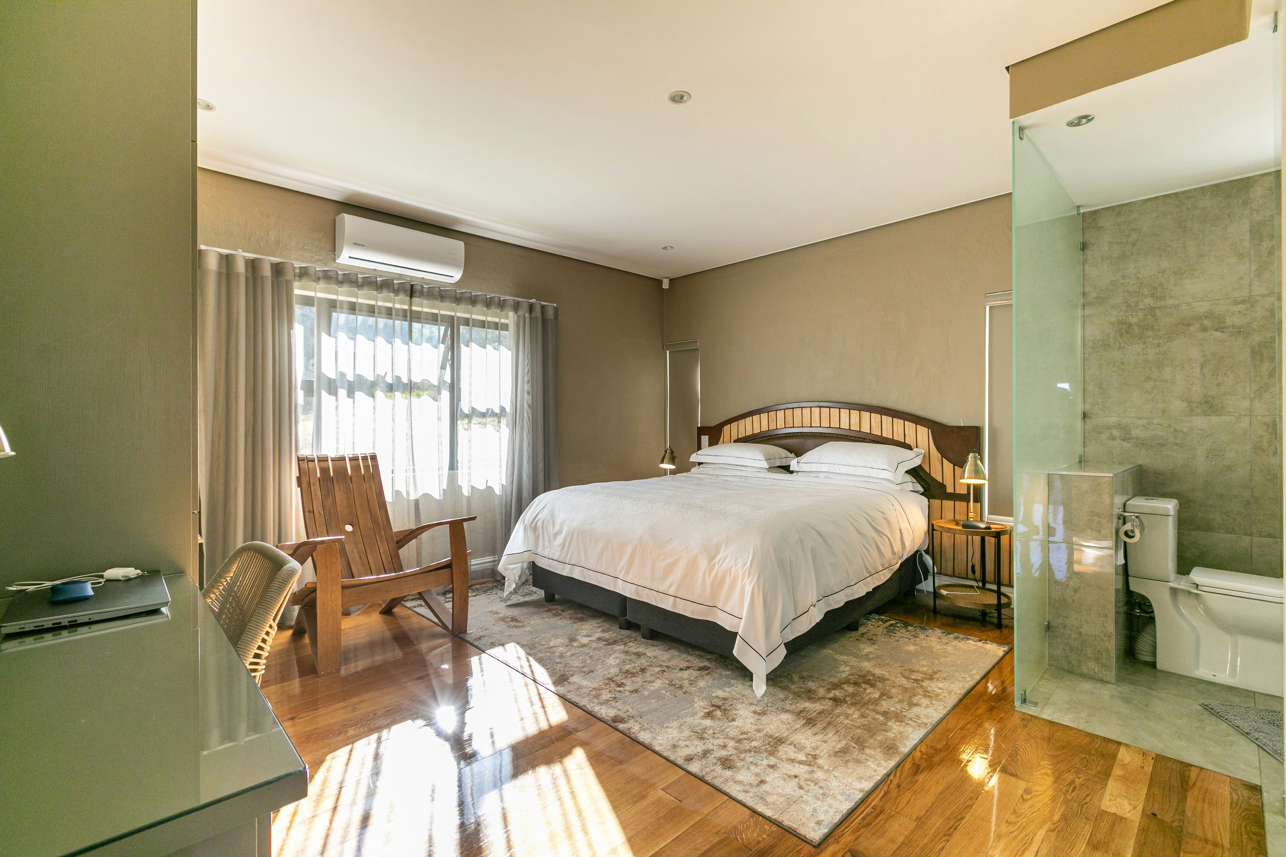 Daar is 5 pragtige en losstaande villas. Vier villas bied slaapplek aan 4 gaste en die ander villa bied slaapplek aan 6 gaste. Die kamers het gemaklike beddens en en suite-badkamers met gehaltelinne en badhanddoeke. Elke villa het lugversorging, 'n kombuis, eet- en leefarea met kaggels. Daar is 'n slim-TV en gratis WiFi en elke villa lei na 'n houtdek met 'n ingeboude braai en sitplek met 'n uitsig oor die tuin en op die heuwels.