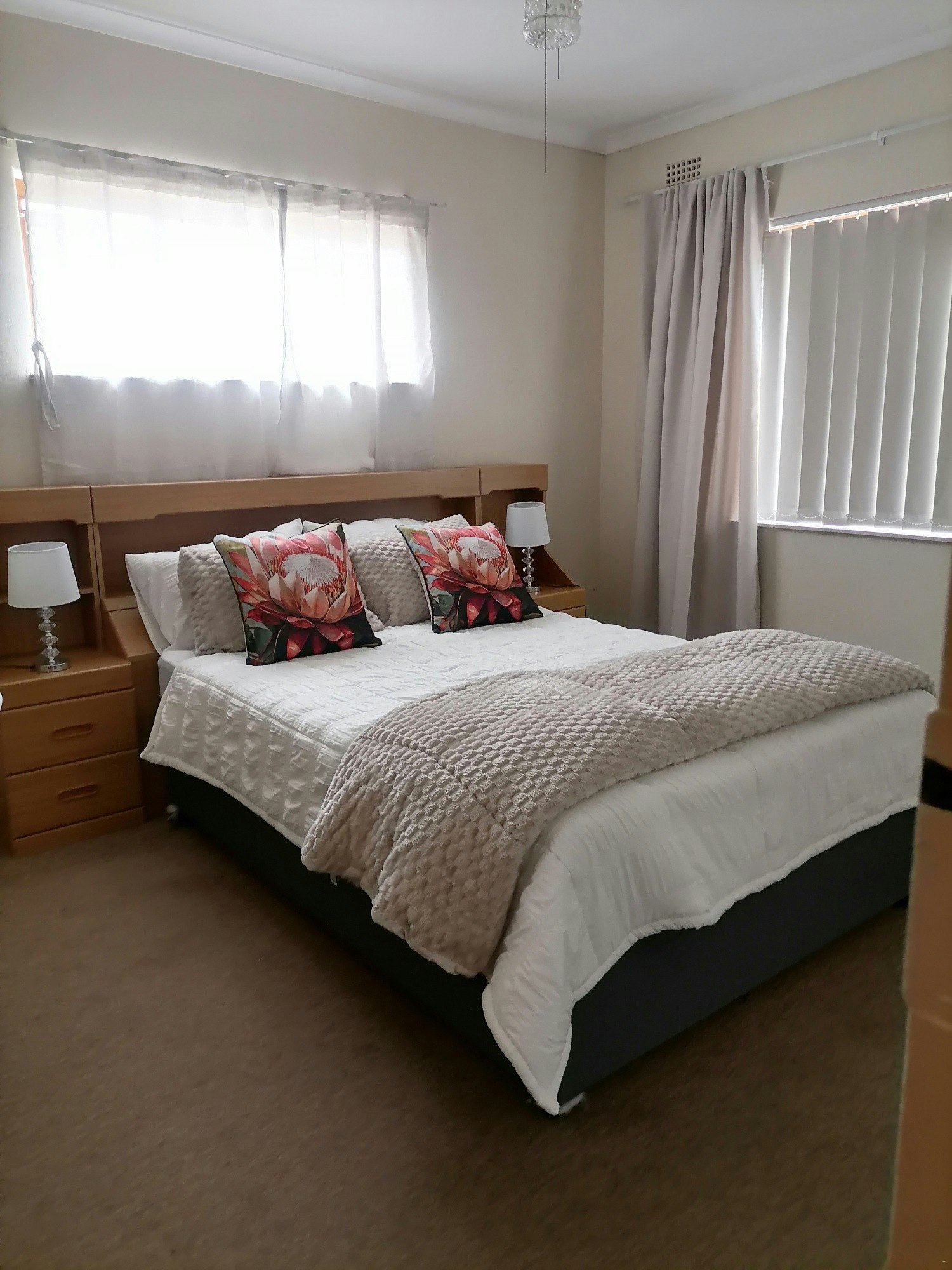 Kamer met 2 x enkelbeddens, ingeboude kaste en waaier. Deel badkamer met een ander kamer. Gemeenskaplike kombuis, sitkamer en braaikamer. TV met Netflix en DSTV. Vinnige wifi.