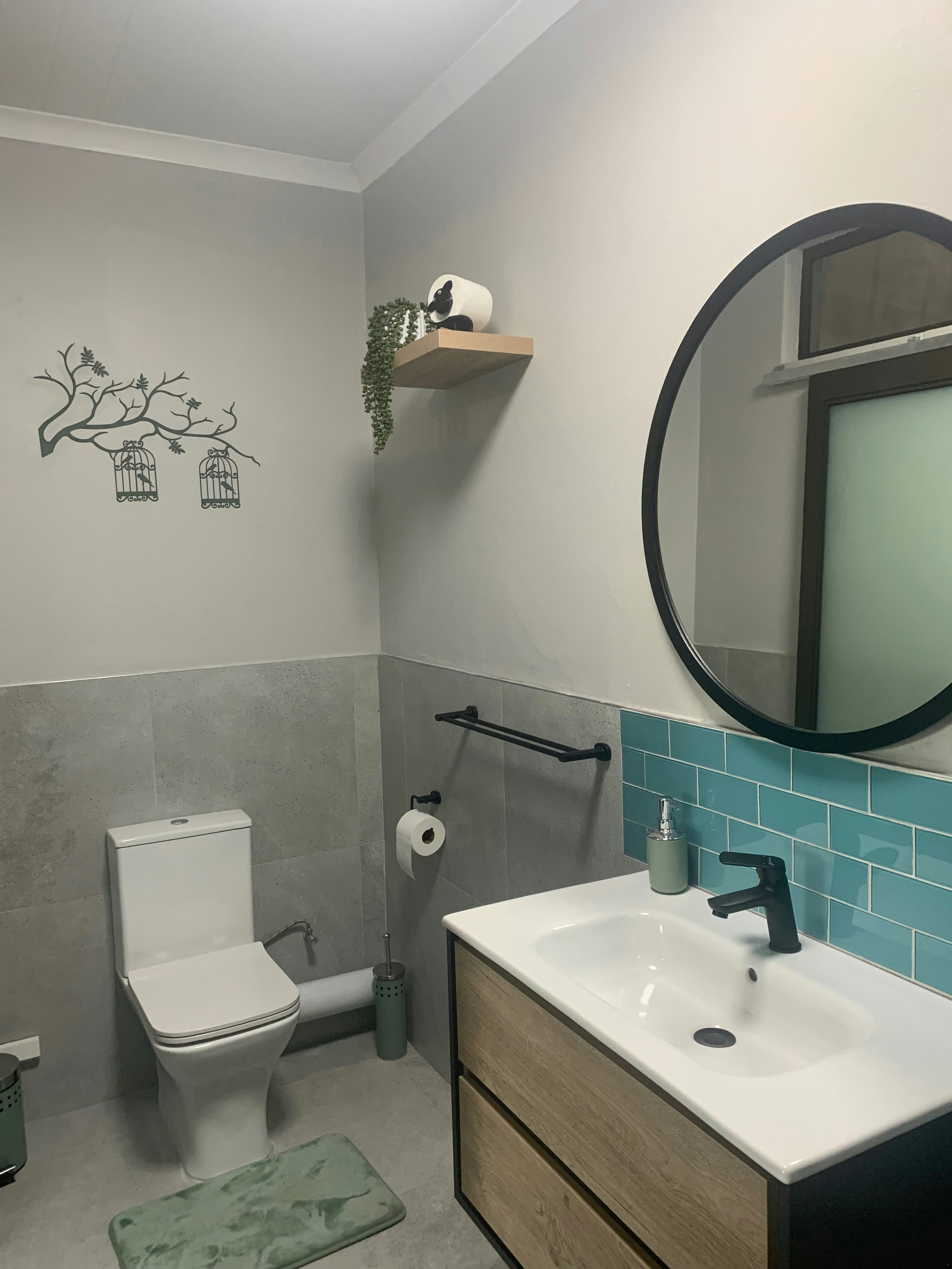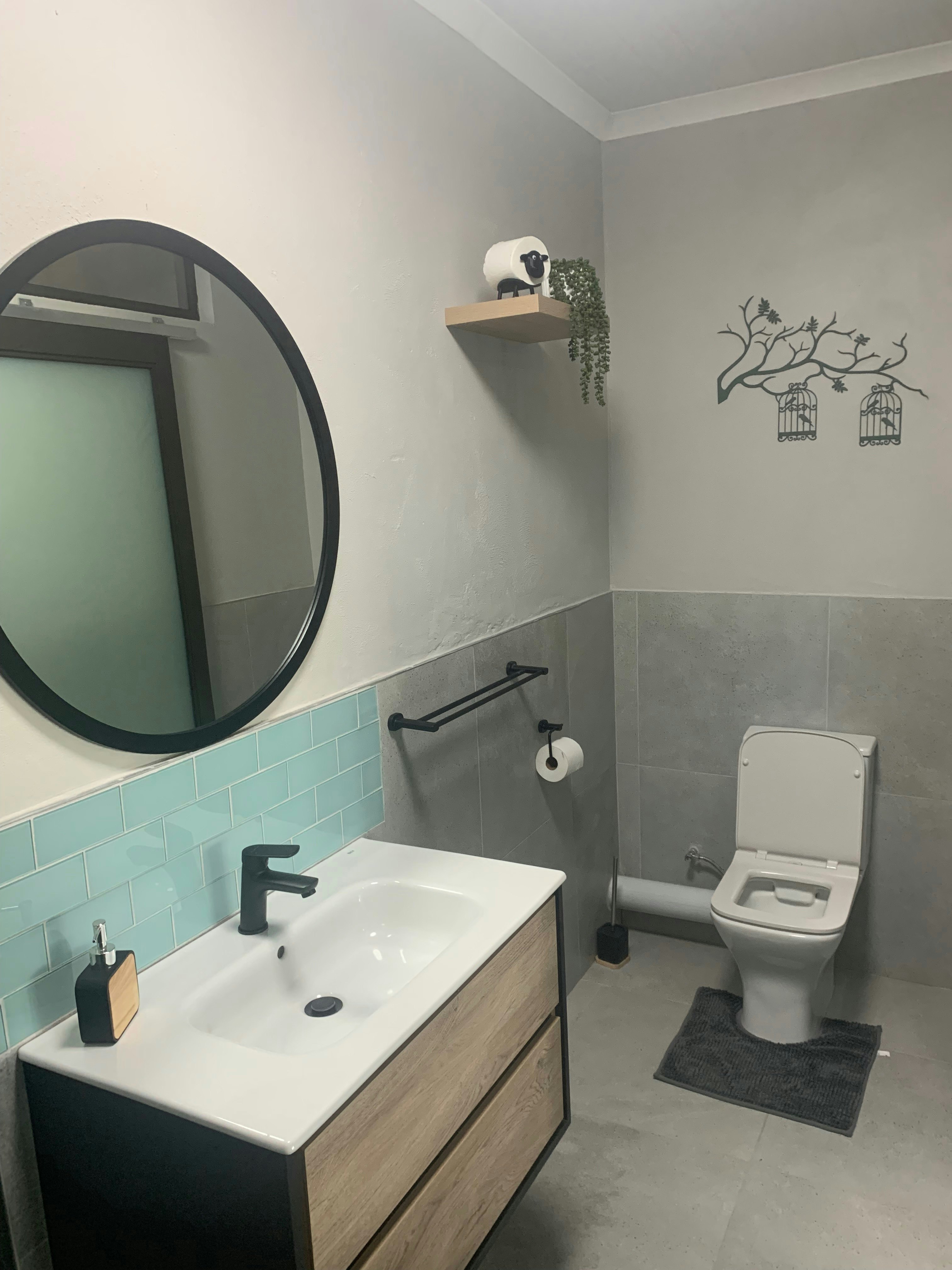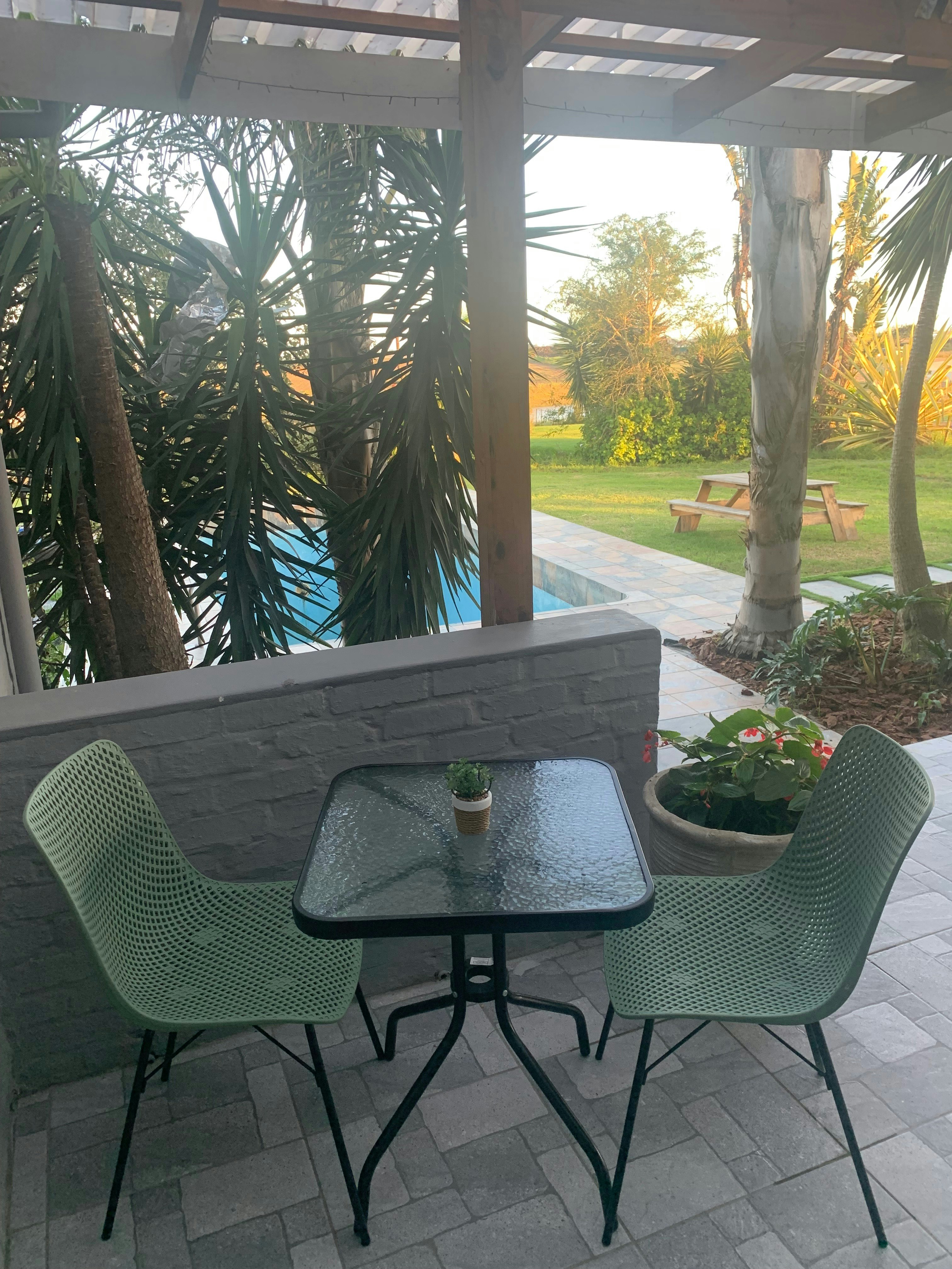 This unit can accommodate up to 2 guests and is furnished with a double bed and has an en-suite bathroom that is fitted with a shower, washbasin and toilet. Linen and bath towels are provided. The room also features a TV with DStv and streaming services and the kitchenette is equipped with a bar fridge, microwave, toaster, necessary cutlery and crockery and tea- and coffee-making facilities. Access to Wi-Fi is available. Guests can enjoy an undercover patio with seating, a shared swimming pool, 2 braai areas and a lush garden. Secure parking is available on the premises.