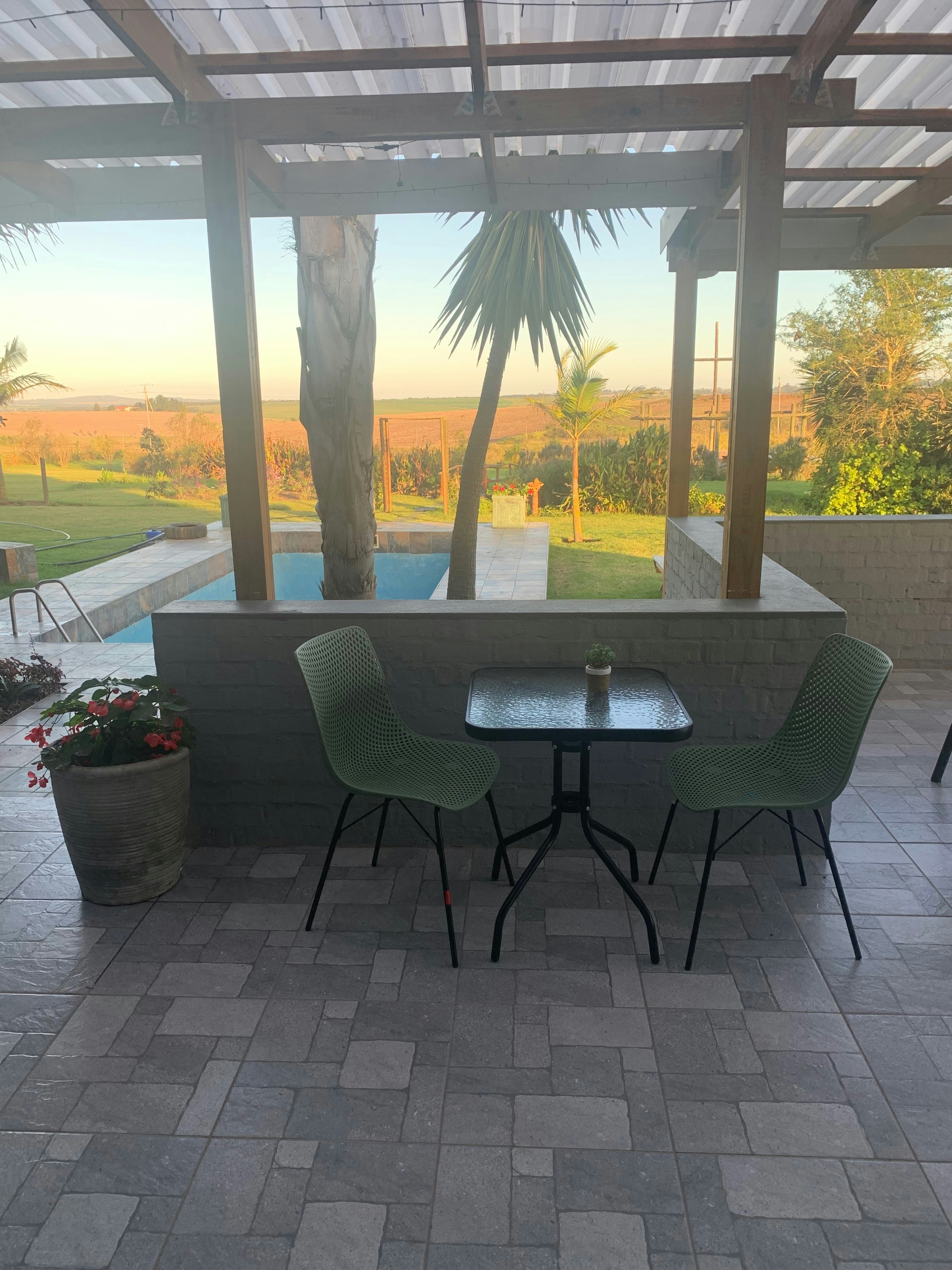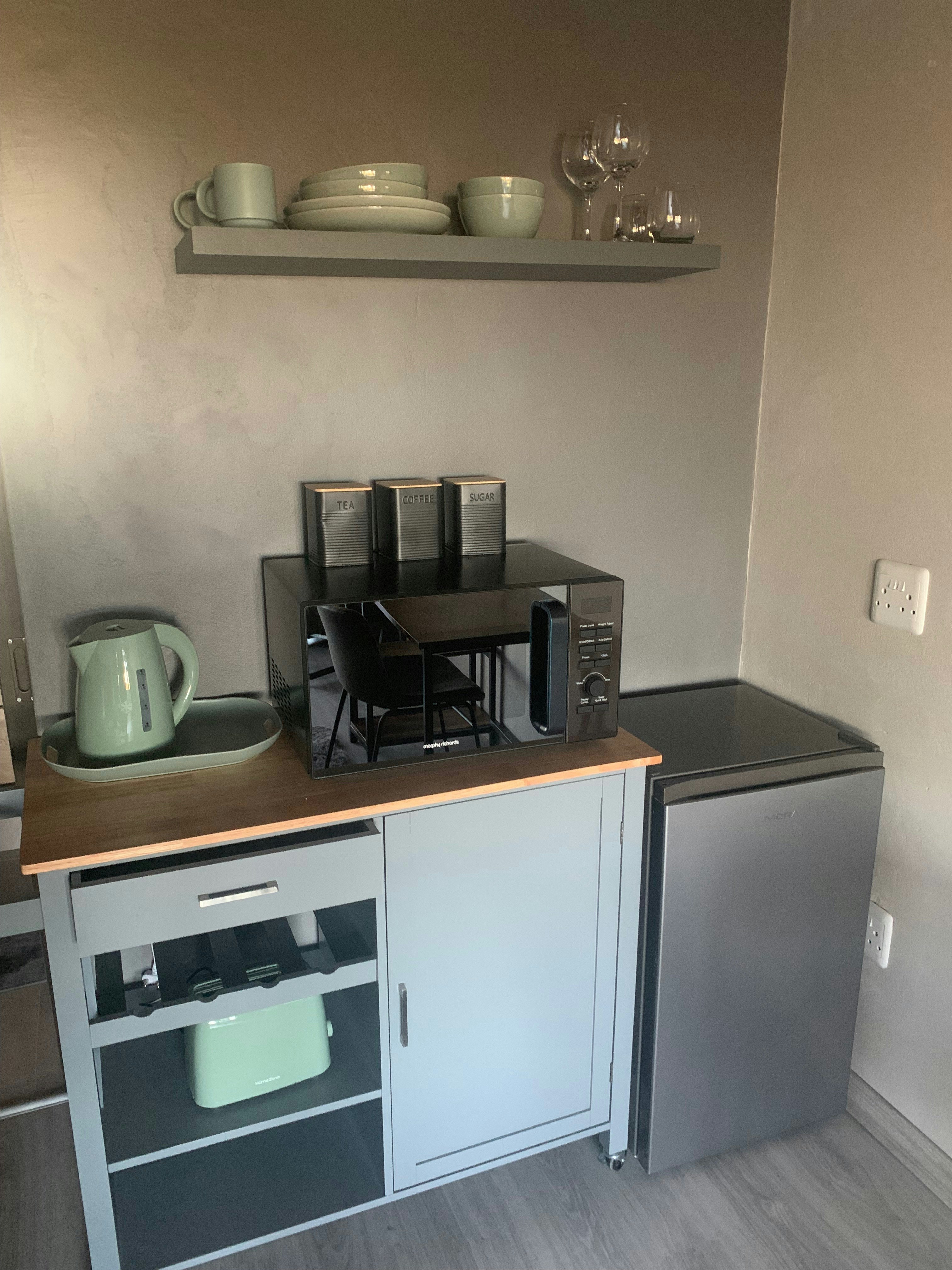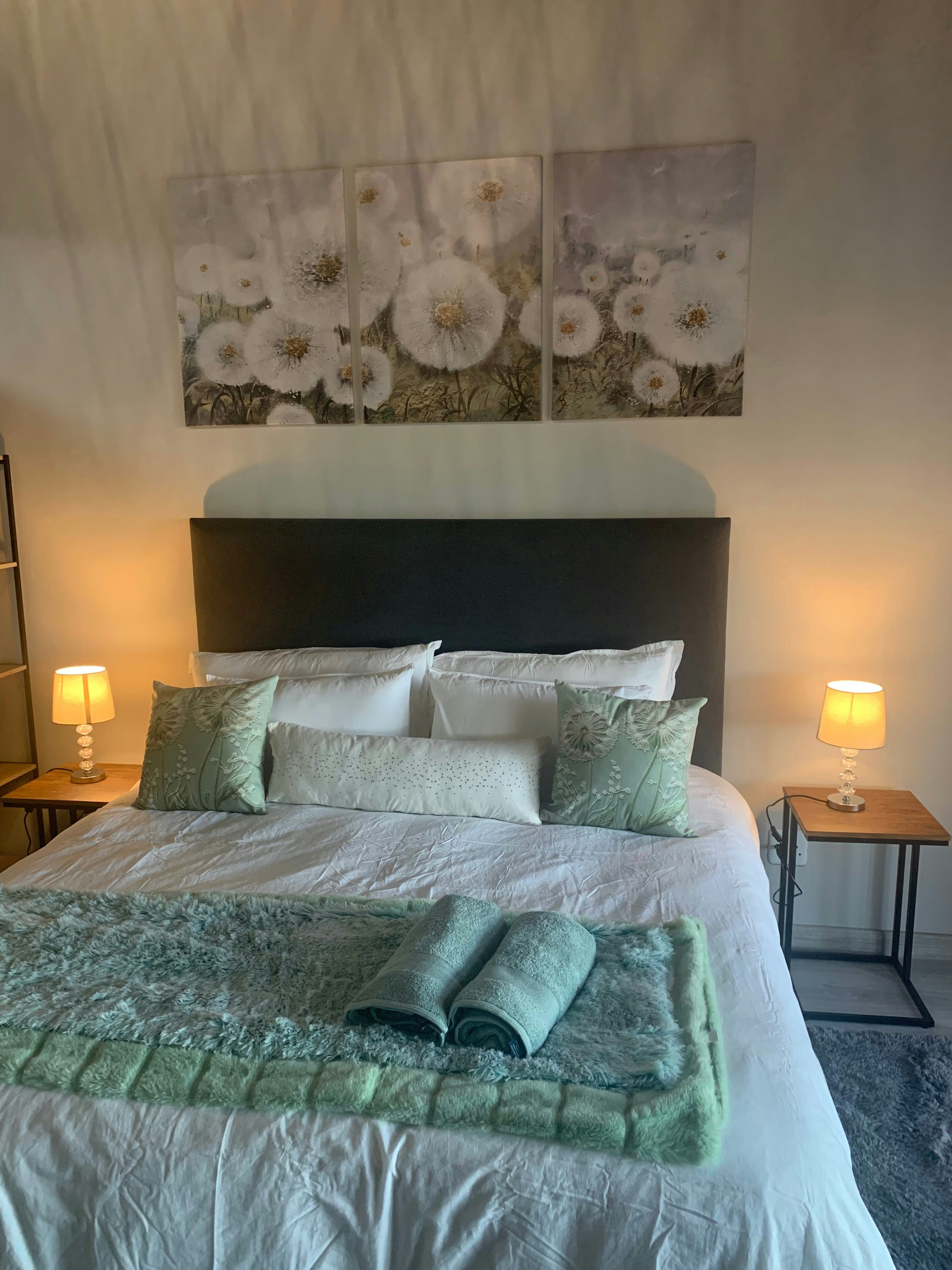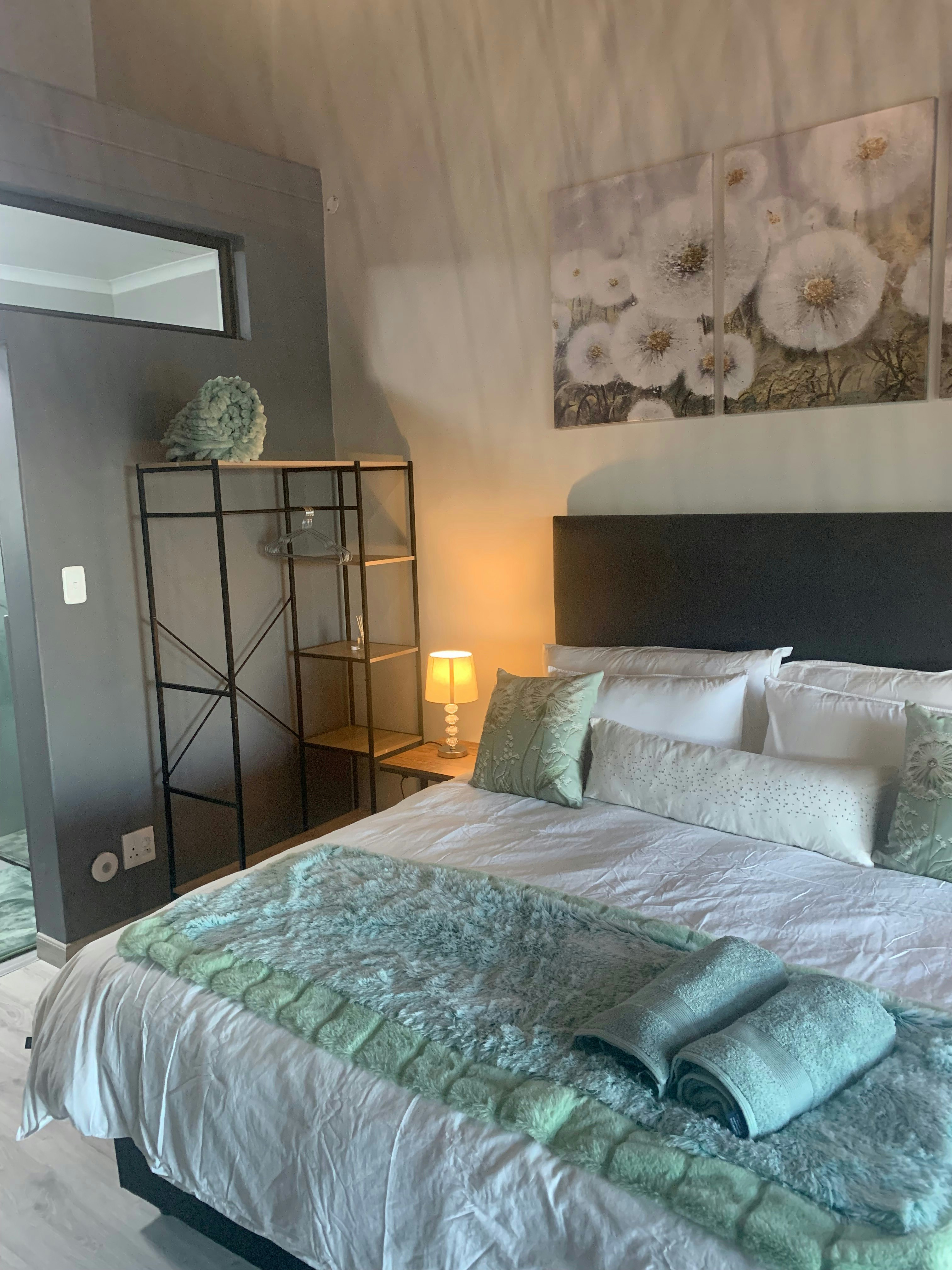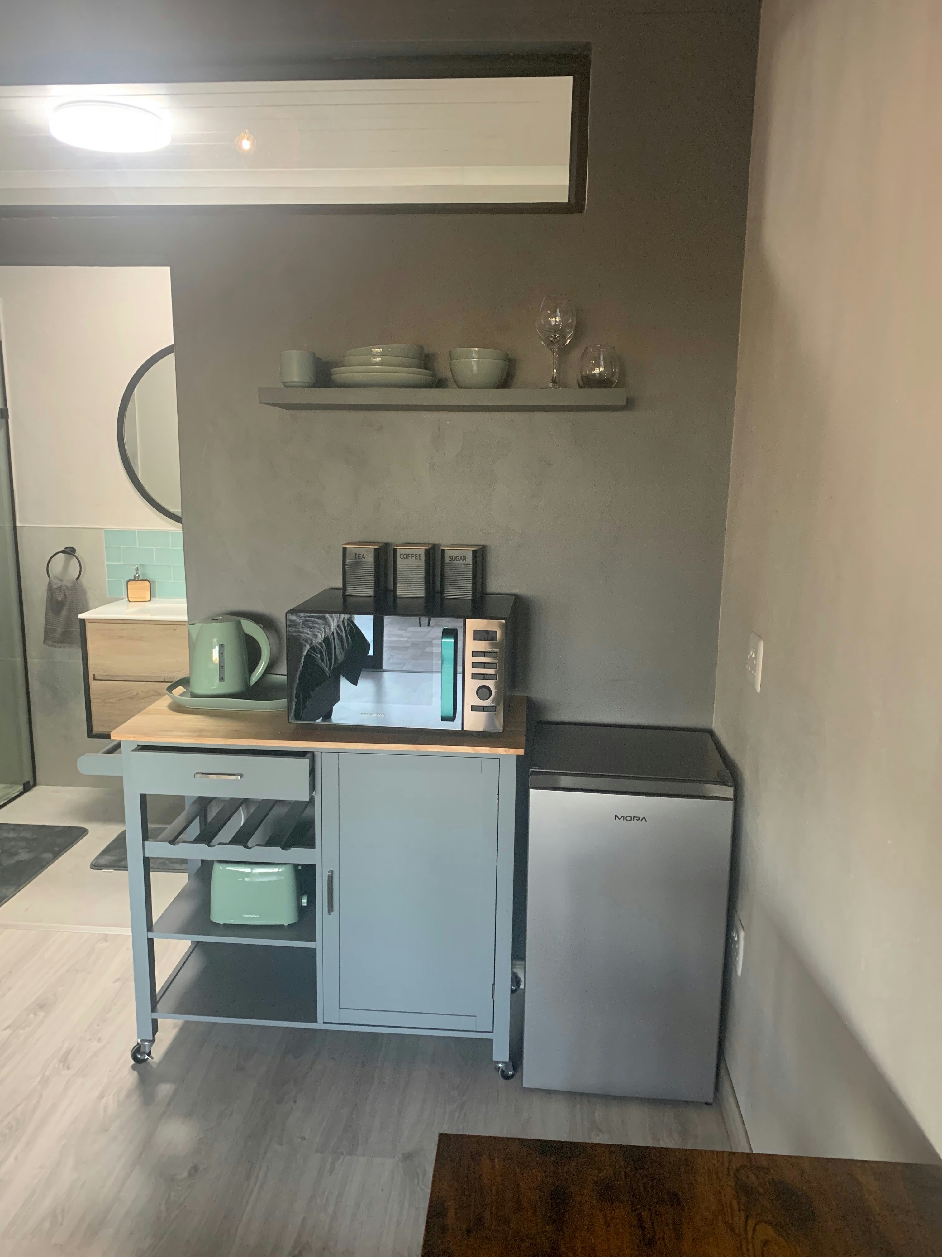 This unit can accommodate up to 2 guests and is furnished with a king-size bed and has an en-suite bathroom that is fitted with a shower, washbasin and toilet. Linen and bath towels are provided. The room also features a work desk and a TV with DStv and streaming services. The kitchenette is equipped with a bar fridge, microwave, toaster, necessary cutlery and crockery and tea- and coffee-making facilities. Access to Wi-Fi is available. Guests can enjoy an undercover patio with seating, a shared swimming pool, 2 braai areas and a lush garden. Secure parking is available on the premises.