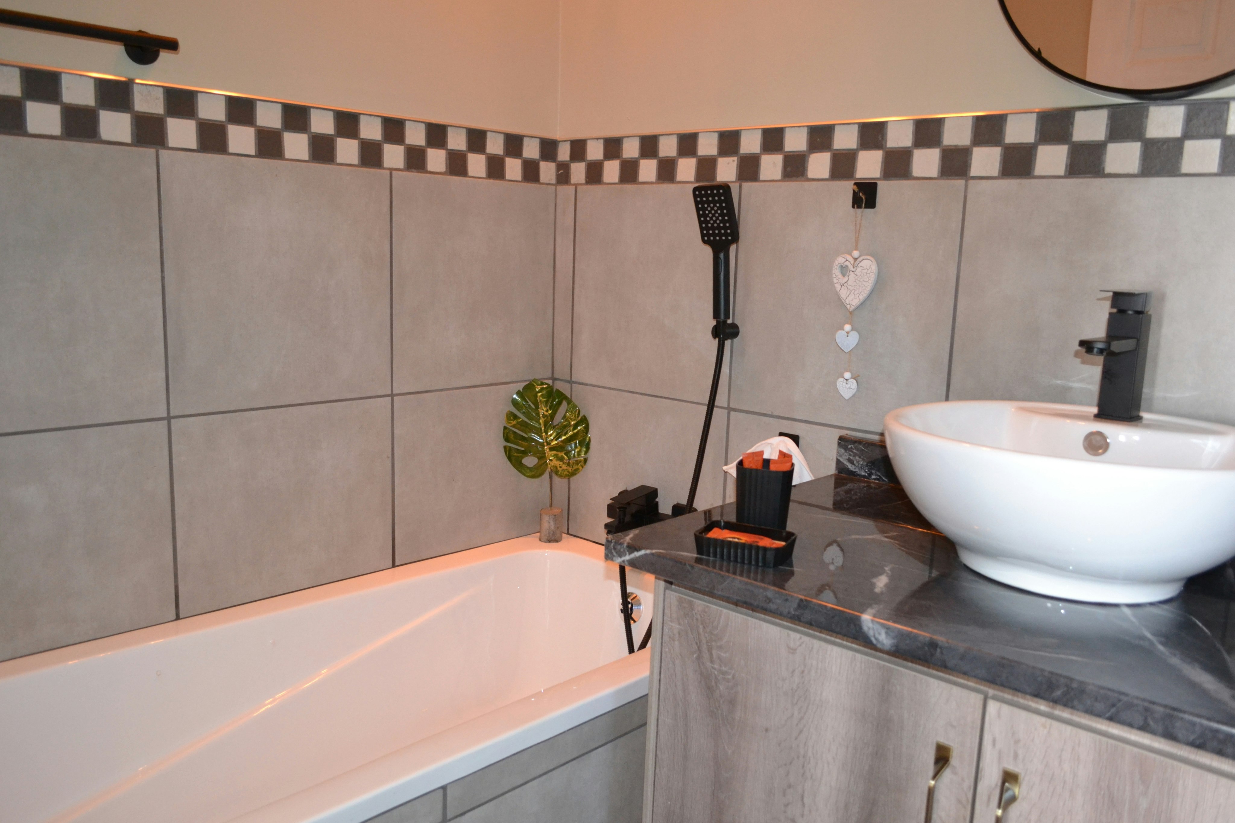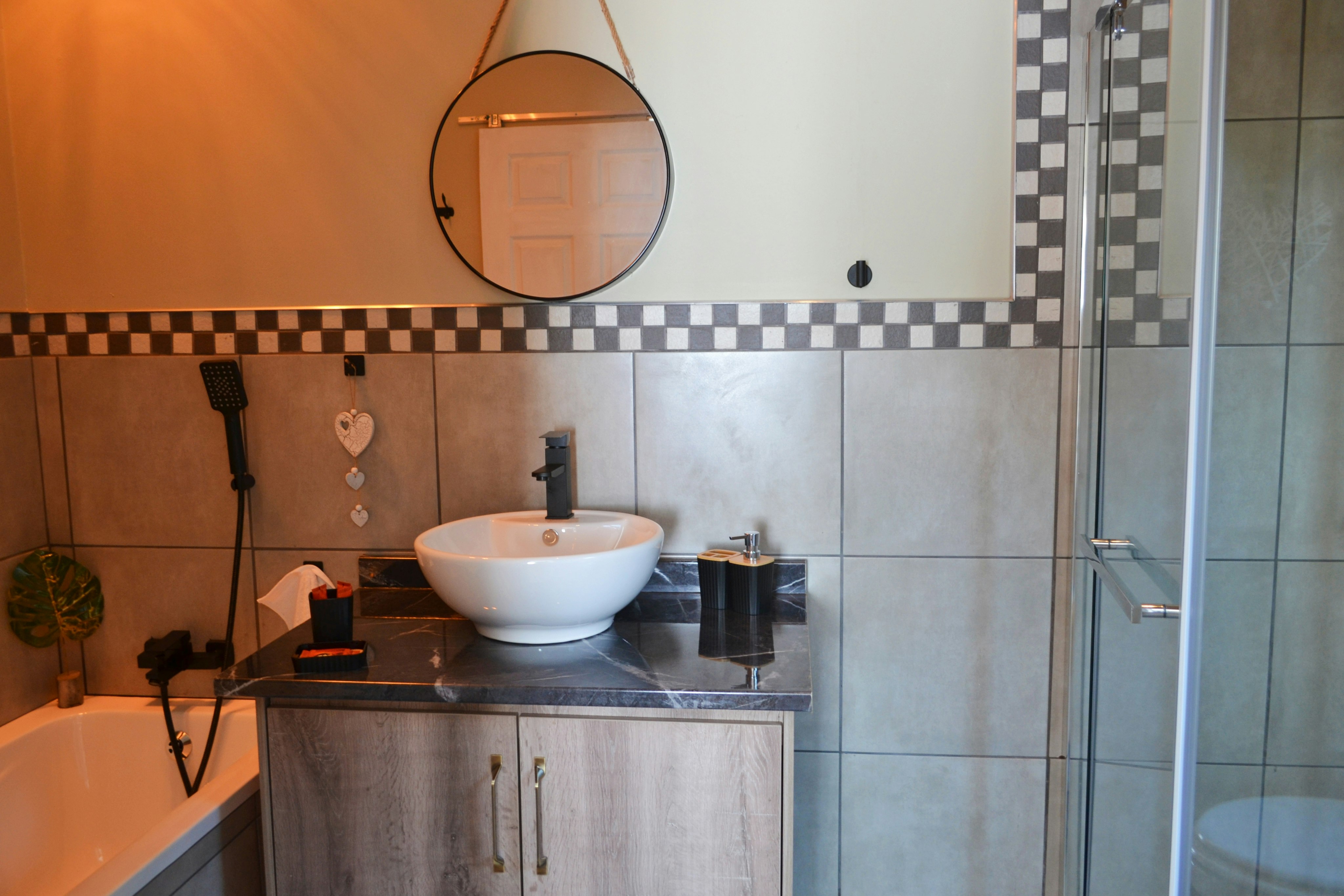 There is solar power, so guests will not be limited by load shedding. The furniture in both units is new, modern, and luxurious, with an eye for detail. There is also secure parking on the premises.