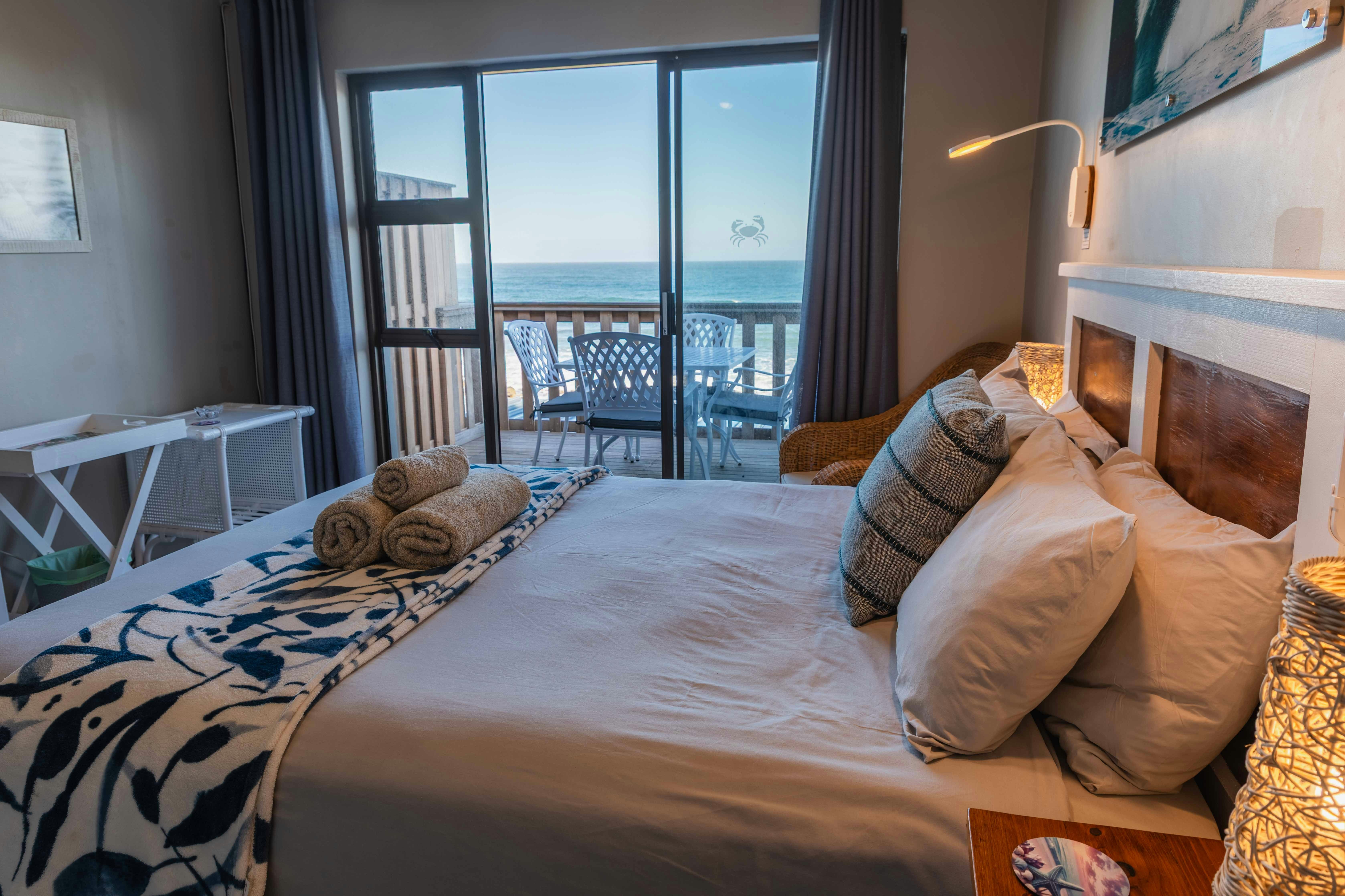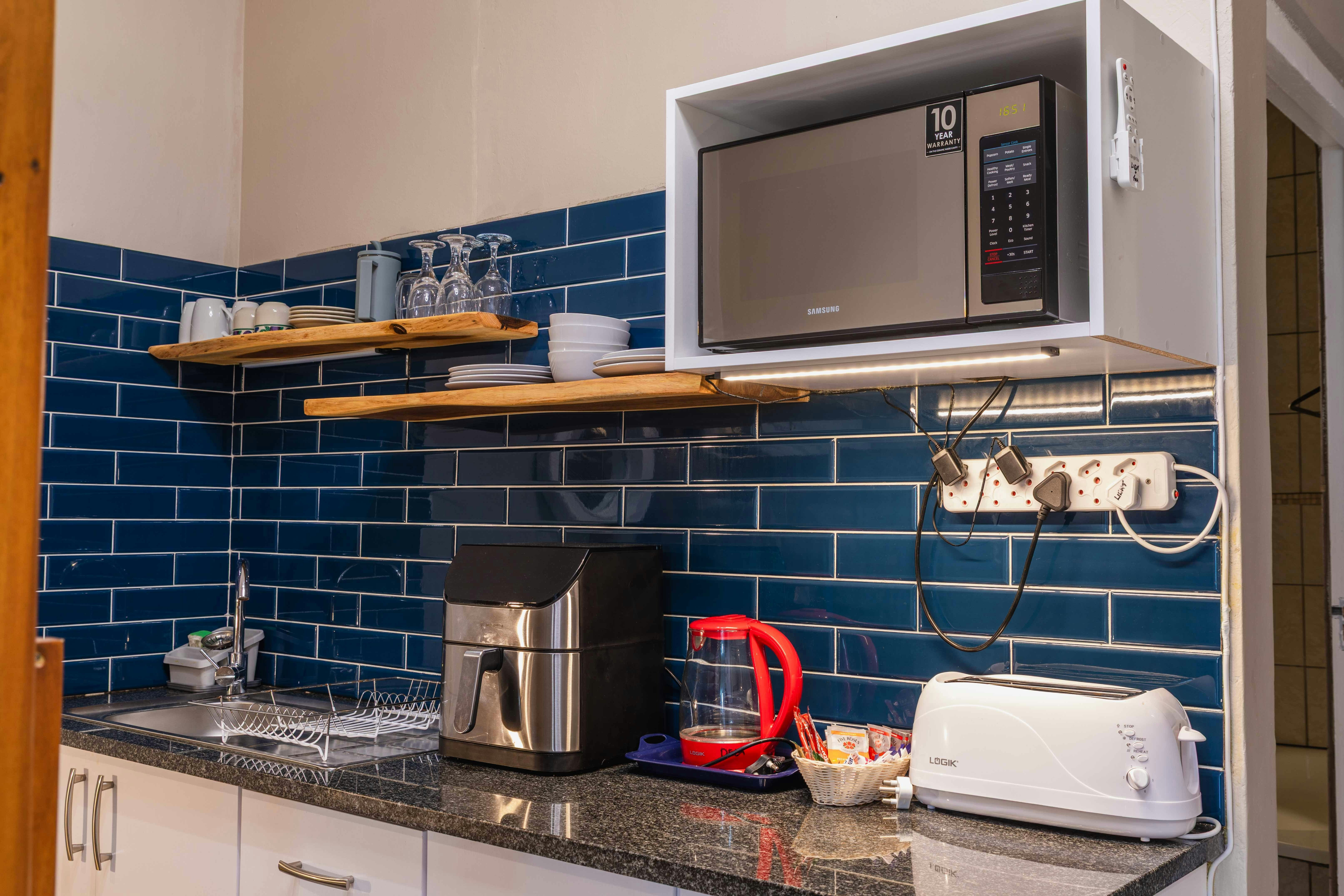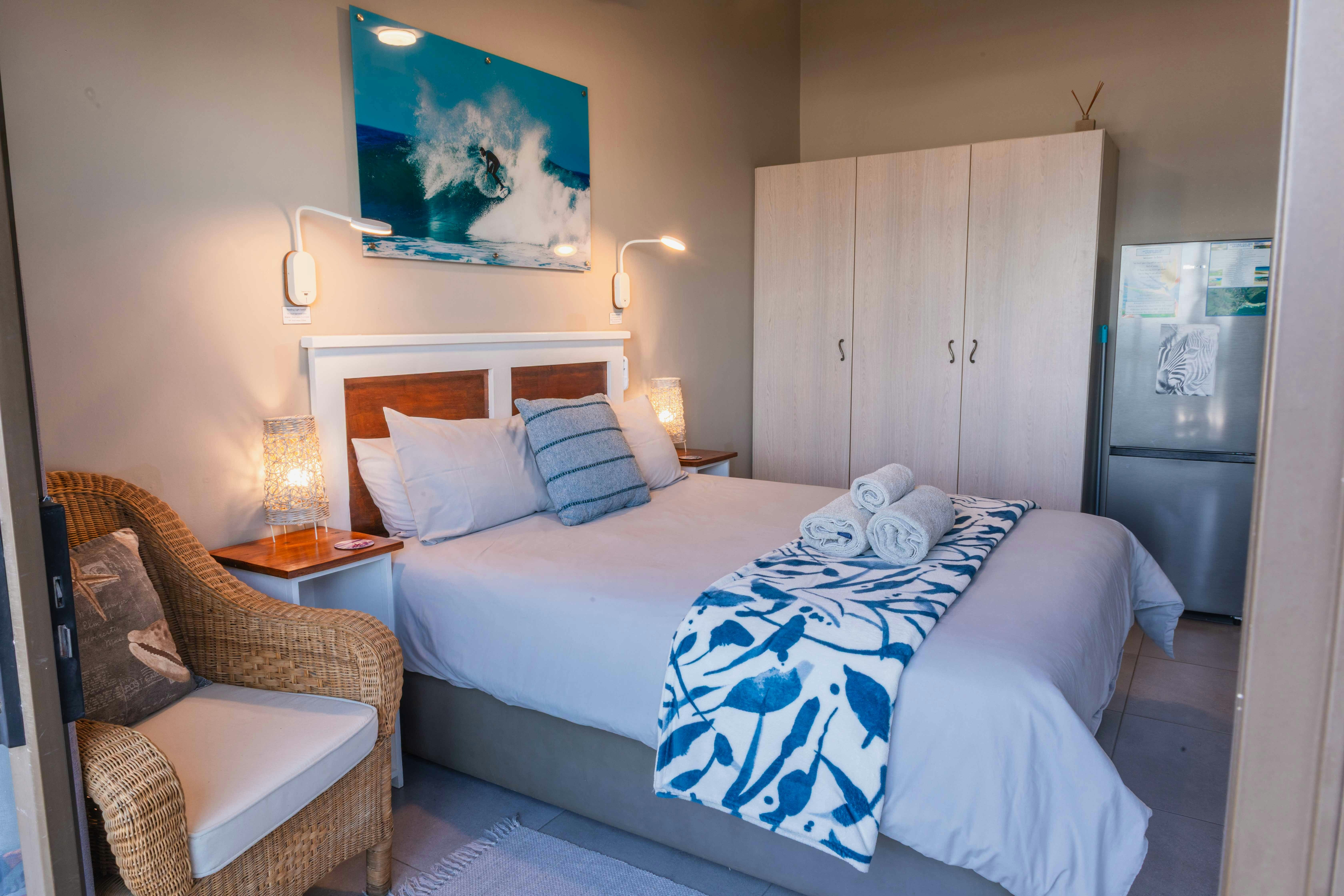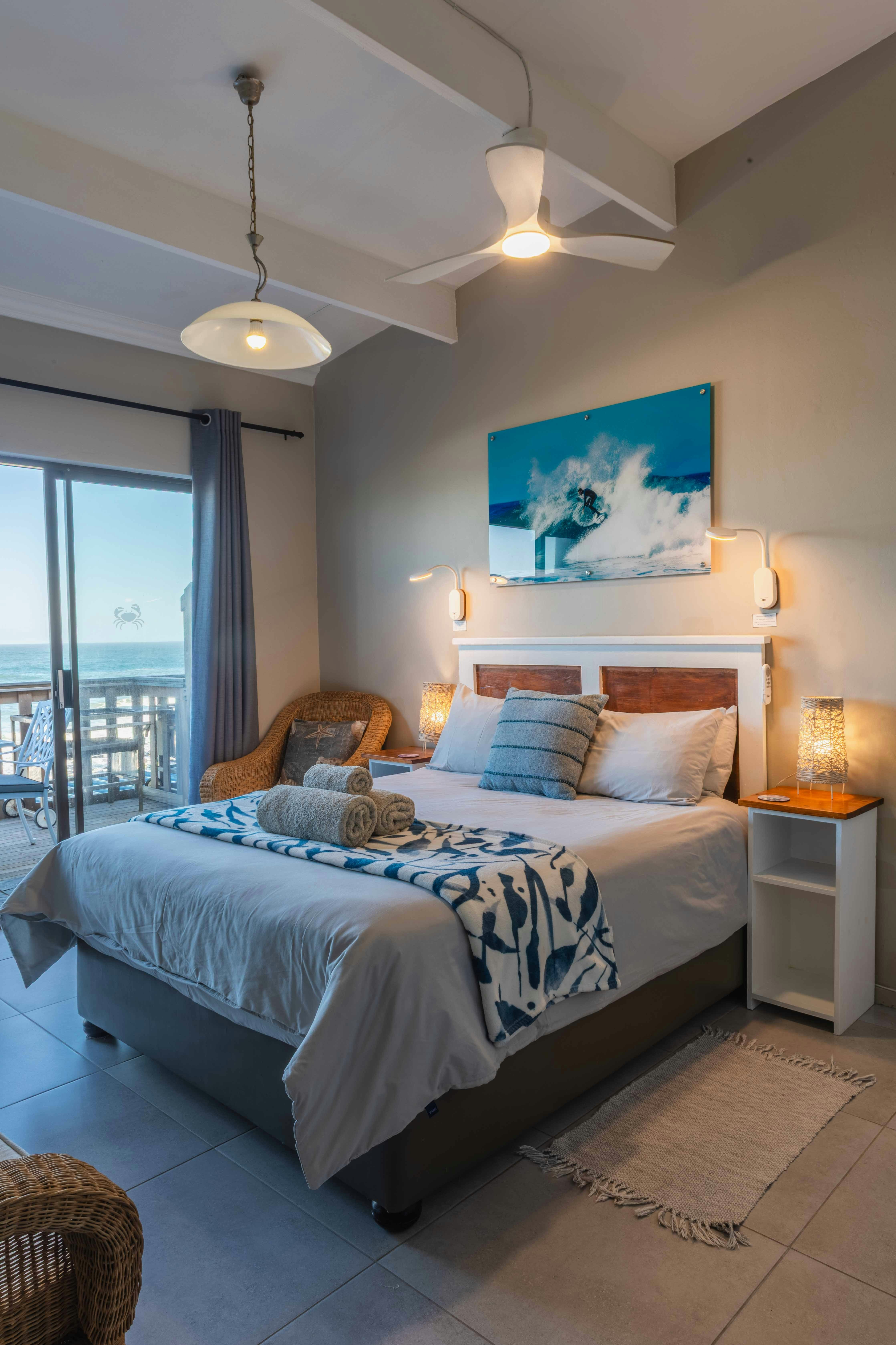 There are 2 comfy cane chairs and a TV with selected DStv channels in the bedroom. This unit also offers in-room facilities for tea and coffee, a microwave, air fryer, one-plate gas stove, refrigerator and a fan. Guests have access to a balcony that provides the perfect spot to relax and enjoy the sea breeze as well as a panoramic view of the Indian Ocean. There is a small charcoal braai on the balcony.
