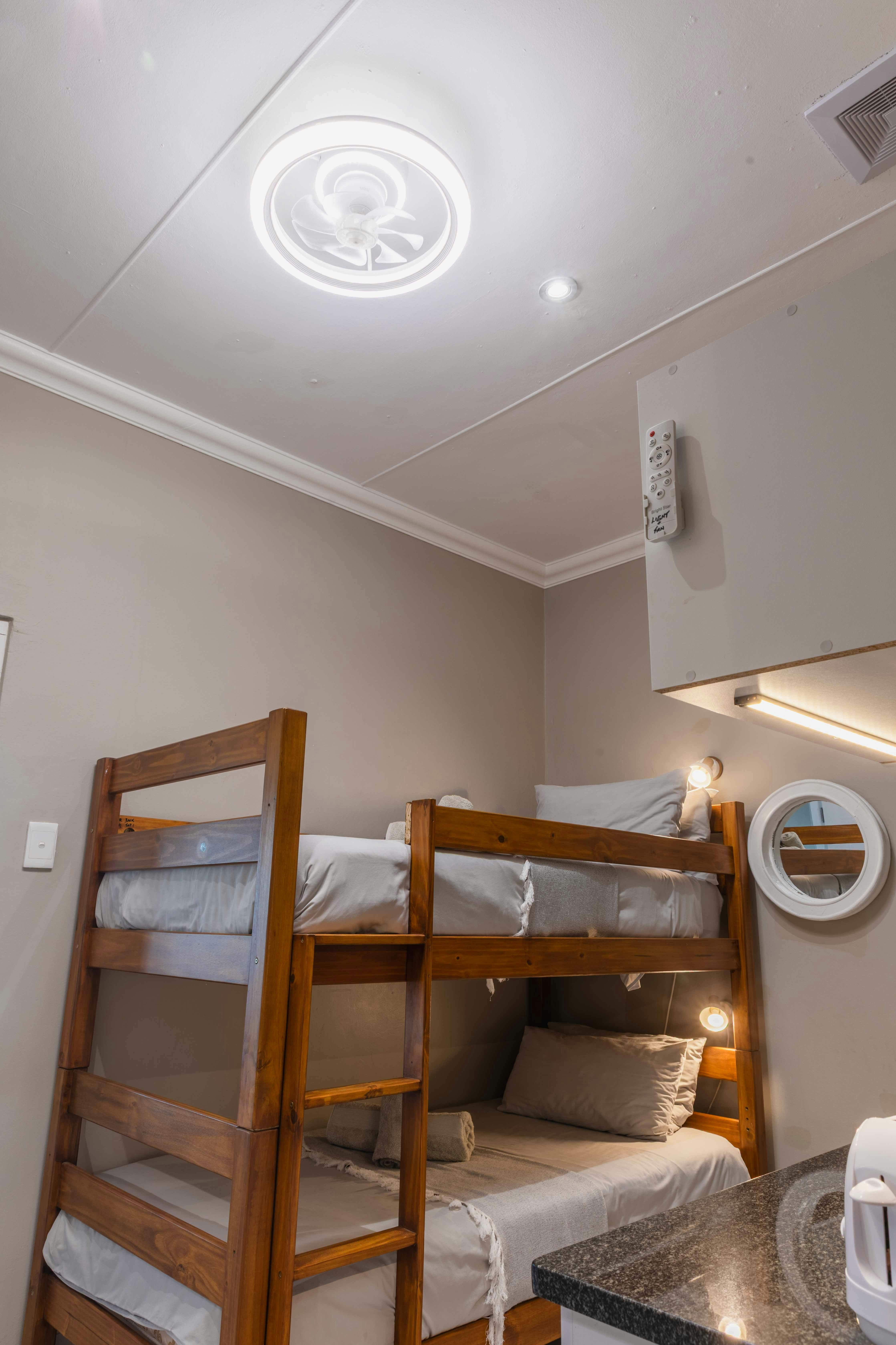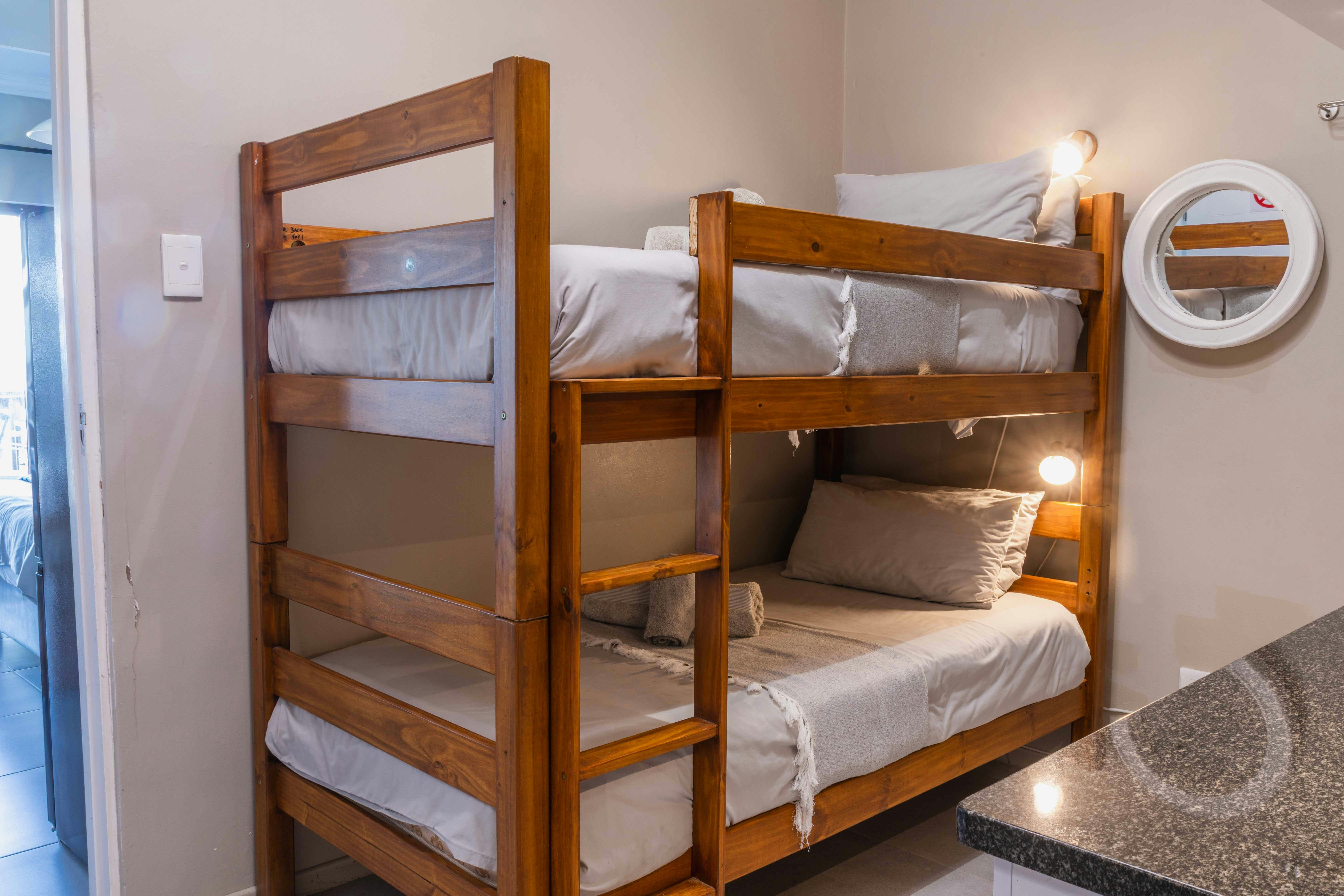 This apartment is a Family Room which accommodates 2 adults and 2 children under the age of 12 with one bedroom, and an adjoining alcove with a bunk bed and kitchenette. The main bedroom is furnished with a queen-size bed. The bathroom is fitted with a bath, shower, toilet and washbasin. Quality linen and bath towels are provided.
