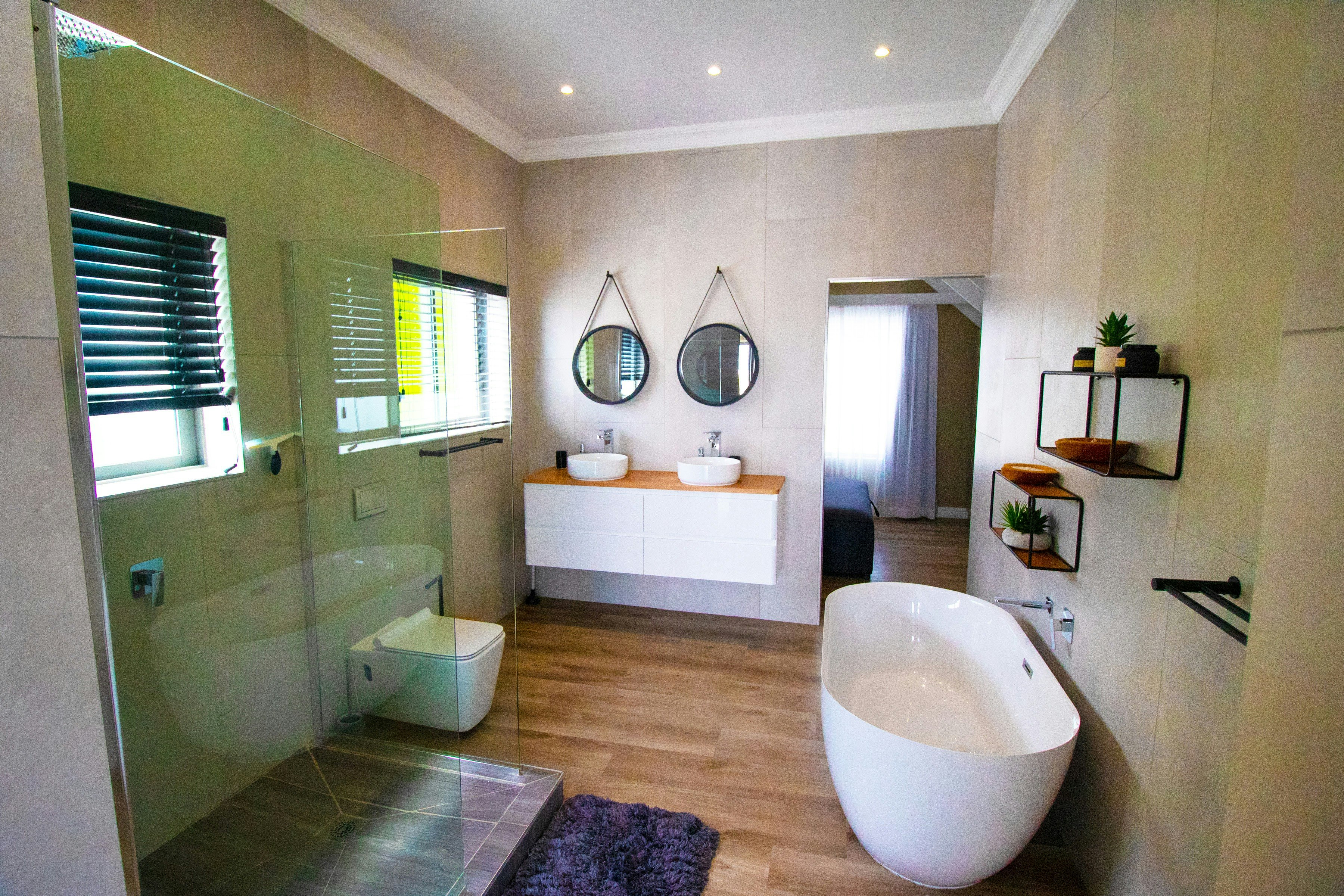 Die huis bestaan uit 3 en suite-slaapkamers bo. Die hoofslaapkamer is gemeubileer met 'n koningingrootte-bed, 'n inloopkas en 'n en suite-badkamer met 'n stort, bad, toilet en 'n dubbelwasbak. Die tweede en derde slaapkamer is gemeubileer met koningingrootte-beddens en 'n en suite-badkamer met 'n stort, toilet en wasbak. Daar is 'n aparte toilet onder.