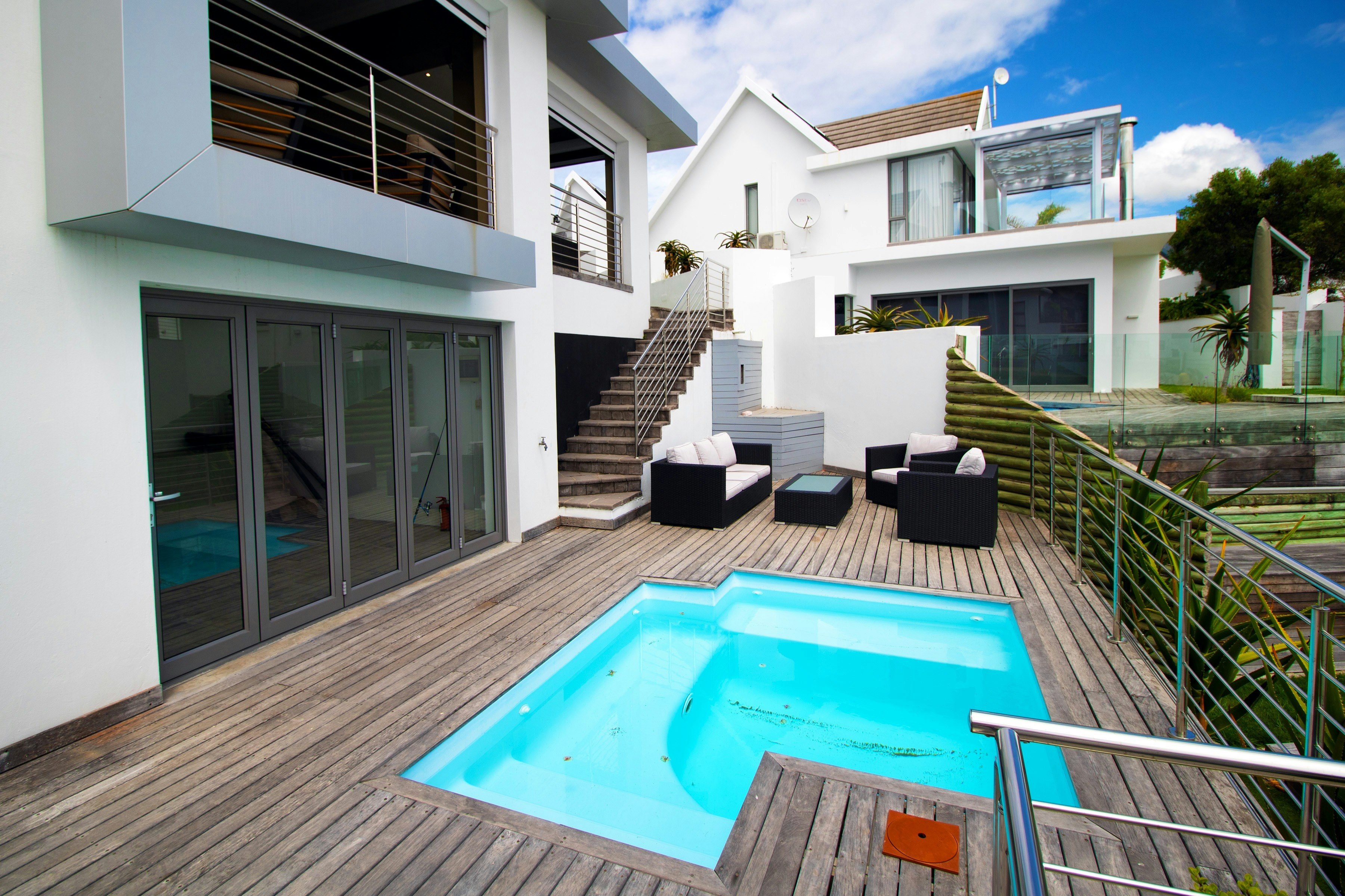 Die derde verdieping bied 'n dek met 'n swembad, buitemeubels met trappe wat na die jetty lei.