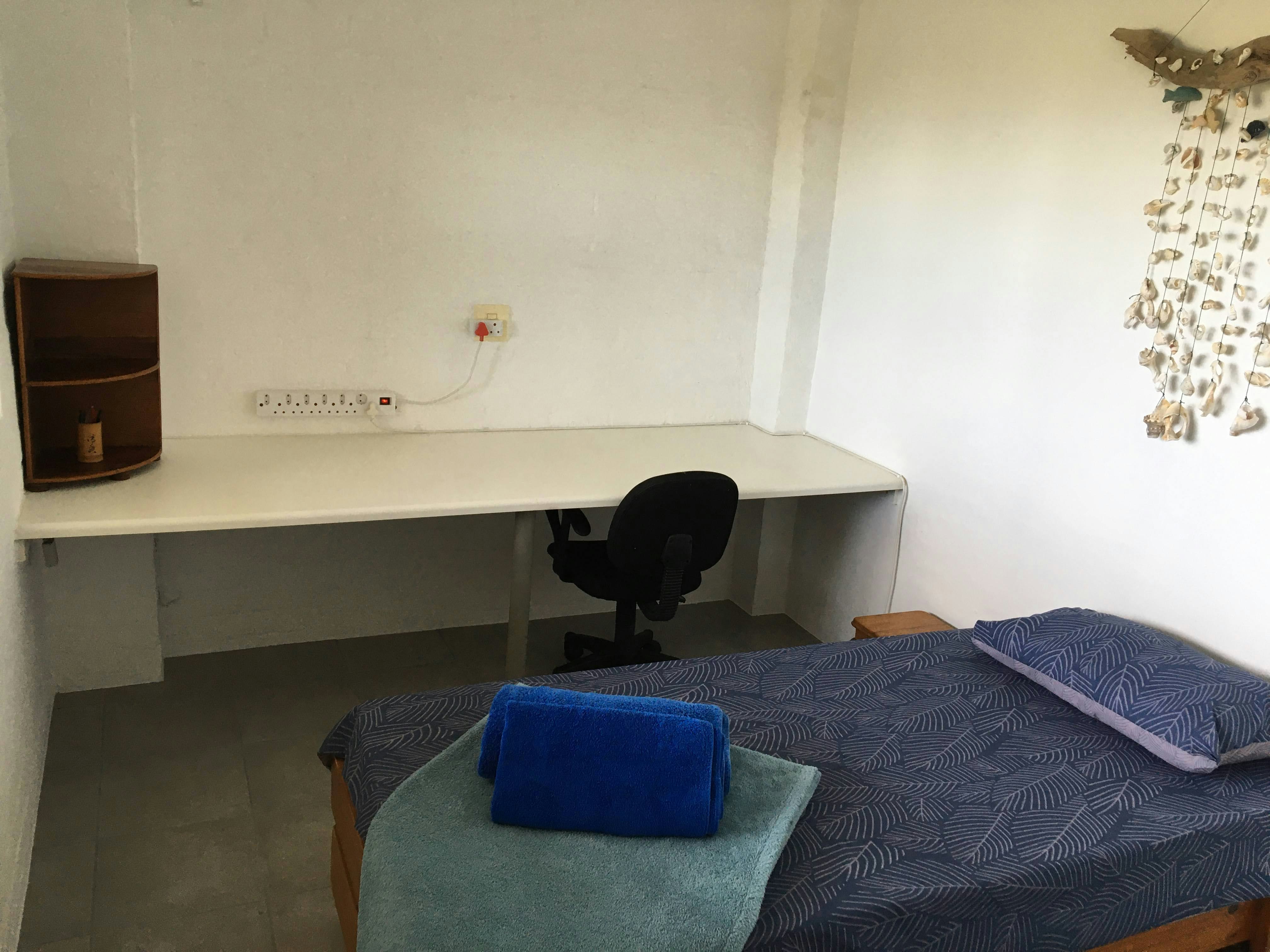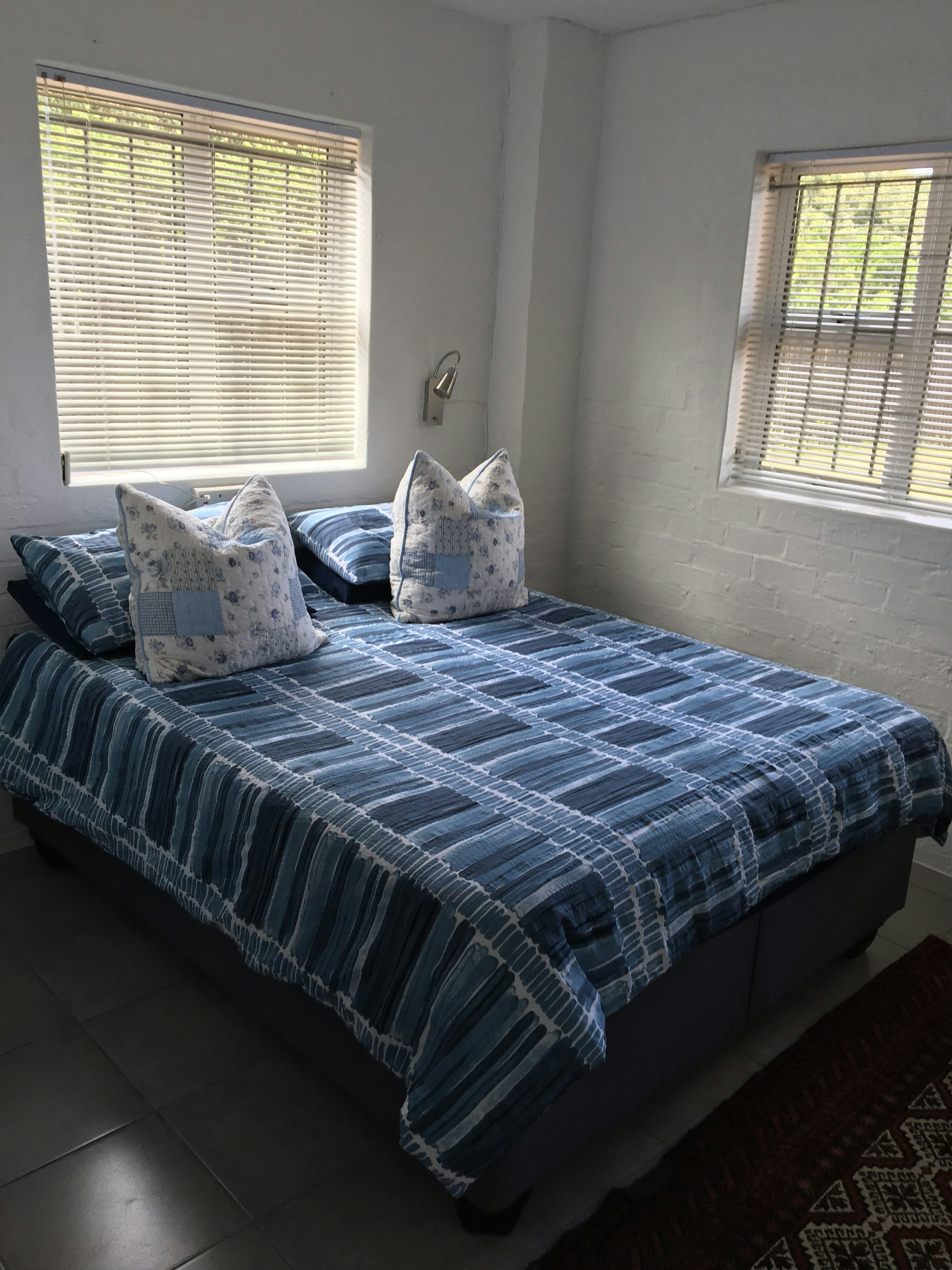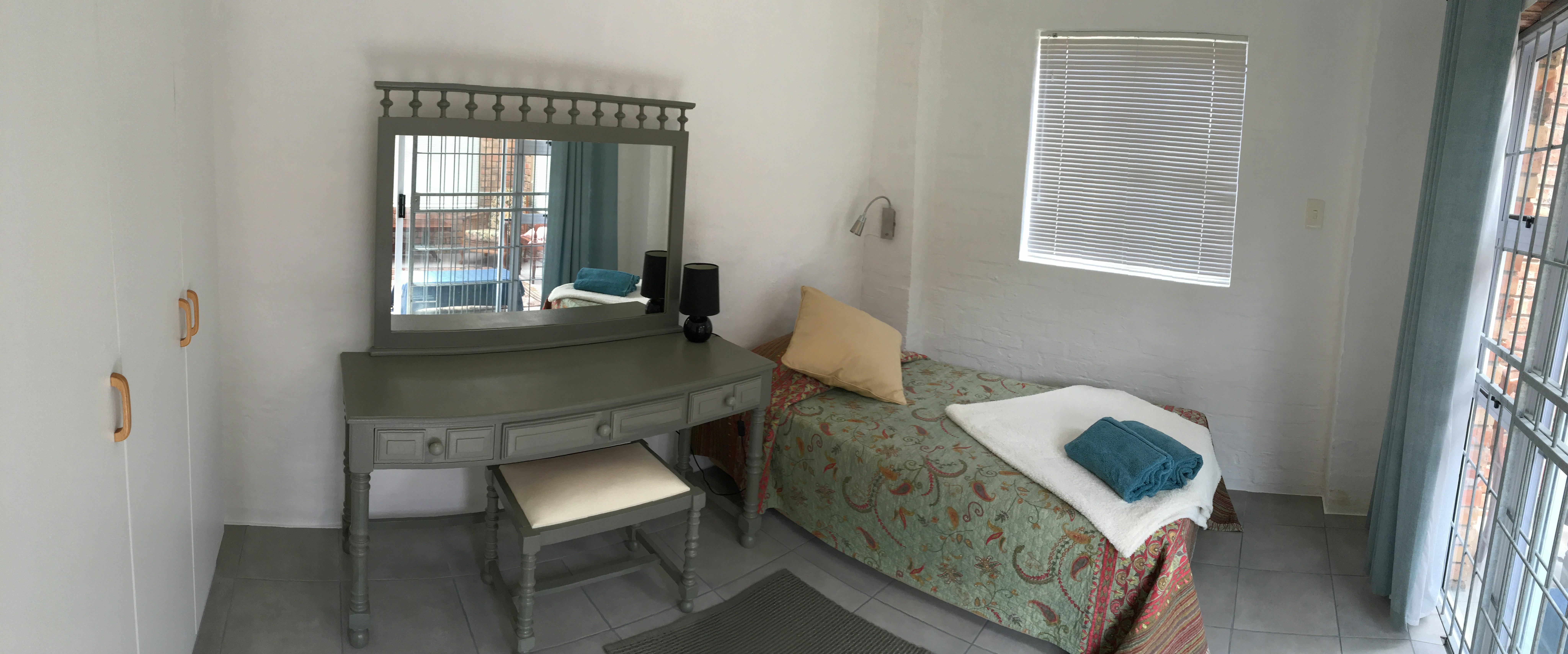 This apartment can accommodate 4 guests and comprises 3 bedrooms, a bathroom, a separate toilet and a kitchen and living area. The main bedroom is furnished with a queen-size bed and has a shared en-suite bathroom fitted with a shower-over-bath, basin, and toilet. There's also a separate toilet. All linen and towels are provided. The second bedroom has a single bed and a working desk for guests who wish to get their studies done or have work to catch up on. The third bedroom is furnished with ¾ bed and boasts an entrance to the lovely sunroom.