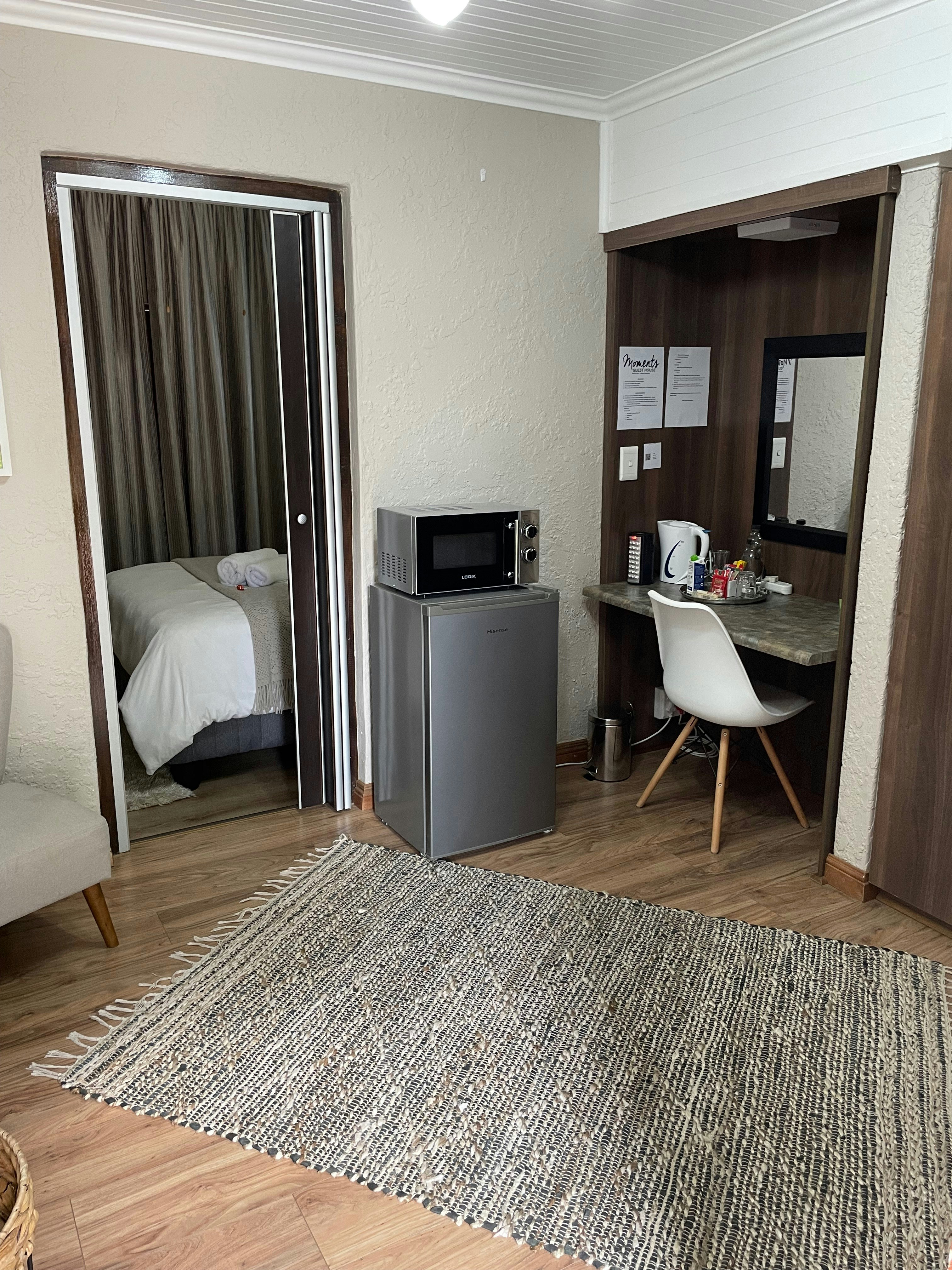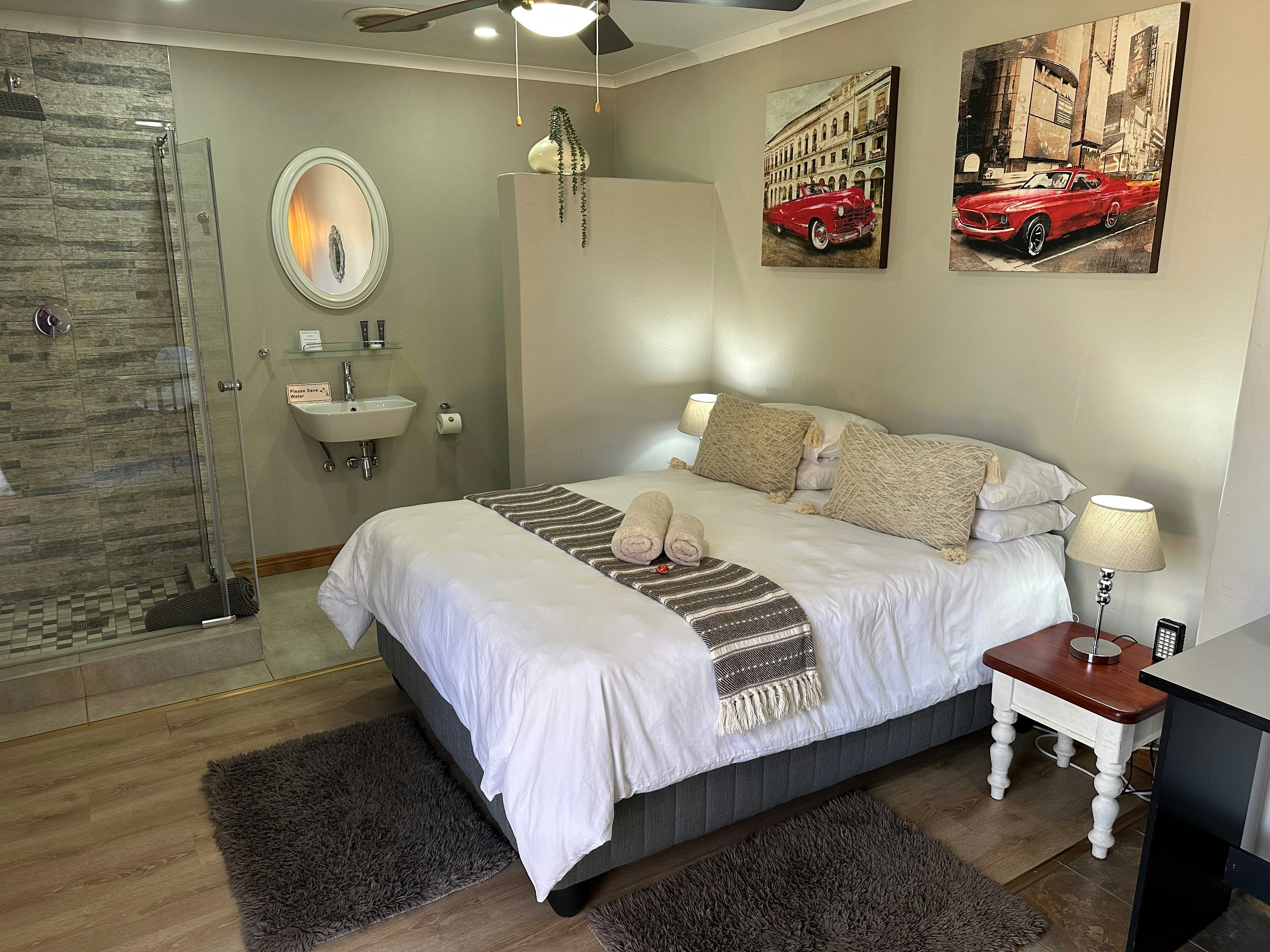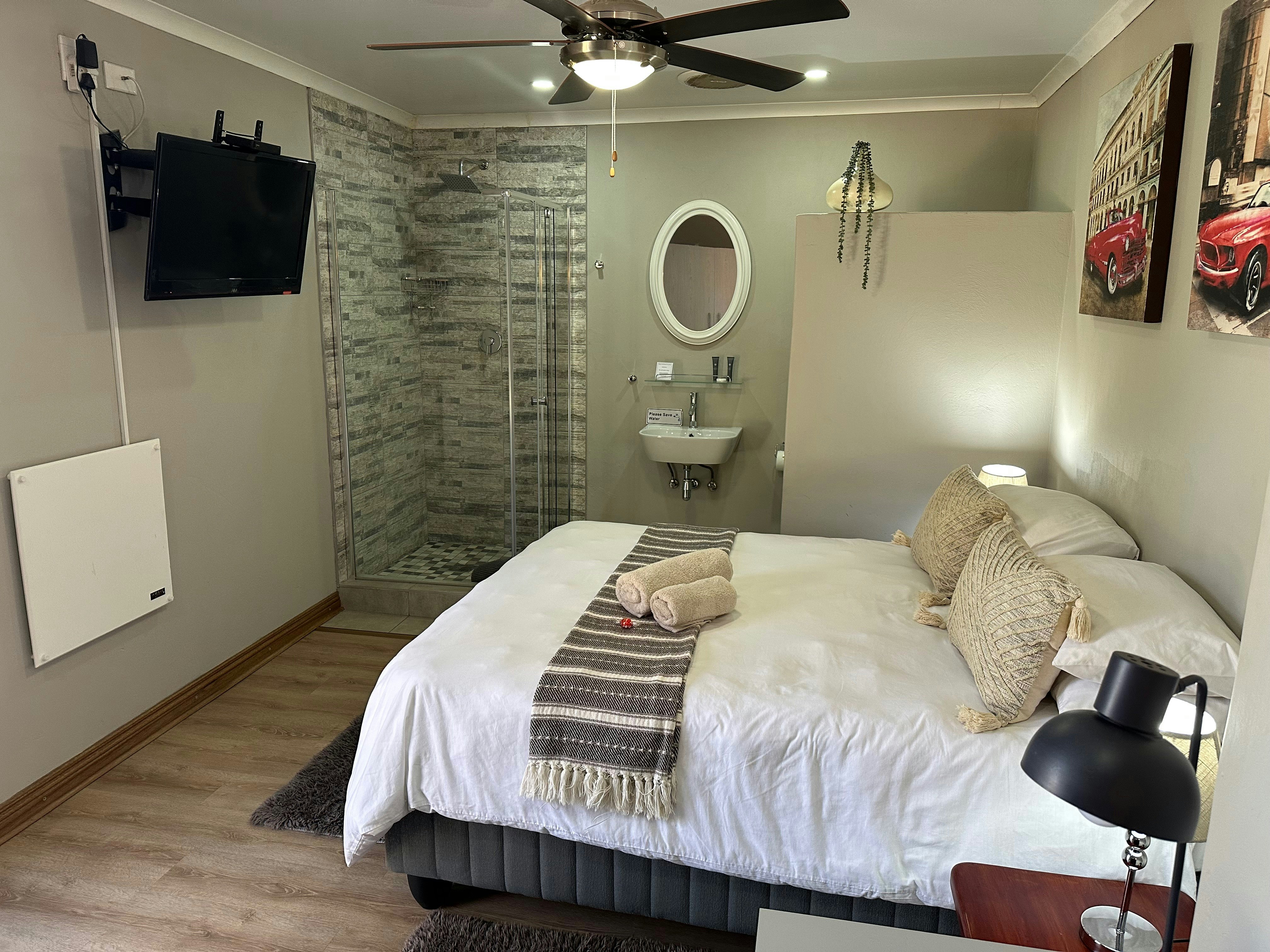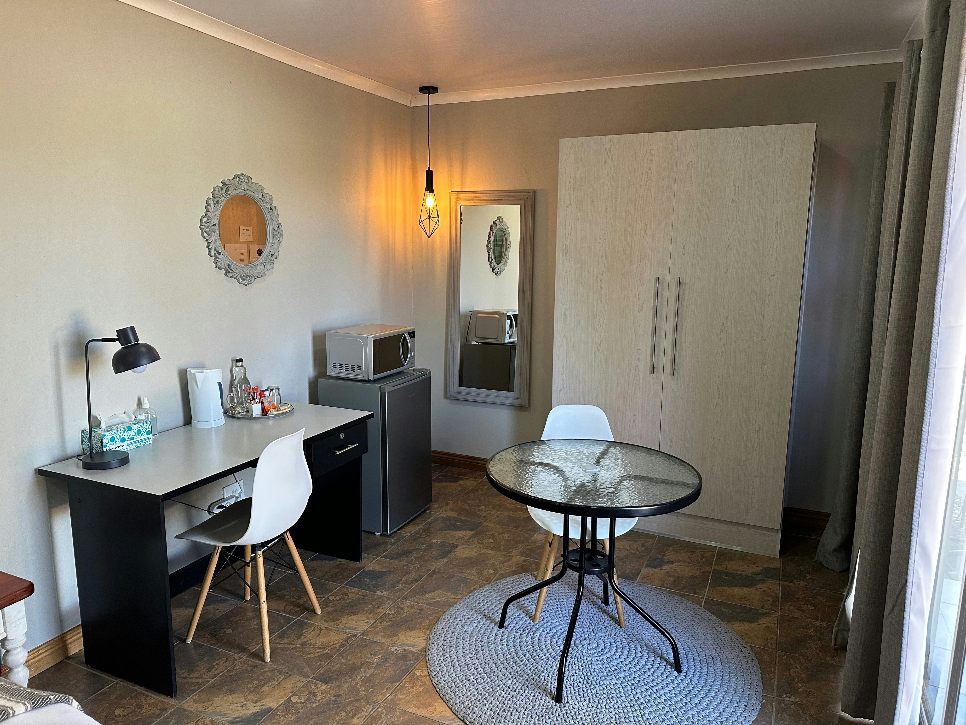 The guest house comprises 5 bedrooms to choose from. Each room can comfortably accommodate 2 guests at a time and has a private bathroom fitted with either a bath, a shower or both, a toilet and a basin. The rooms also feature a TV with DStv channels, coffee- and tea-making facilities, air-conditioning, a fridge and a microwave.