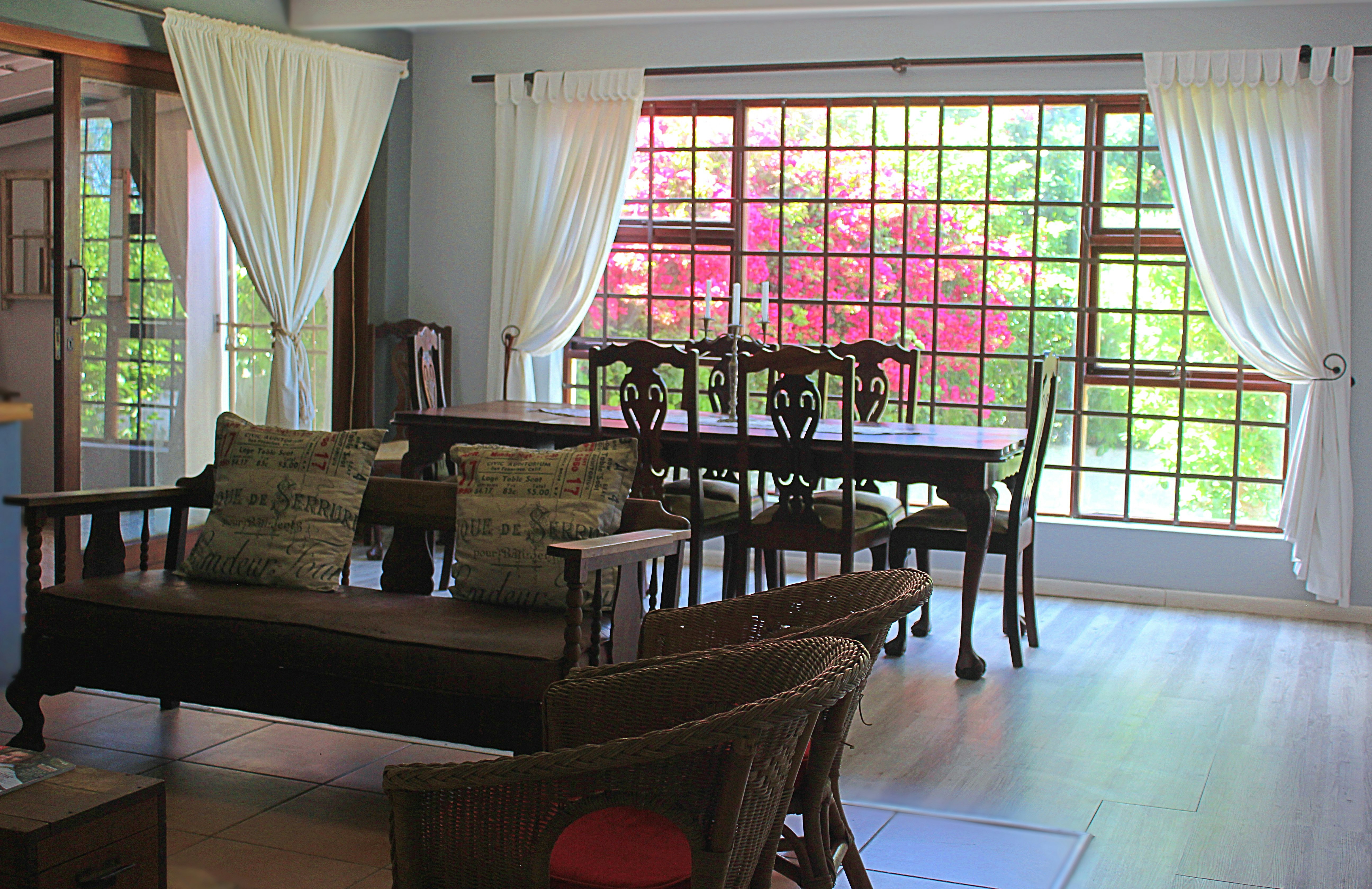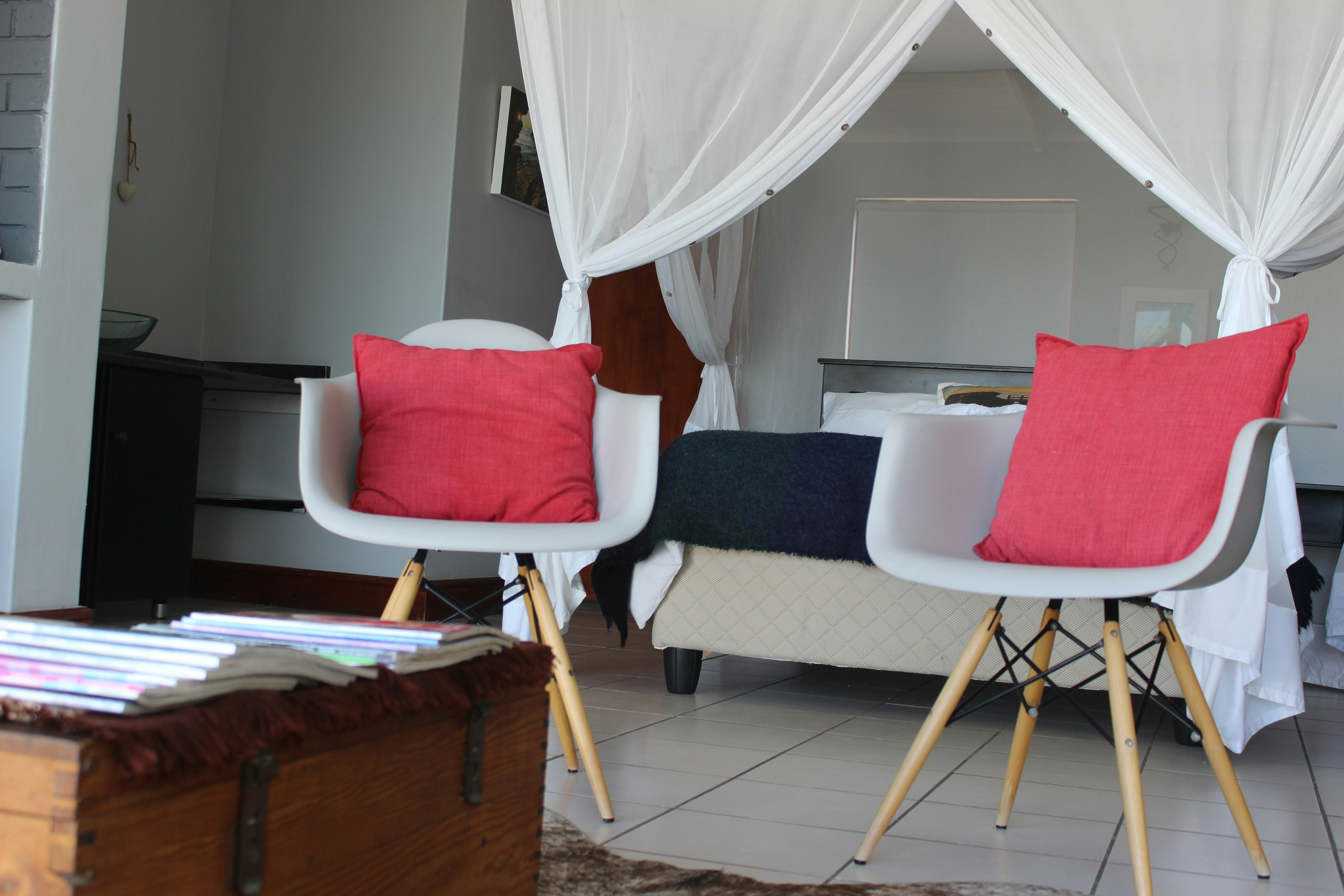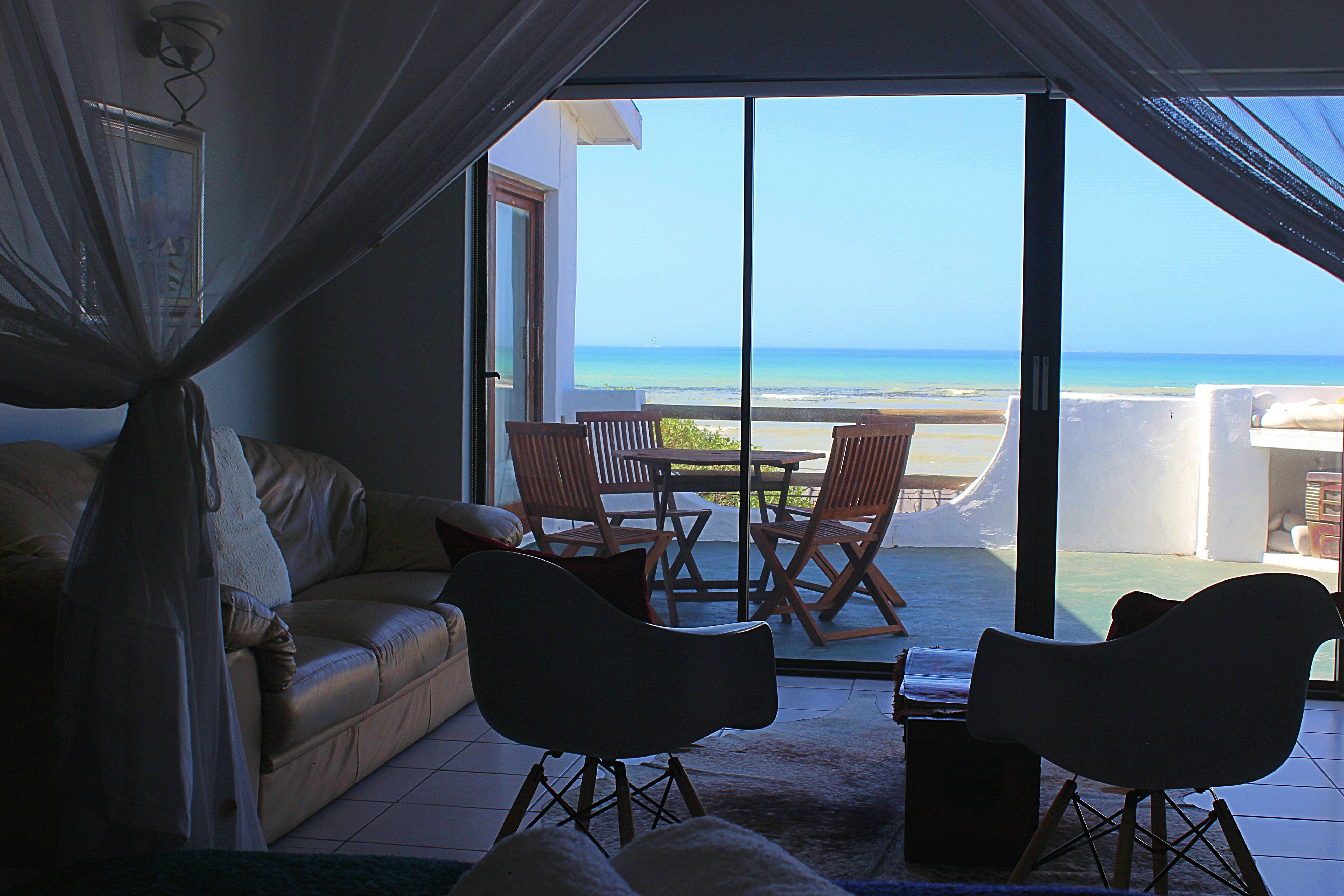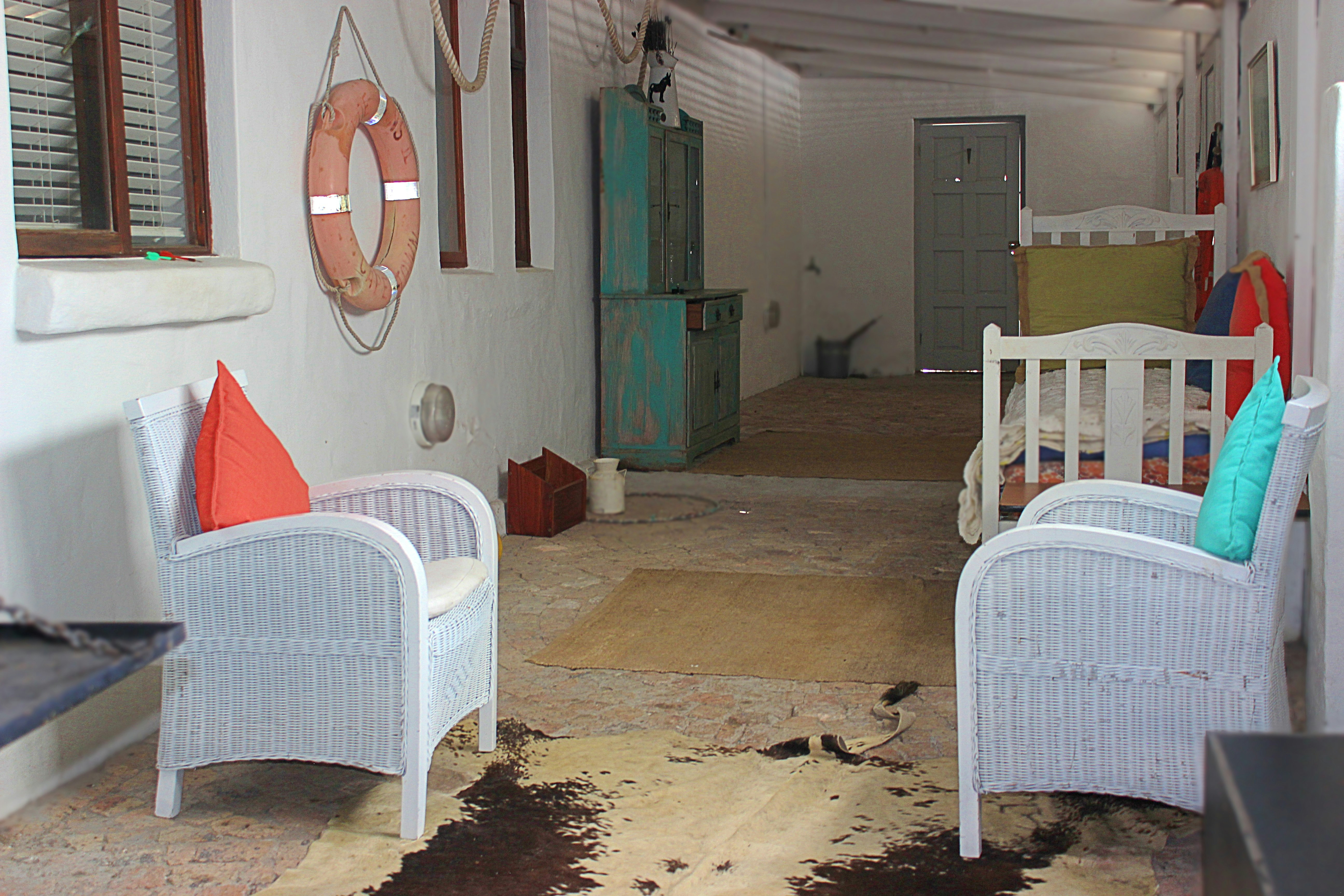 Die leefarea lei na 'n stoep wat met 'n uitsig oor die see en op die berge in die agtergrond spog. Gaste kan buite op die stoep eet, of bloot sit en die son geniet. Veilige parkeerplek is beskikbaar.