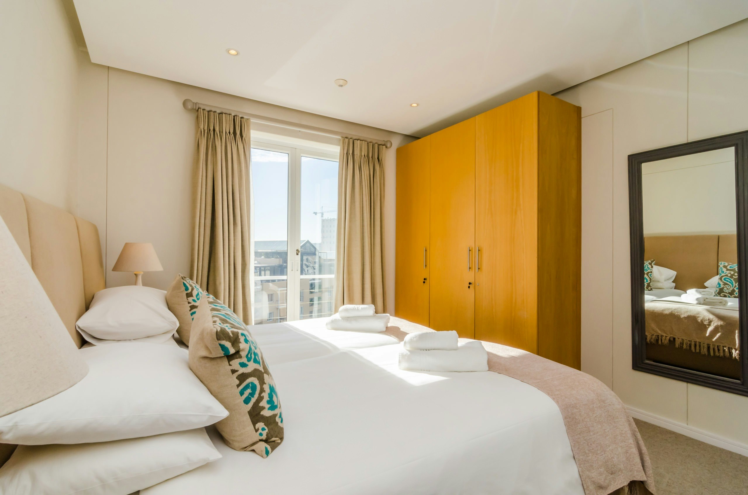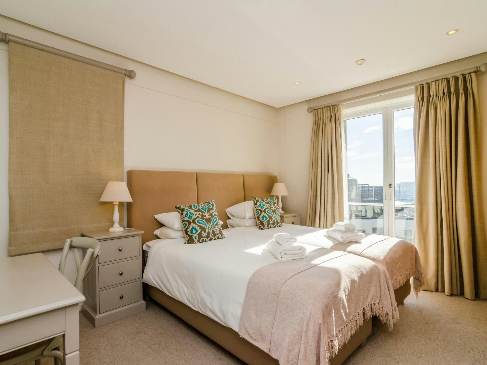 Die woonstel bestaan uit 3 slaapkamers en 2 badkamers, en bied slaapplek aan 6 gaste. Die hoofslaapkamer het 'n koninggrootte-bed en 'n en suite-badkamer met 'n stort, bad, toilet en wasbak. Die tweede slaapkamer het 'n koningingrootte-bed, en die derde slaapkamer het 2 enkelbeddens. Gaste in hierdie slaapkamers deel 'n badkamer met 'n stort, toilet en wasbak.