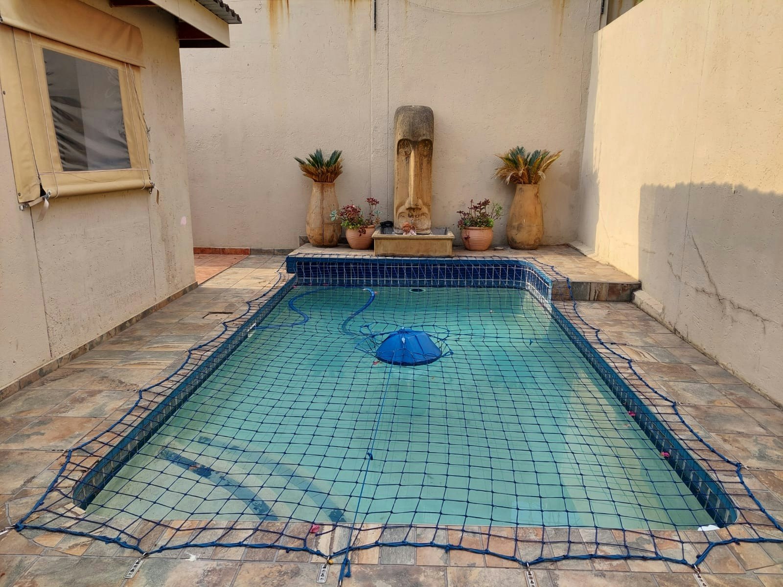 Die kombuis is volledig toegerus met 'n stoof, oond, mikrogolfoond, lugbraaier en yskas, wat alles bied wat nodig is vir 'n gerieflike en aangename kookervaring. Die leefarea het 'n gemaklike sitkamerstel, en vir vermaak word 'n slim-TV met WiFi voorsien. Gaste het ook toegang tot 'n wasmasjien en kan ontspan in die privaat tuin, die swembad of op die buitepatio geniet. Die eiendom is beveilig met komplekse sekuriteit by die hek en afstandbeheerde toegang vir ekstra gemoedsrus.