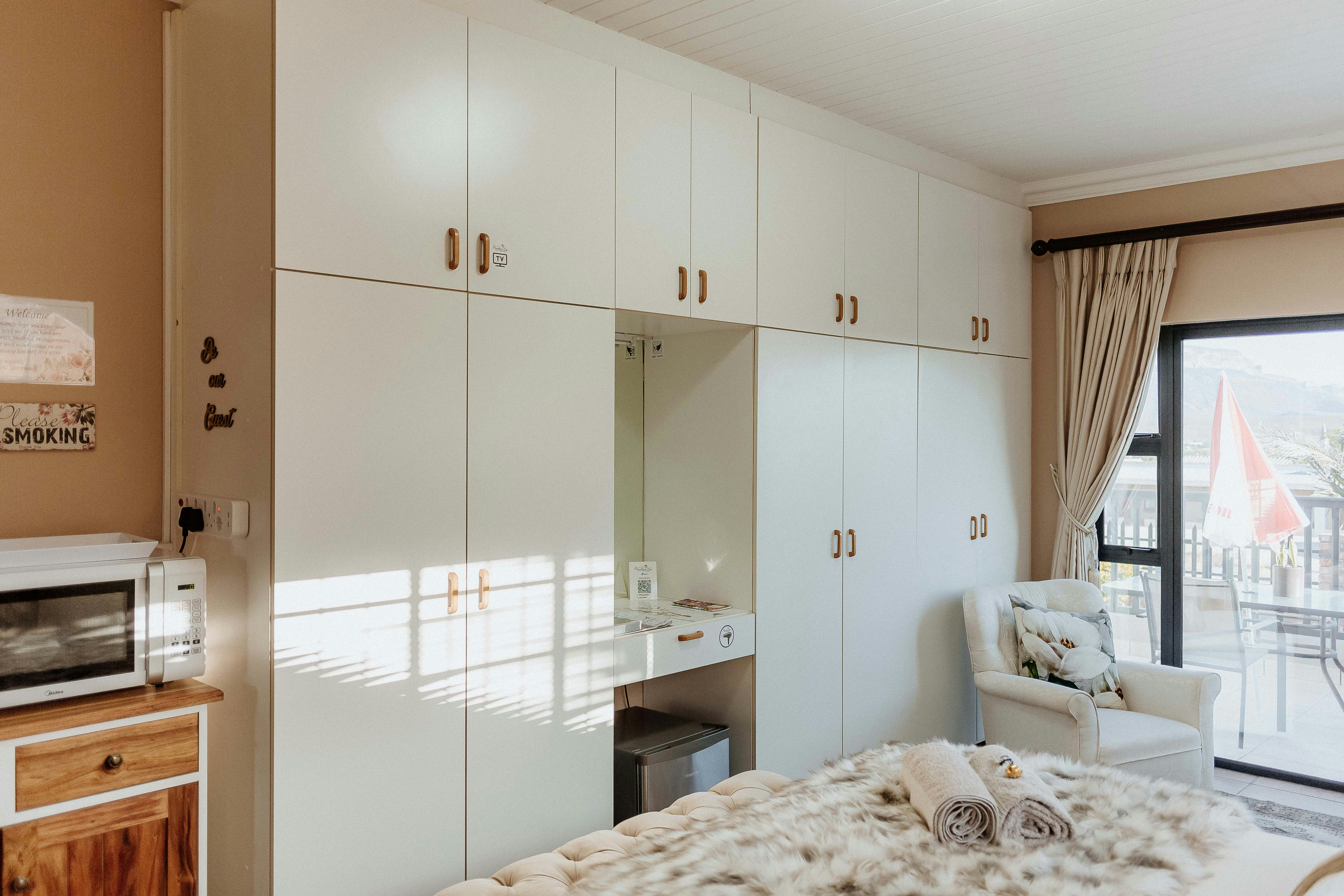 Our Mountain View Lux Suite accommodates 2 guests, this luxurious unit has a private entrance and a patio and is furnished with a queen-size bed. The en-suite bathroom is fitted with a shower and a toilet, and for convenience, linen and bath towels are provided in all units. The kitchenette is equipped with a bar fridge, a microwave, as well as tea- and coffee-making facilities.