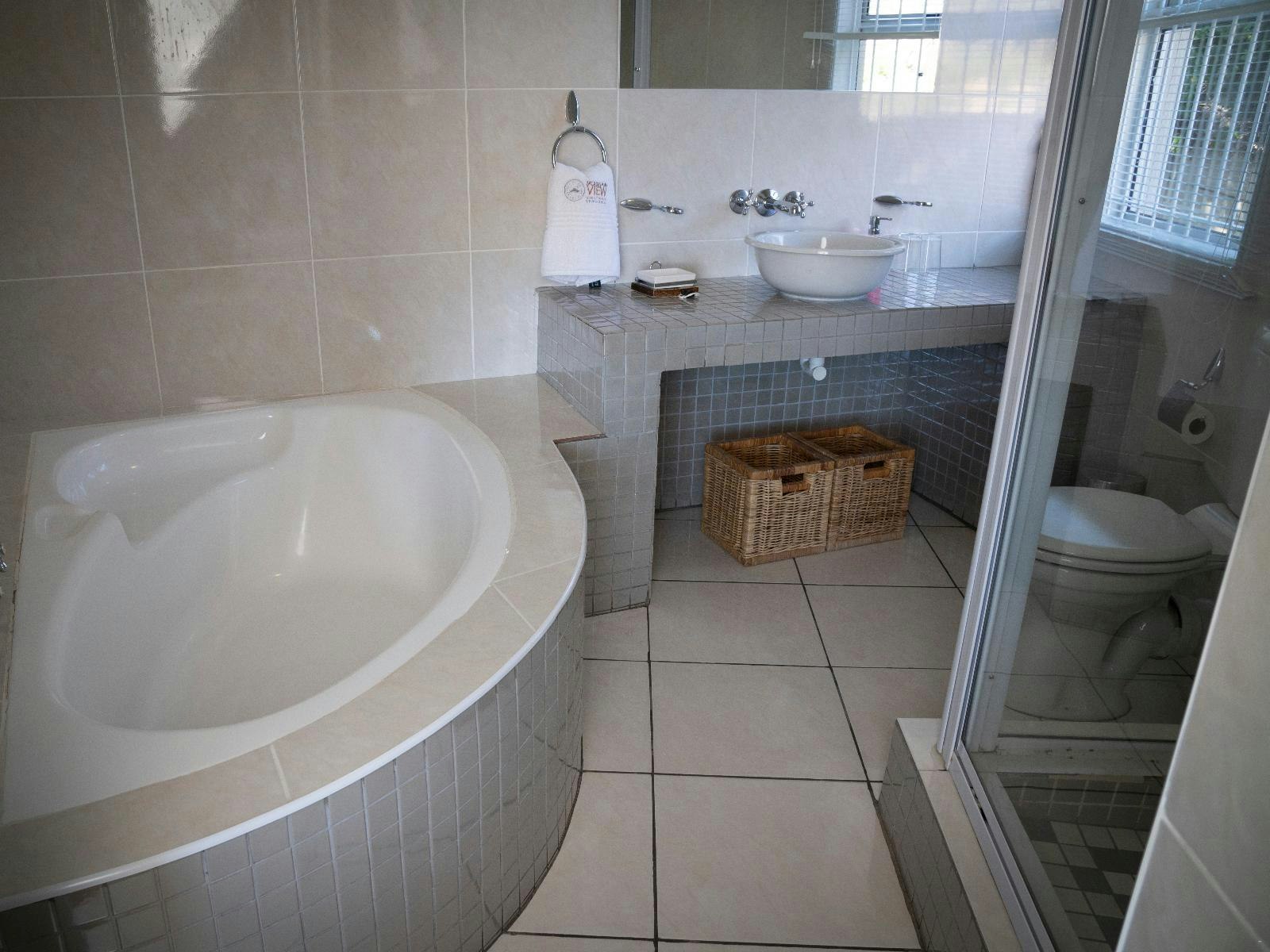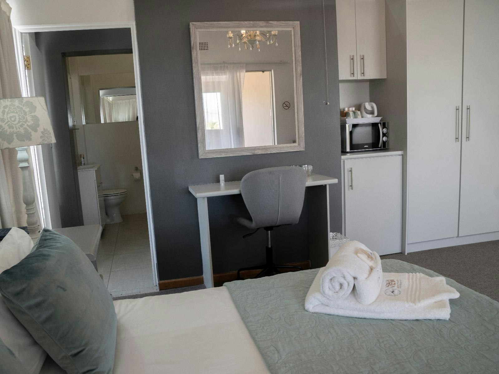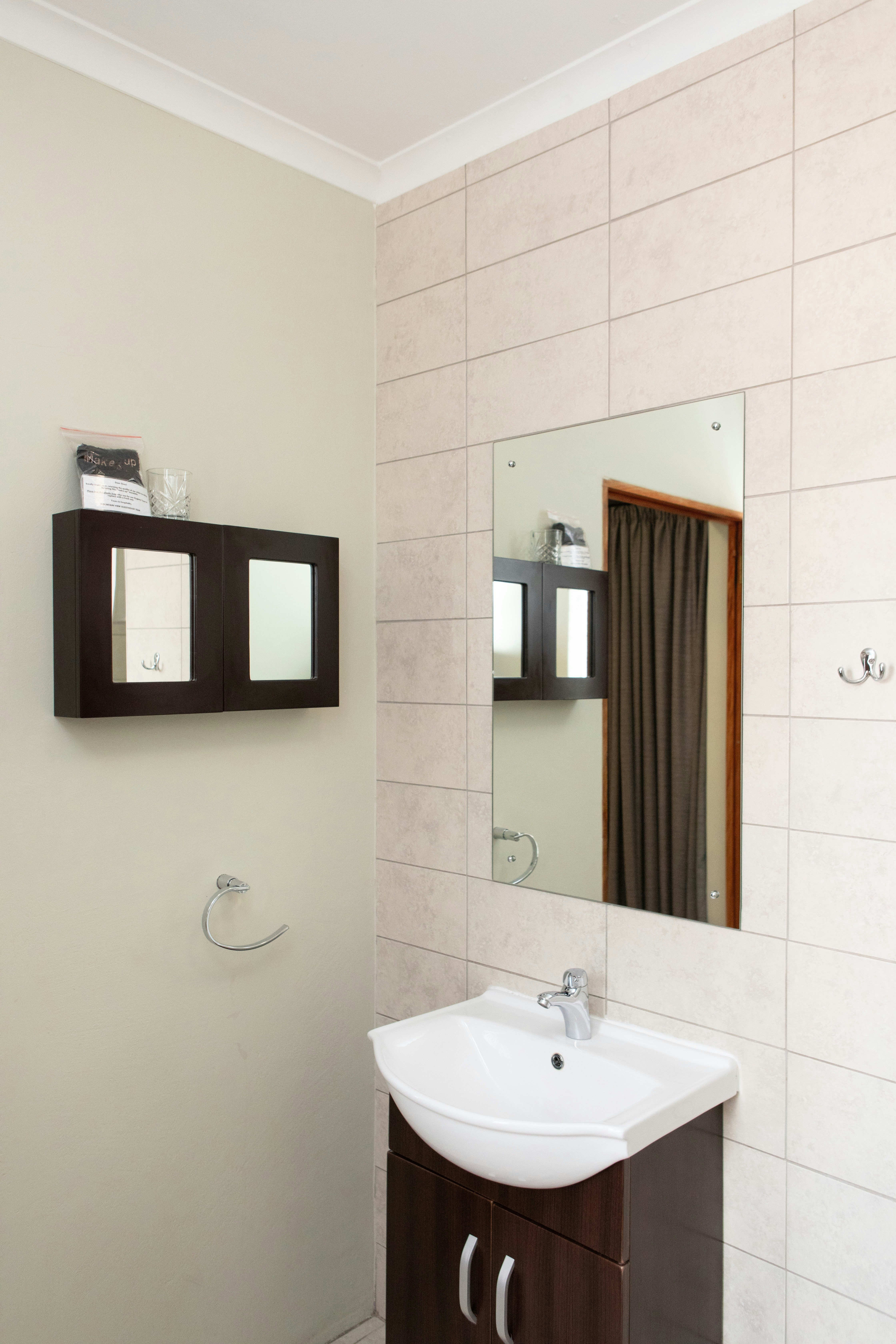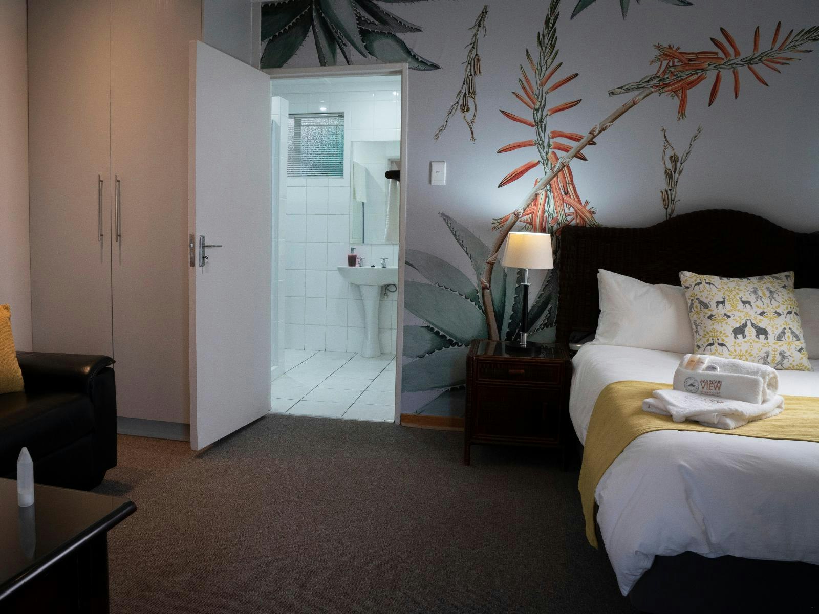 The guest house accommodates up to 26 guests in 12 guest rooms with private entrances and en-suite bathrooms. There are 5 bedrooms furnished with a double bed, 2 bedrooms furnished with a king-size bed and 6 bedrooms fitted with twin single beds which can be converted to king-size beds. The en-suite bathrooms are fitted with either a shower or a bath, basin and toilet. Other facilities include a tea- and coffee-making station, a bar fridge and a TV with selected DStv channels.