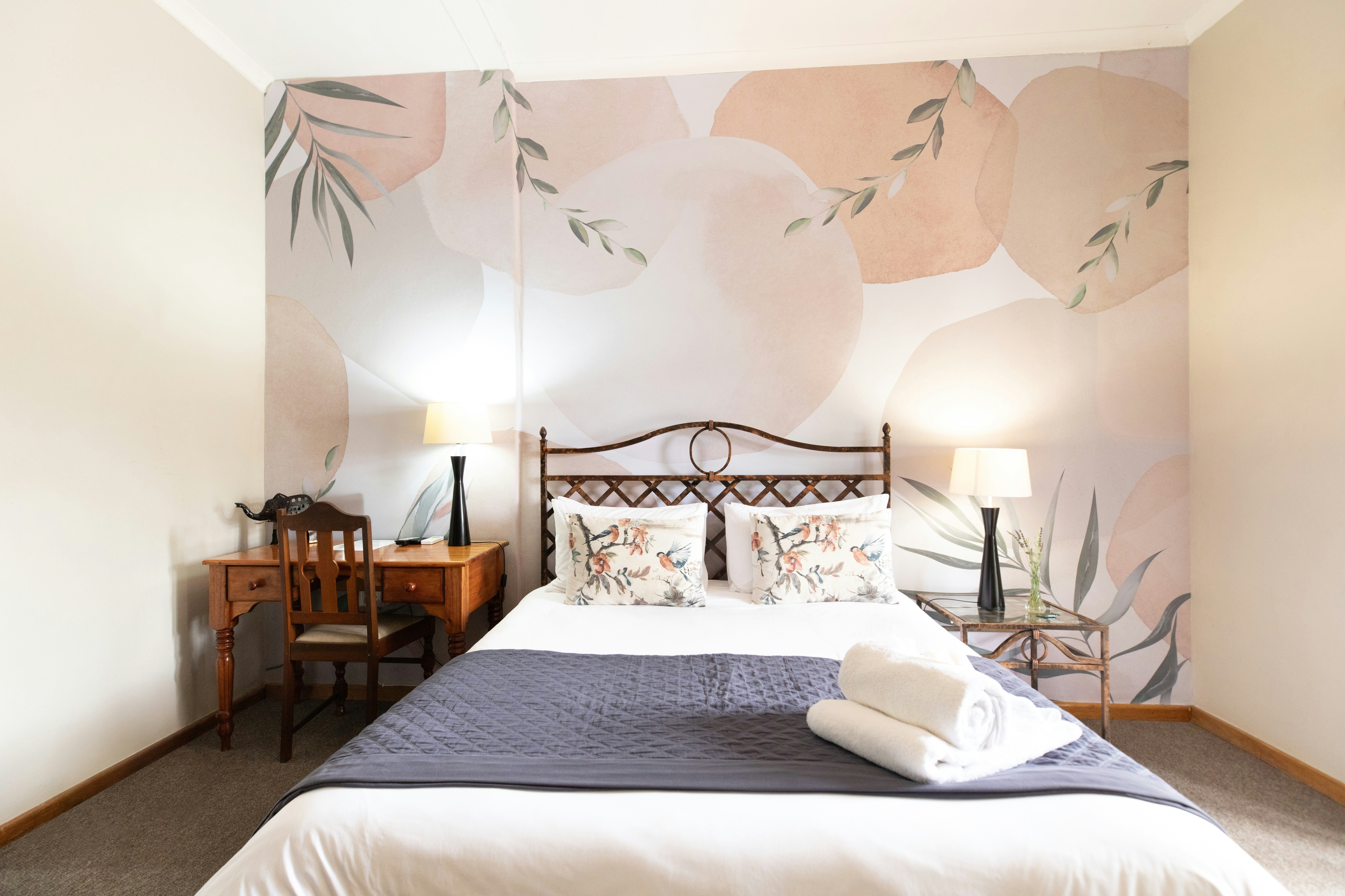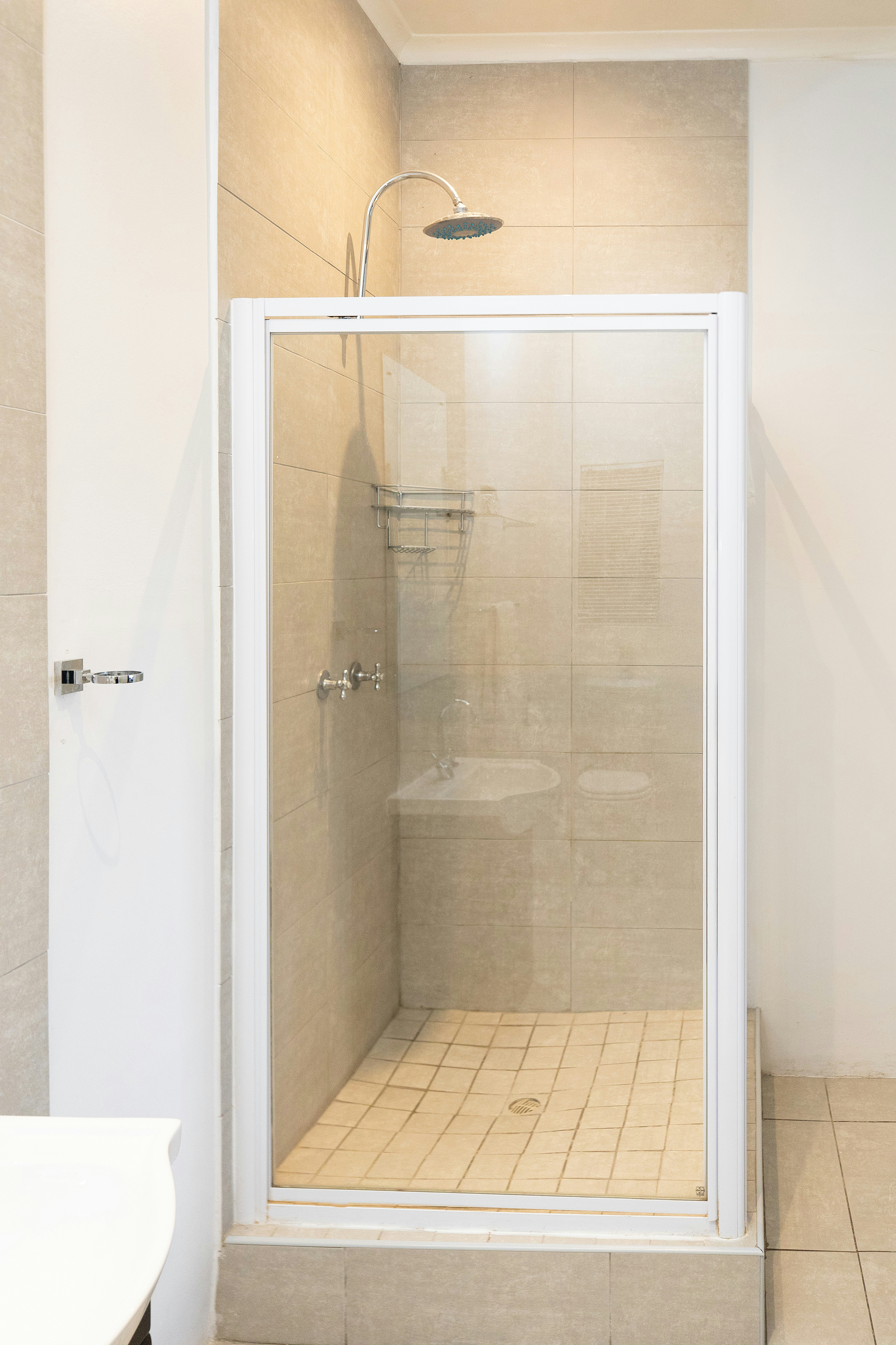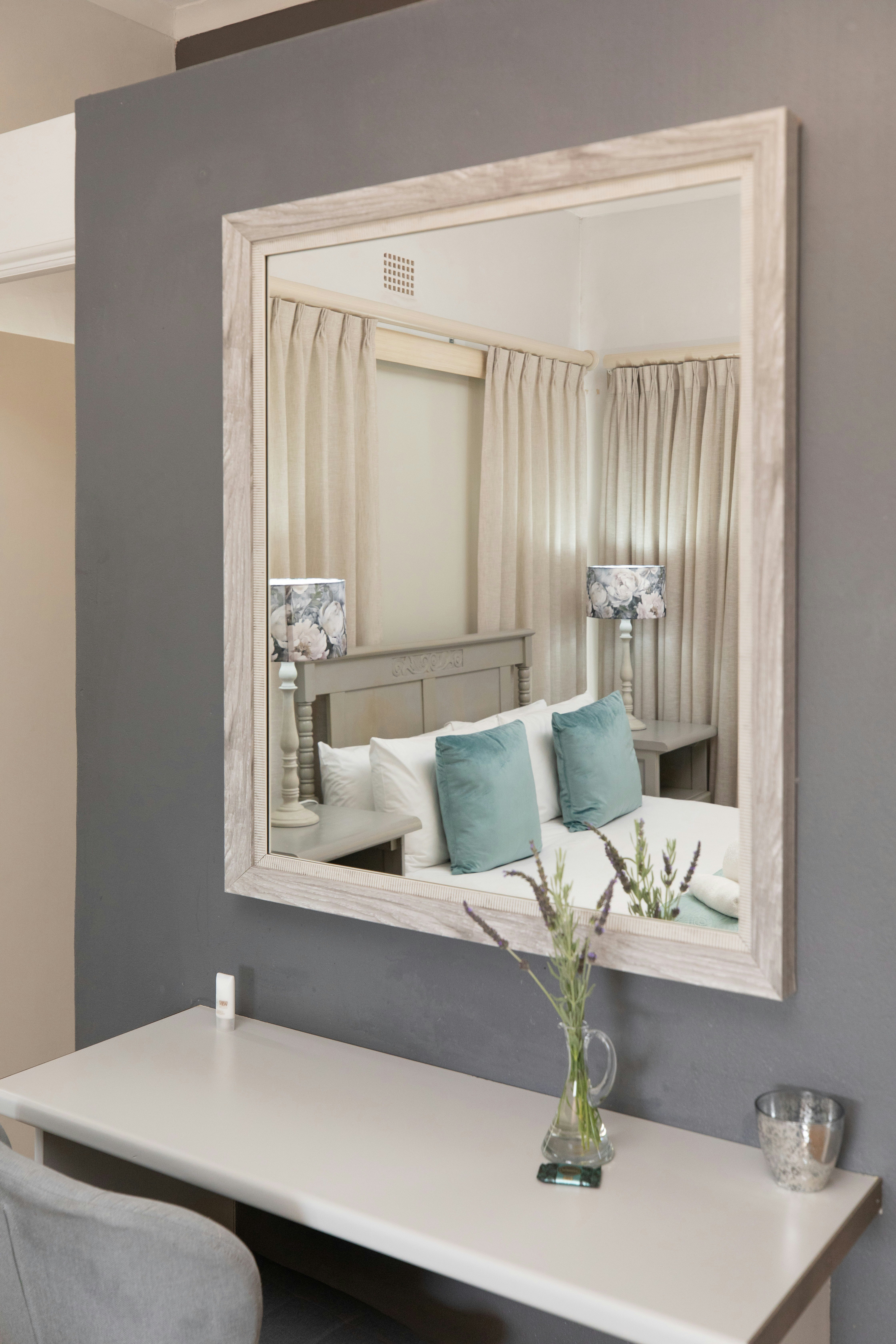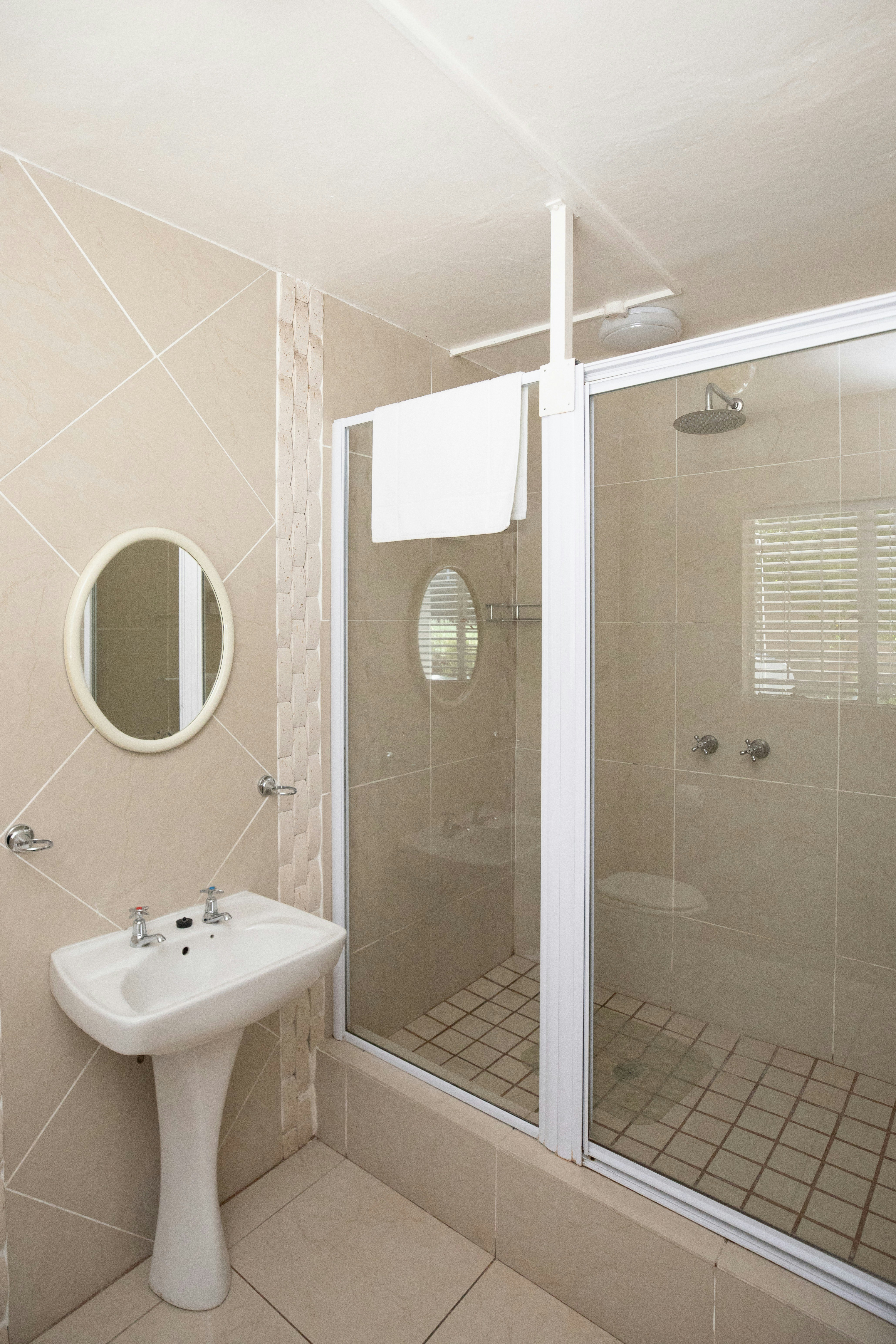 The guest house accommodates up to 26 guests in 12 guest rooms with private entrances and en-suite bathrooms. There are 5 bedrooms furnished with a double bed, 2 bedrooms furnished with a king-size bed and 6 bedrooms fitted with twin single beds which can be converted to king-size beds. The en-suite bathrooms are fitted with either a shower or a bath, basin and toilet. Other facilities include a tea- and coffee-making station, a bar fridge and a TV with selected DStv channels.