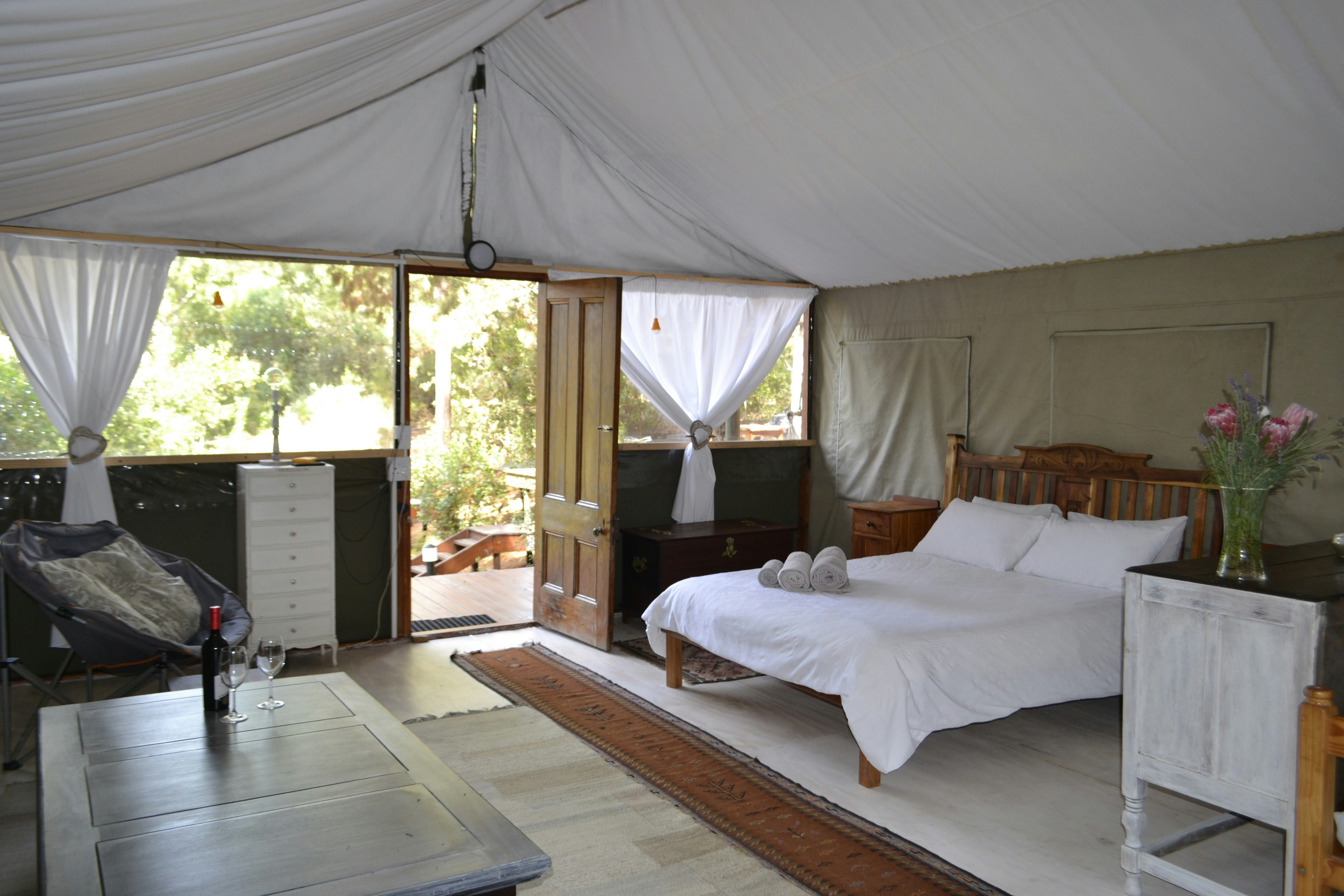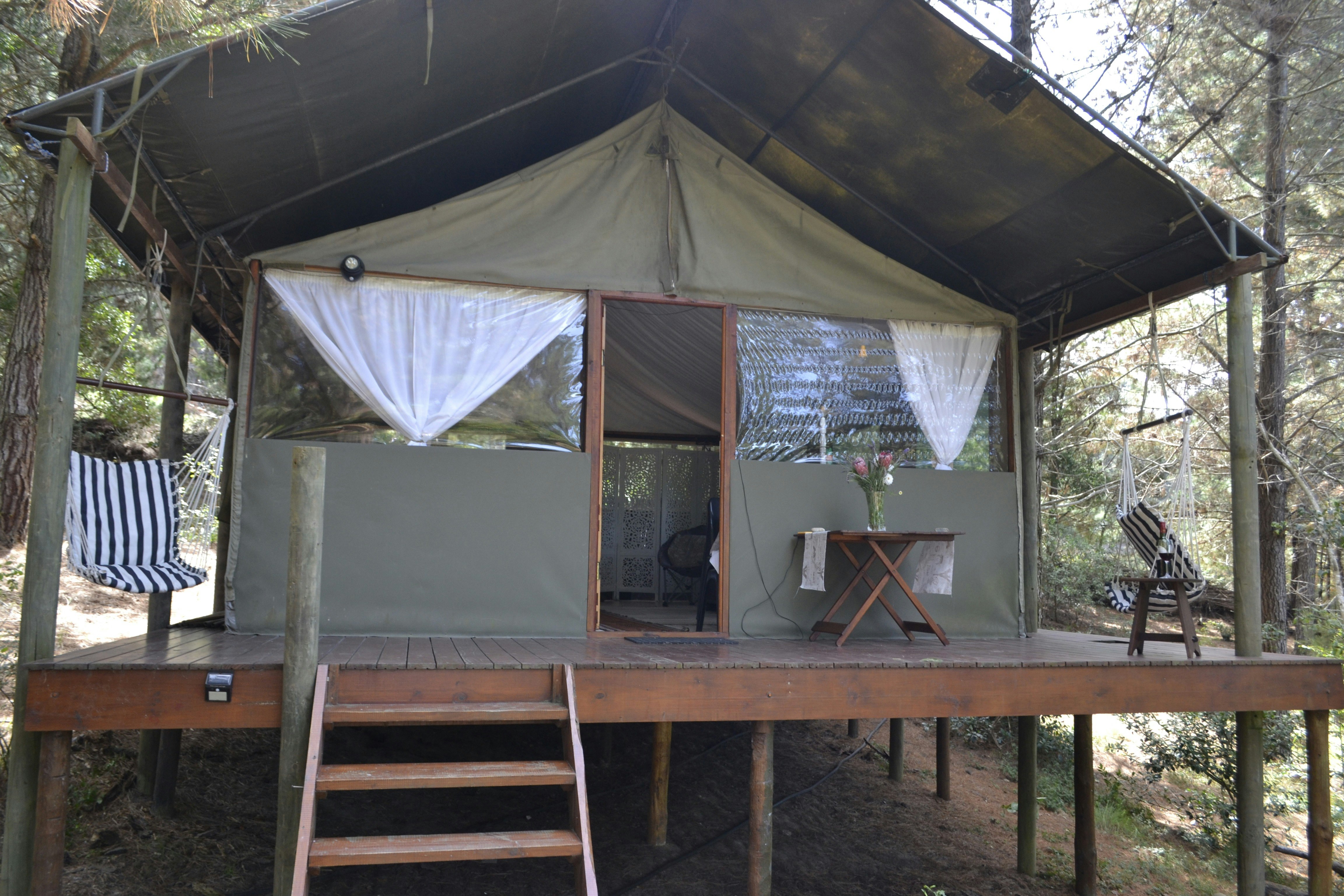 The Koi Pond Glamping is an exclusive tented camp on decks between the pine trees that offers an ideal setting for a peaceful retreat or honeymoon getaway, nestled privately among the pines with a serene view overlooking a small farm dam. It features a bar fridge, tea- and coffee-making facilities, a gas hob, a microwave, and basic kitchen utensils. Our new firepit weba facility offers a beautiful relaxing spot in the forest to braai or just relax.