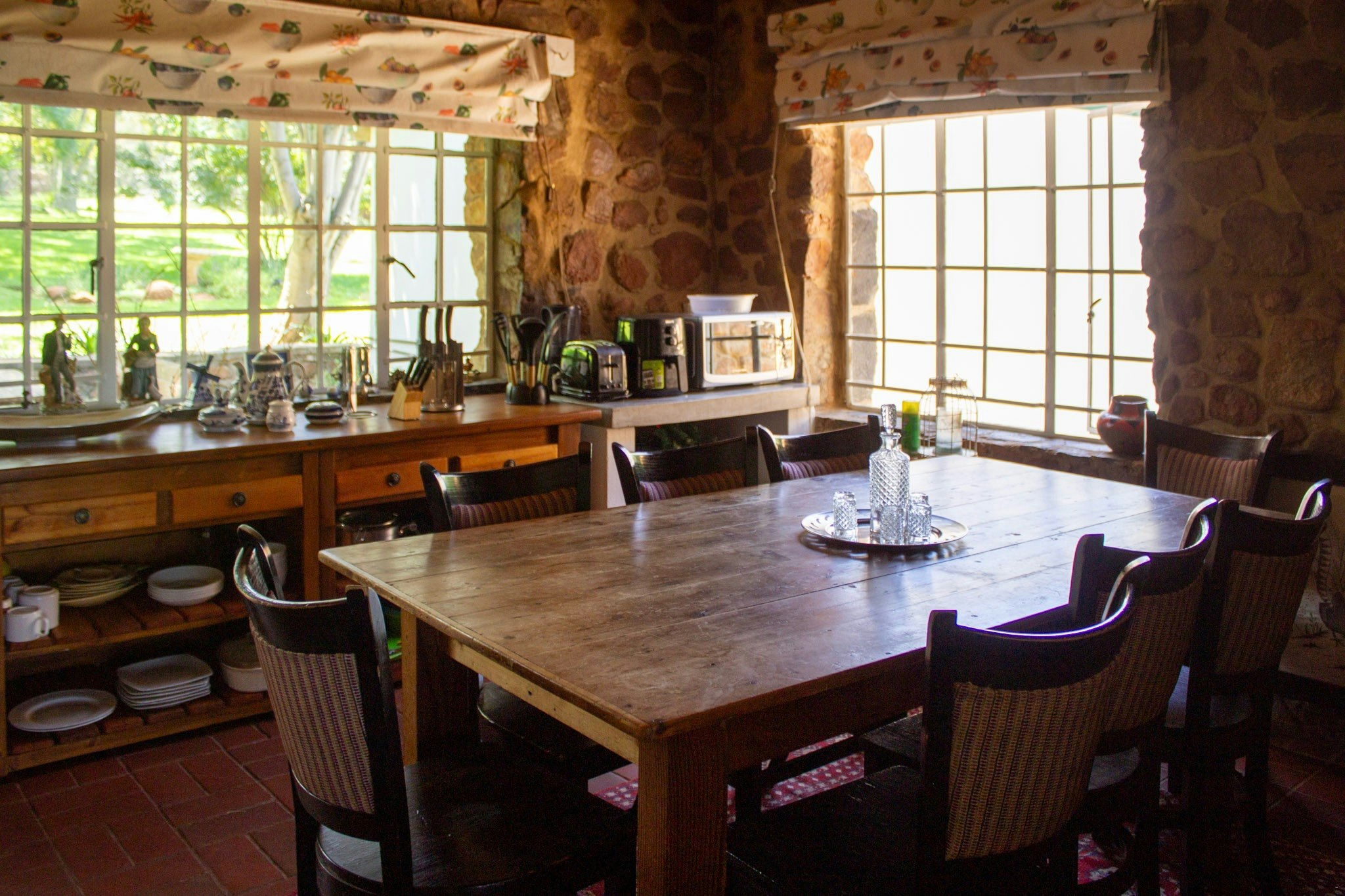 Accommodation is provided in the Sable House, Zebra Cottage, and Nyala Cottage, each furnished with comfortable beds and offering a bathroom fitted with either a shower or a bath.