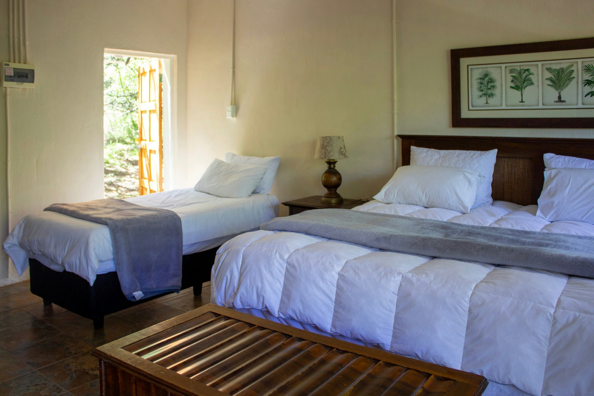 Accommodation is provided in the Sable House, Zebra Cottage, and Nyala Cottage, each furnished with comfortable beds and offering a bathroom fitted with either a shower or a bath.