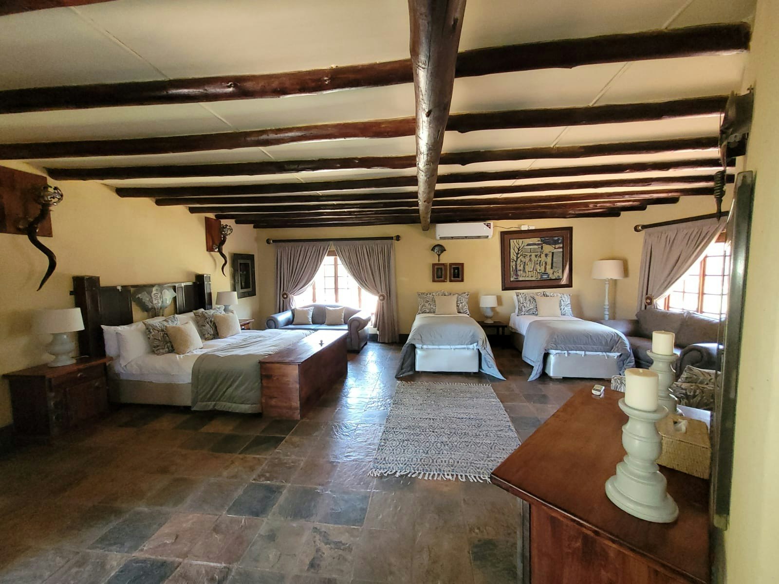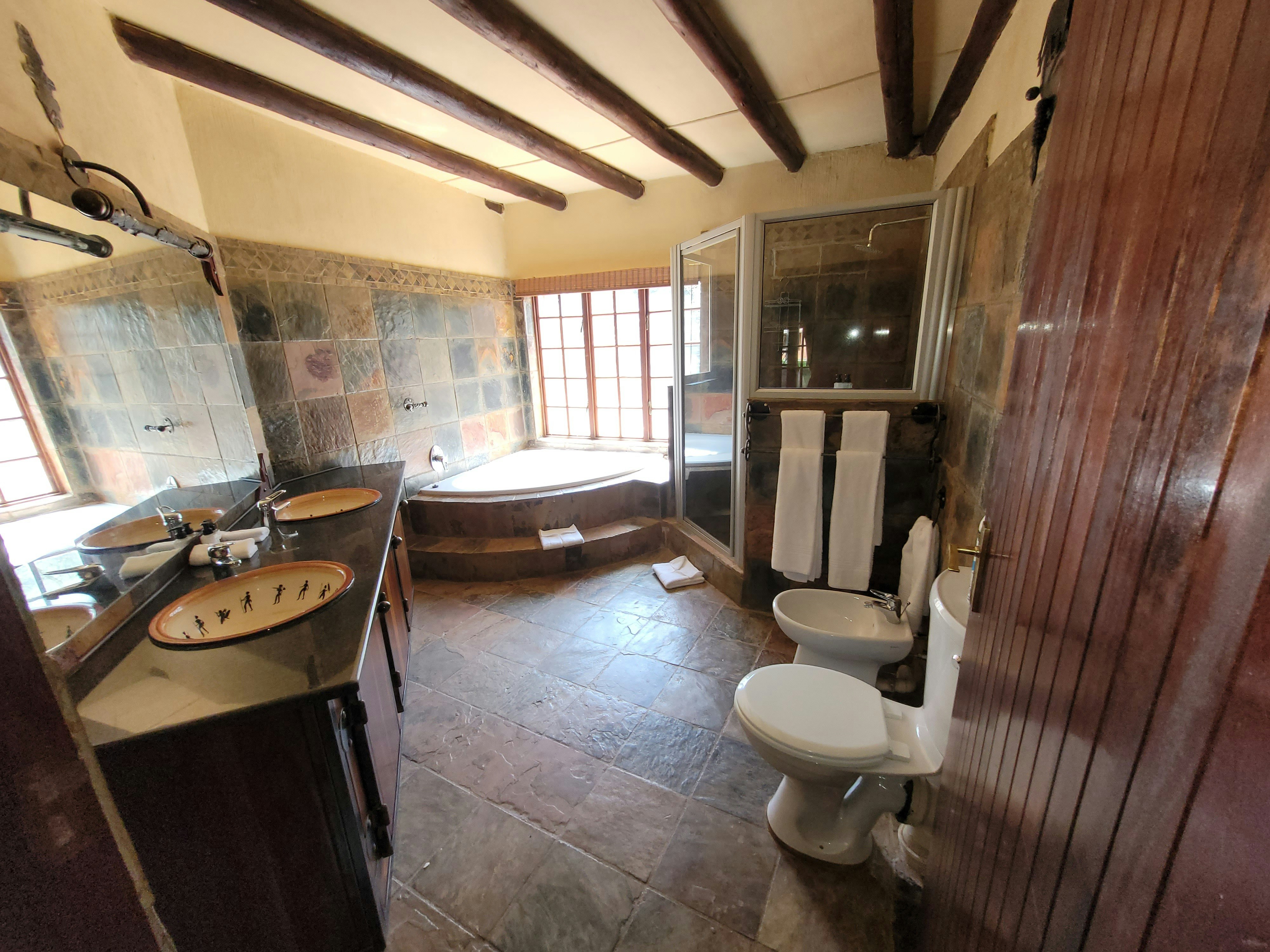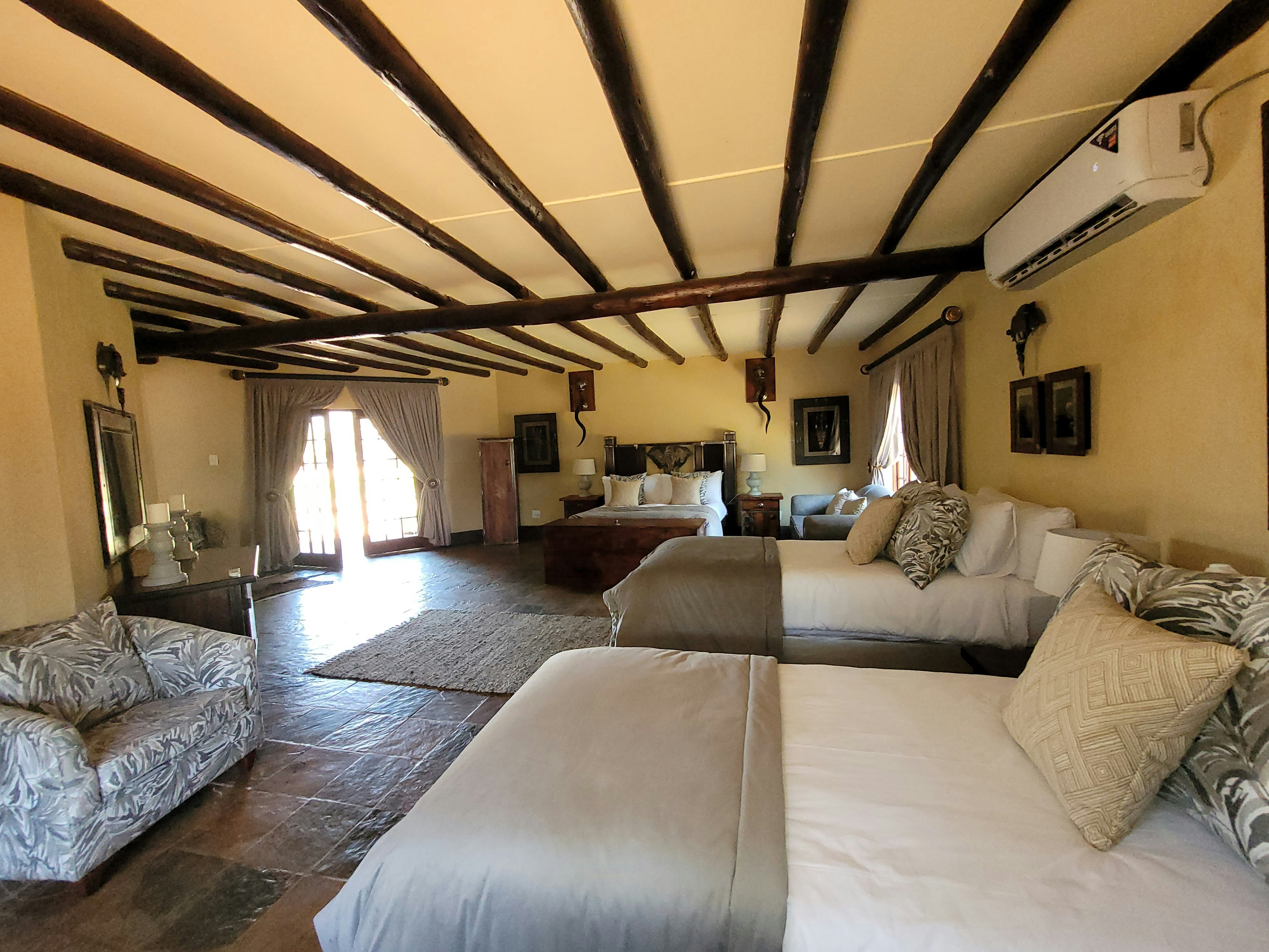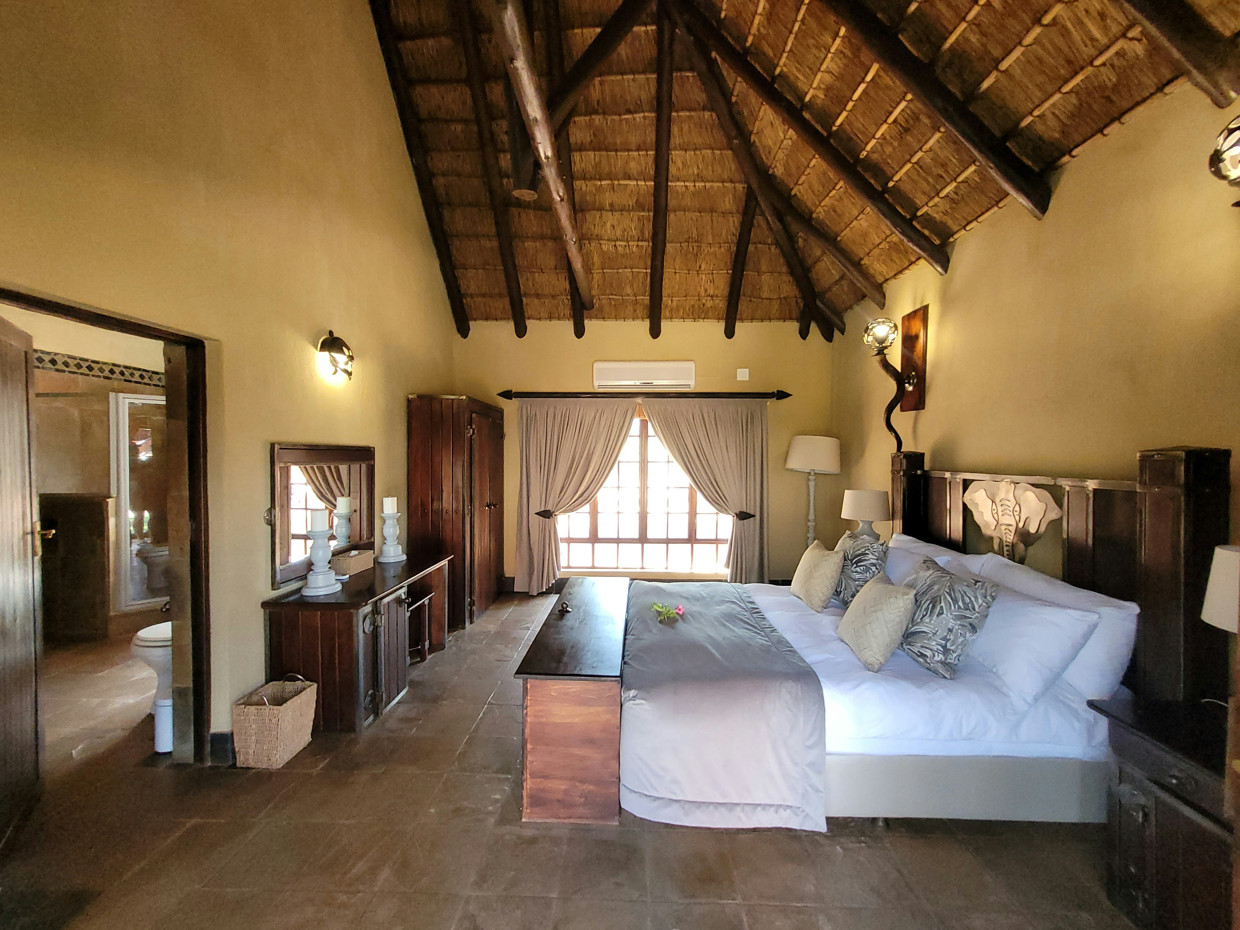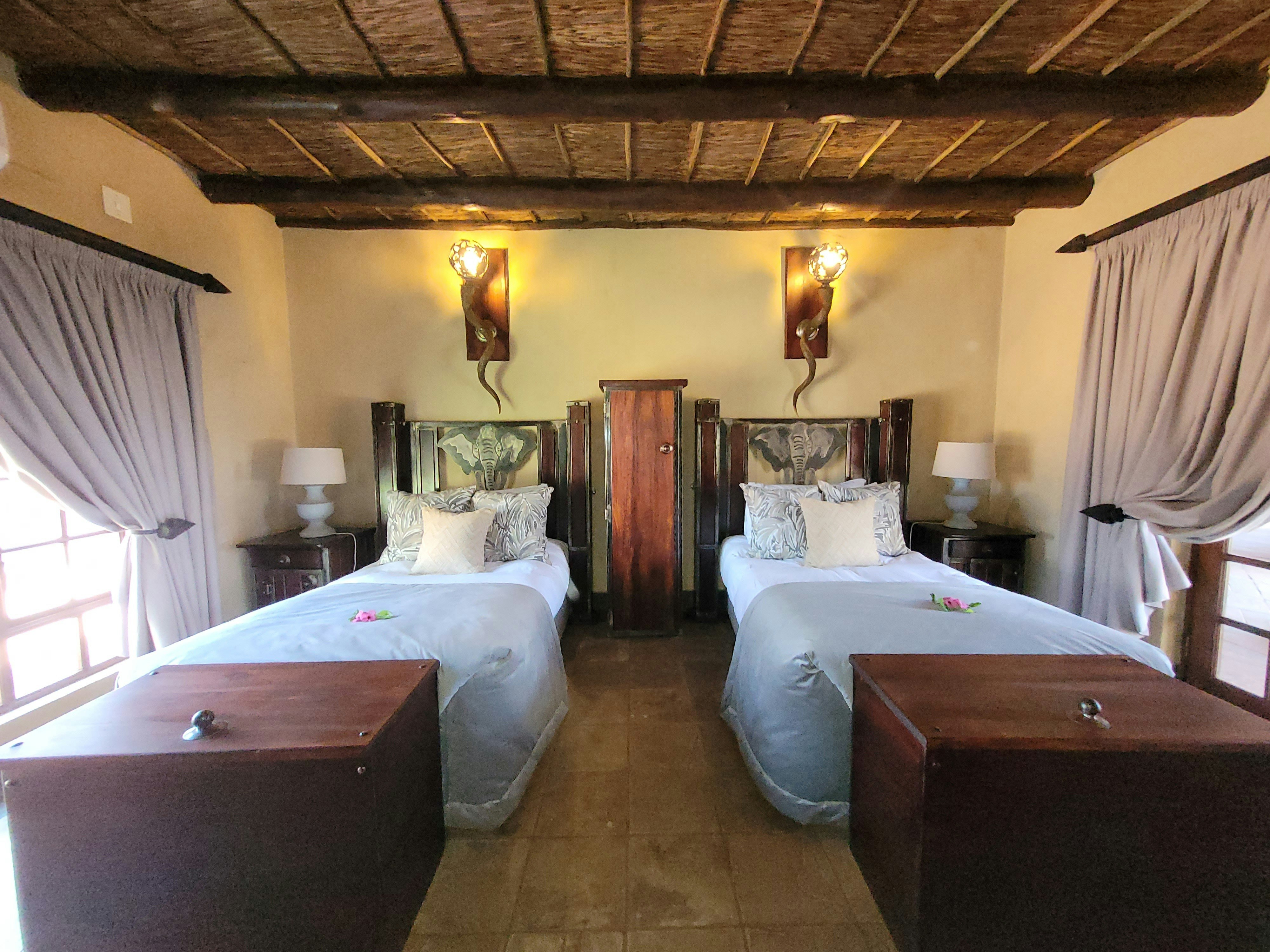 Accommodation is offered in various rooms with varying sleeping capacities. The rooms are spacious and well-appointed, offering stunning views of the surrounding bushveld, ensuring a memorable and enjoyable stay for all. Each room is designed with comfortable beds and has en-suite bathrooms fitted with baths, showers, basins, and toilets. Crisp linen and towels are provided.