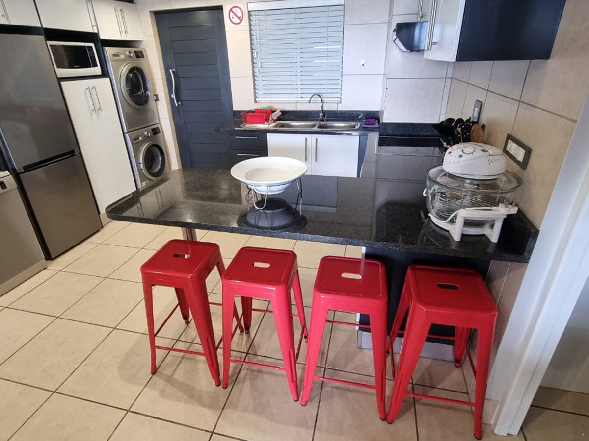 Die oopplan-kombuis is met 'n yskas-vrieskas, stoof, oond, mikrogolf, koffie- en teemaakgeriewe, 'n skottelgoedwasser, wasmasjien en tuimeldroër toegerus. Gaste kan maaltye geniet in die sitarea of net ontspan voor die slim-TV met sekere DStv-kanale. Die sitarea lei na 'n onderdakbalkon met 'n etenstafel en braaigeriewe. Veilige parkeerplek is beskikbaar en daar is ook 'n gemeenskaplike swembad.