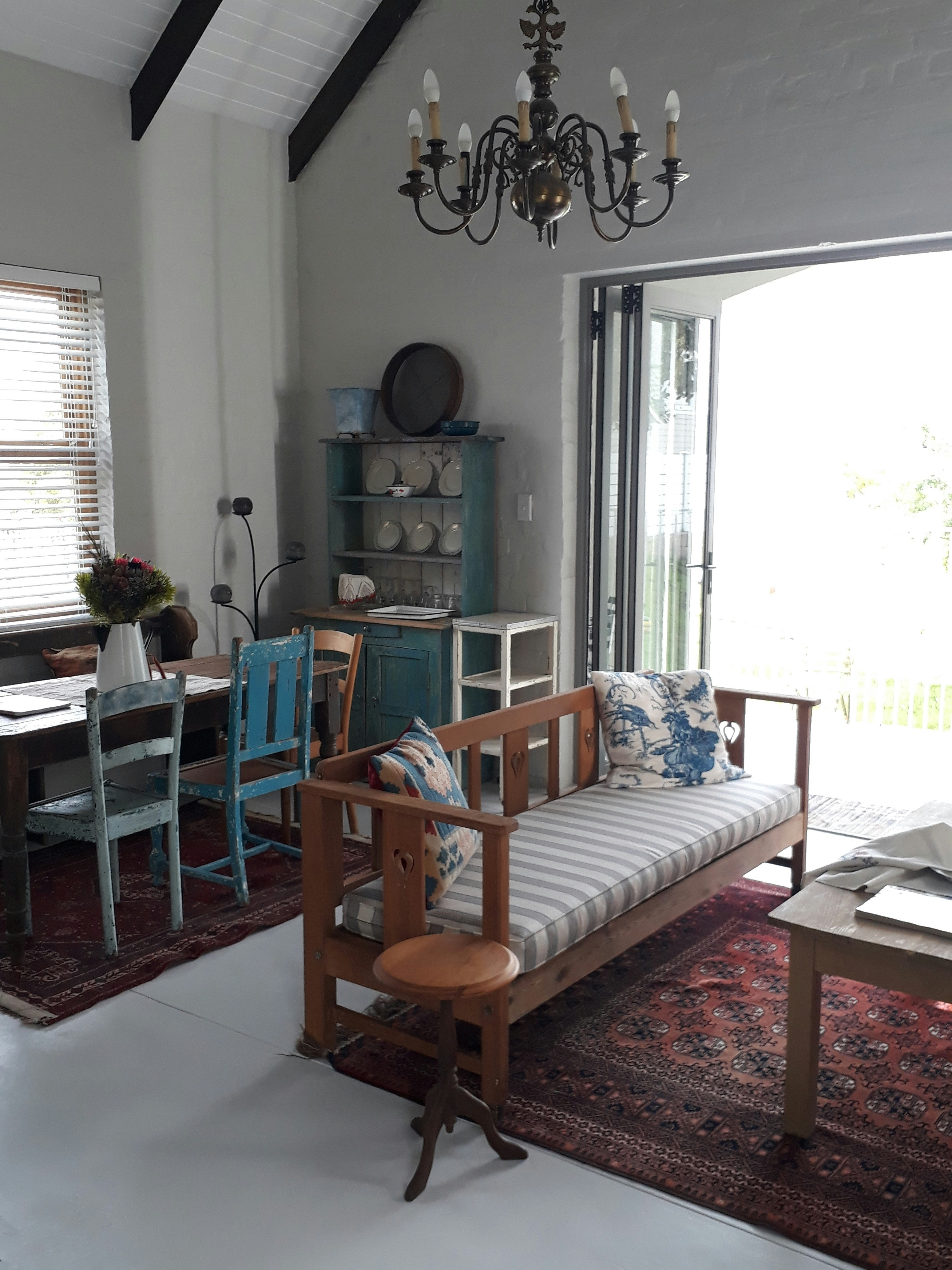 Die kombuis is volledig toegerus met 'n gasstoof, mikrogolfoond, elektriese oond en yskas. 'n Skottelgoedwasser is beskikbaar vir groter gesinne. Die sitkamer het 'n kaggel en 'n gemaklike sitkamerstel. Die eetkamer het 'n eetkamertafel met sitplek vir 6. Die kothuis het 'n TV met DStv, WiFi en 'n patio met 'n braai-area. Daar is 'n openbare speelplek vir kinders langs die huis wat maklik vanaf die perseel bereikbaar is.