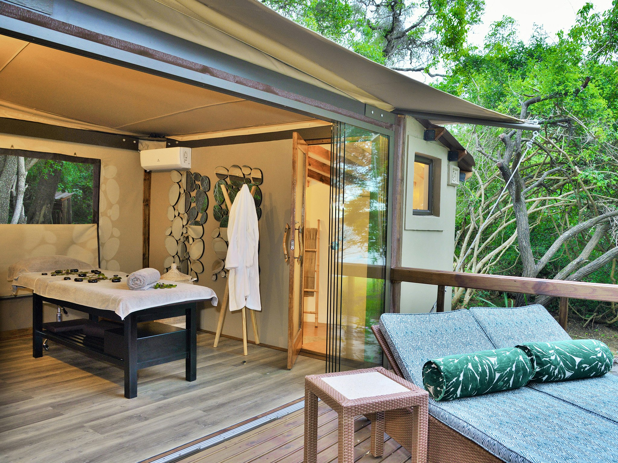 Ontbyt en aandete is ingesluit in die tariewe, aangesien die chalets nie selfsorg is nie. Die lodge se oopplan-restaurant bied sitplek vir tot 30 gaste en bedien uitstekende kookkuns met persoonlike diens. Gaste kan ontspan in die sitkamer, wat wildboeke en bordspeletjies bied, of op die hout-uitkykdek met asemrowende uitsigte oor die meer en die omliggende bosveld.