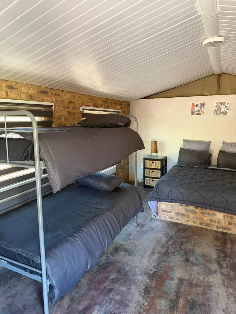Communal Self-Catering Chalet 3 accommodates 4 guests. The bedroom is furnished with a king-size bed and a bunk bed. The en-suite bathroom is fitted with a shower and a toilet. The unit is suitable for families or small groups seeking simple self-catering accommodation.