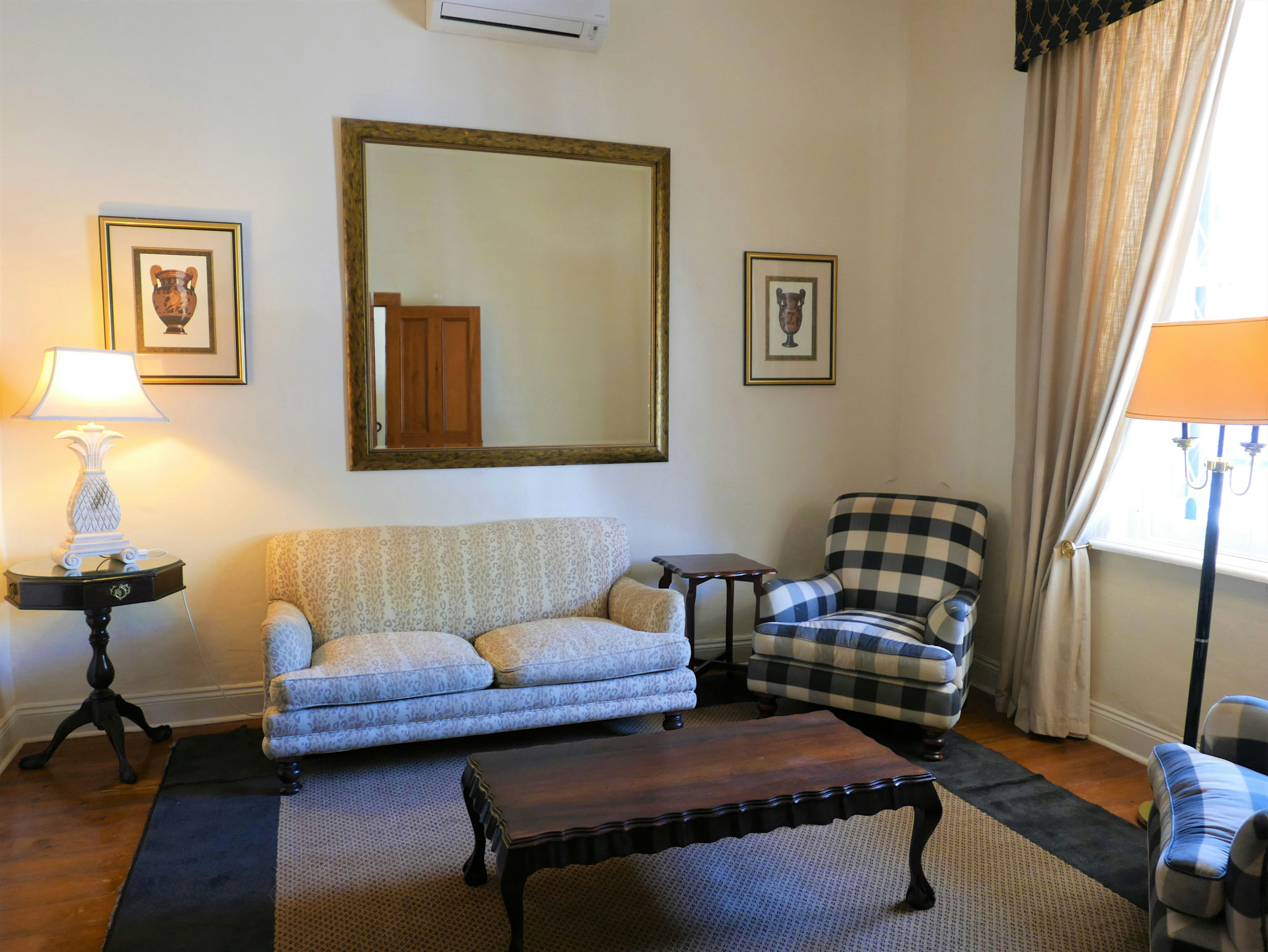 Daar is dubbeldeure wat lei na die leefarea met ’n aparte eetkamer. Die sitkamer het gemaklike sitplekke en ’n TV met DStv. Gaste het ook toegang tot gratis WiFi.