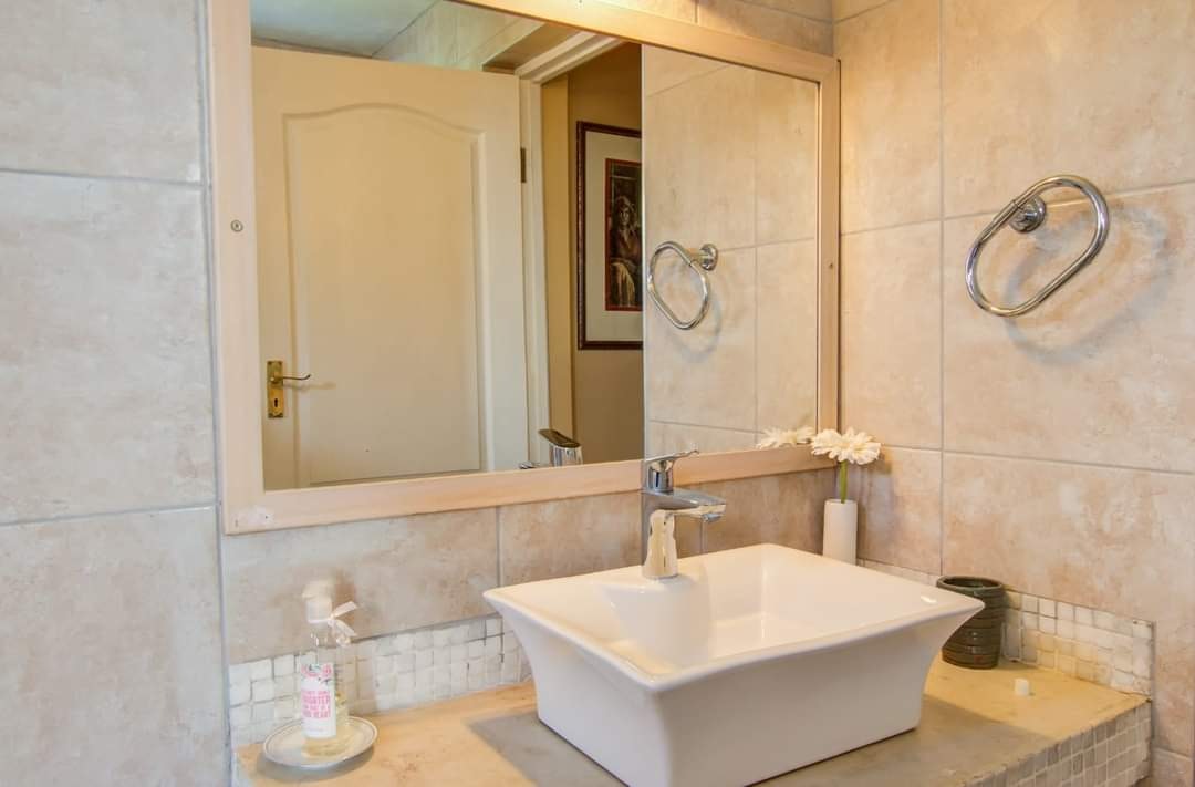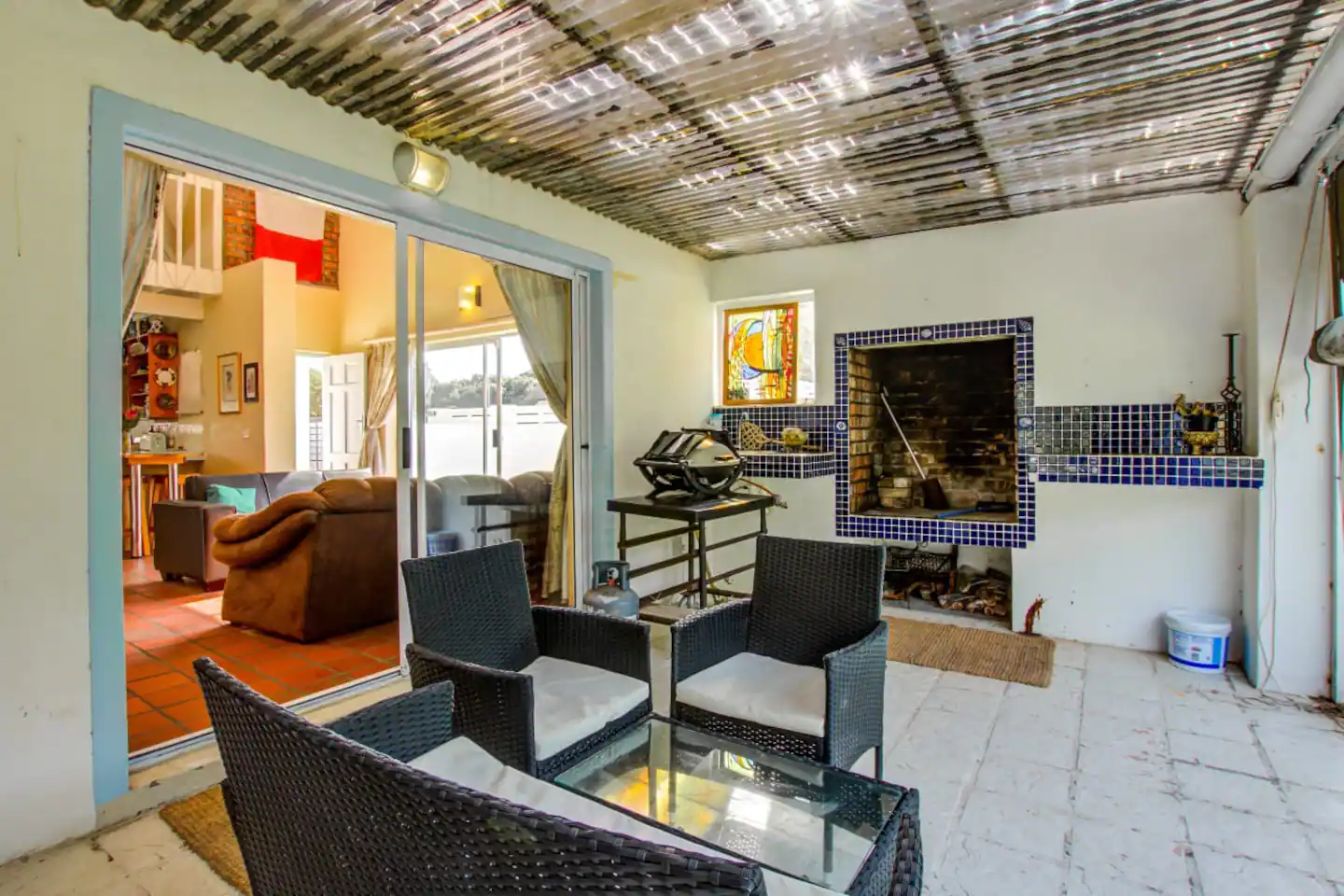 Sliding doors open to a covered entertainment area with outdoor dining furniture, a pool table, seating, a built-in braai and a gas braai. In addition, the house has a swimming pool for those hot summer days. Secure parking is available.