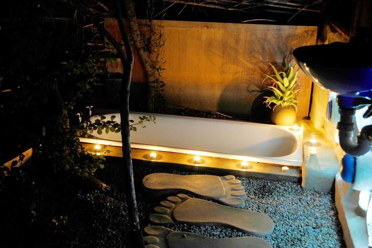 Badkamergeriewe by die kamp sluit 'n buitestort, buitebad en 'n gasgeiser vir warm in. 'n Kort entjie se stap vanaf die kamp is nog 'n ablusieblok met 'n tweede privaat badkamer met 'n toilet en 'n stort.