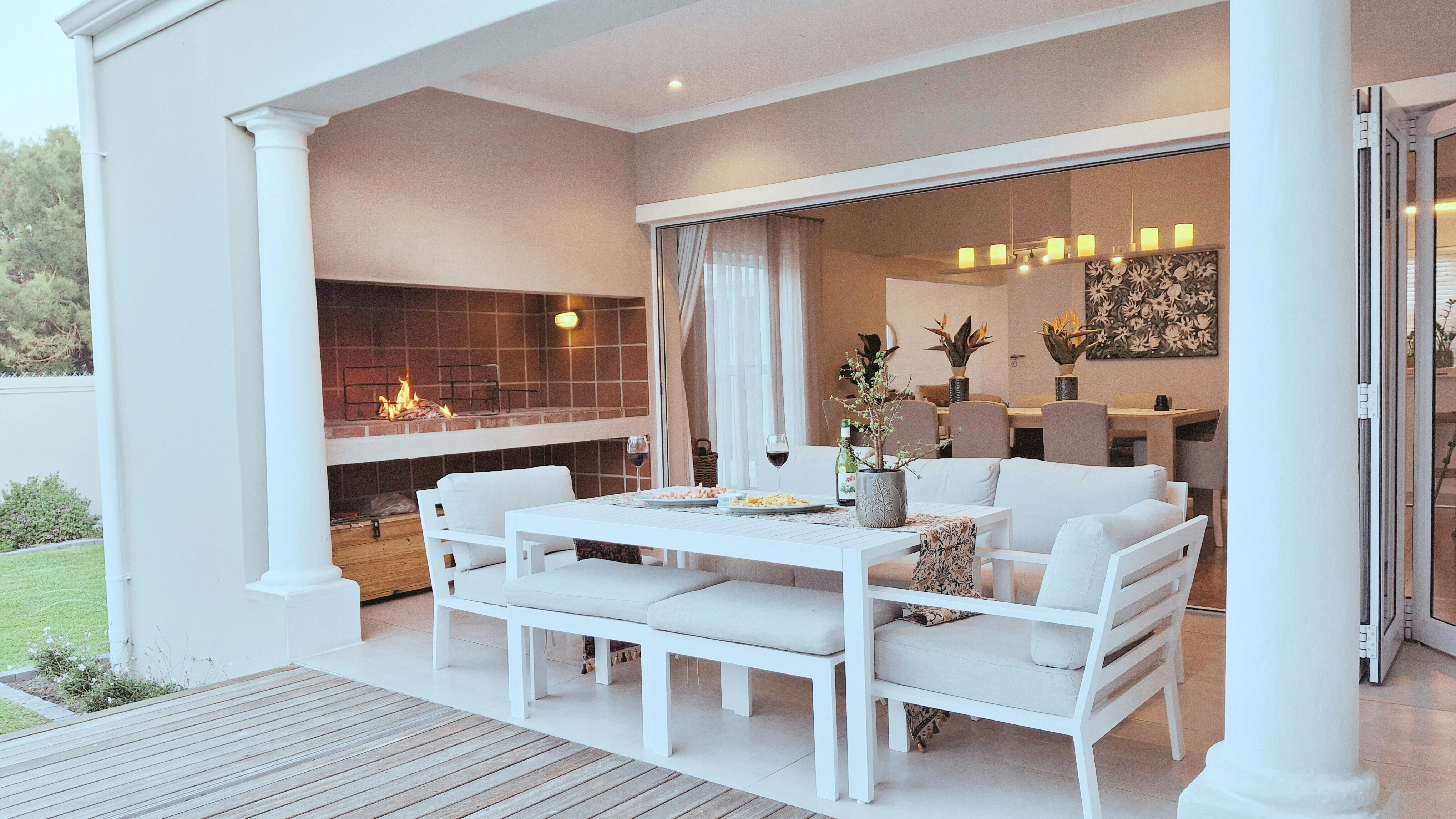 Die huis bied gaste die keuse tussen 3 pragtig ingerigte slaapkamers, elk met 'n en suite-badkamer. Die oopplan-kombuis, eetkamer en sitkamer verbind naatloos met die stoep deur stapeldeure. Geniet kook in die kombuis wat toegerus is met 'n yskas, stoof, oond en mikrogolfoond, met 'n aparte opwasarea, of ontspan in die sitkamer by die geslote kaggel met 'n goeie boek.